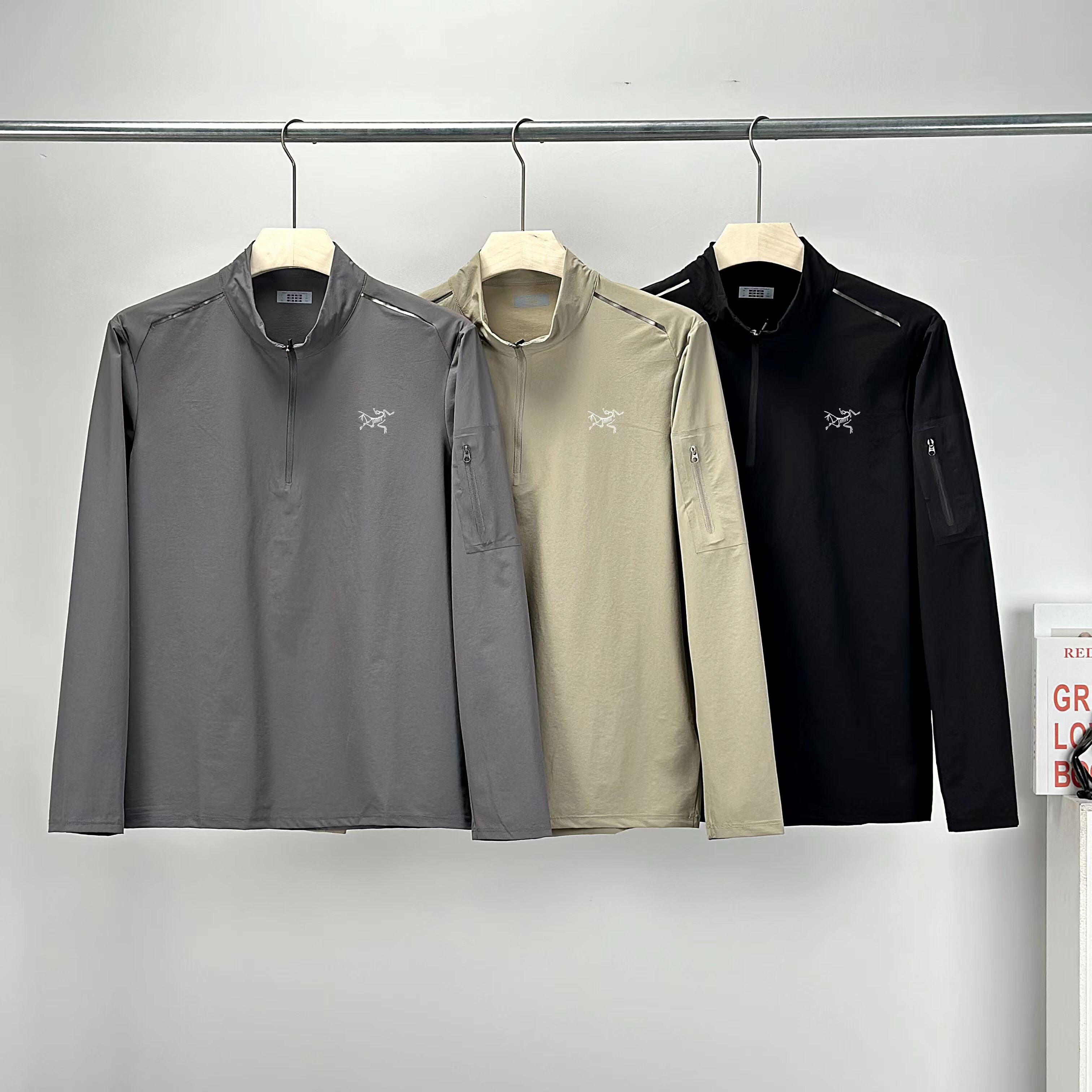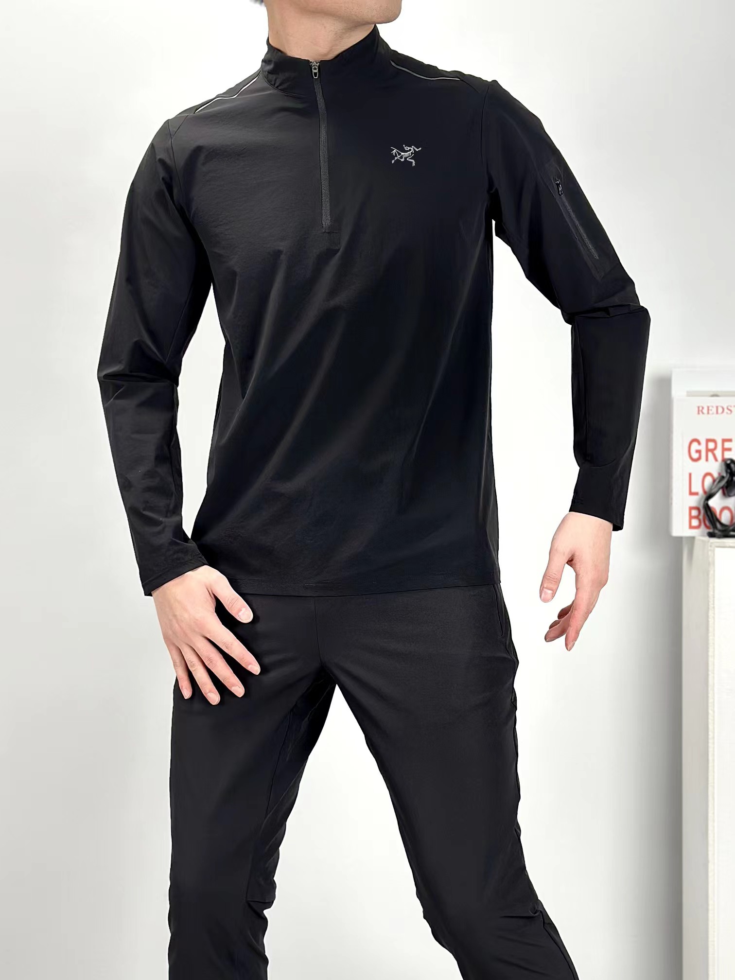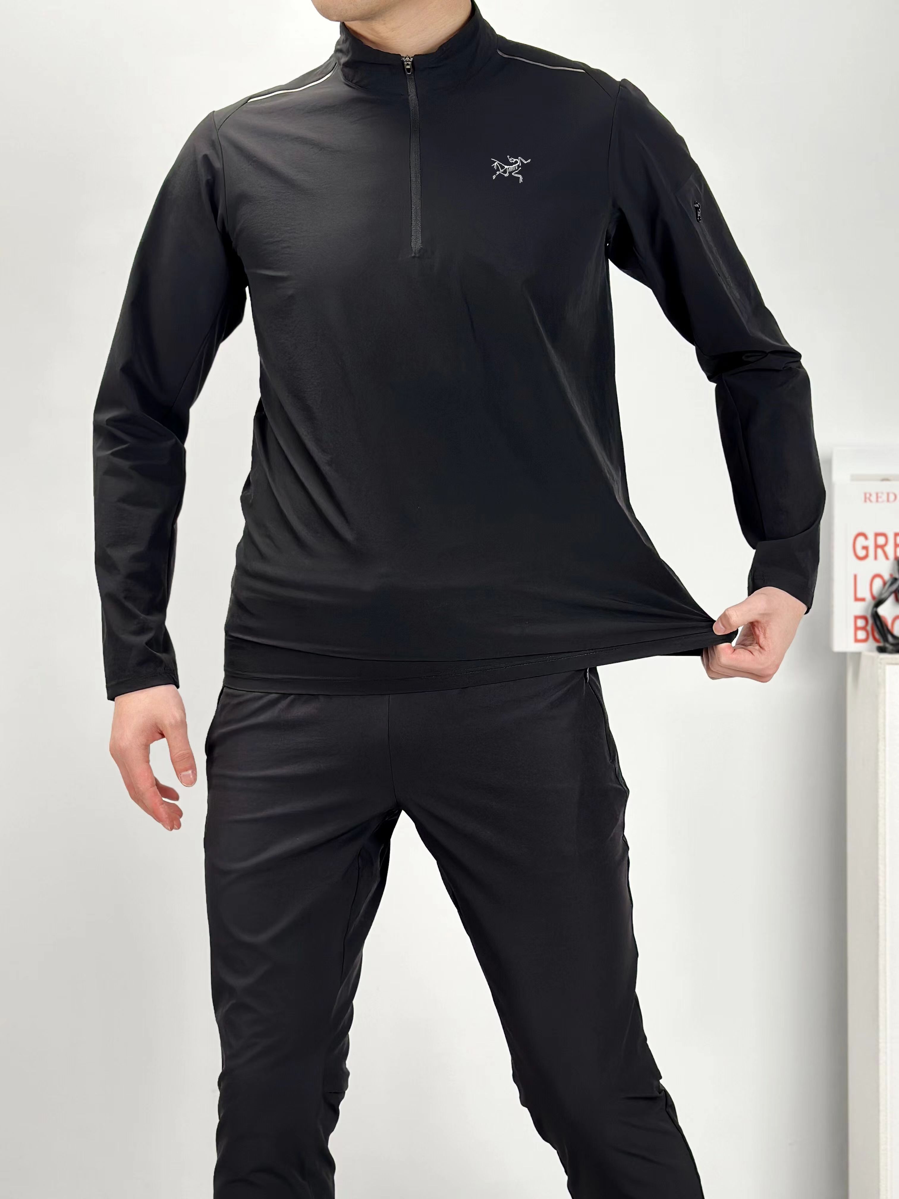 新款半拉链四面高弹高品质 多层次叠穿 健身运动高弹力单型上衣!春季轻盈款半拉链打底衫!面料高品质内搭!健身运动 排汗速干 适合出行旅游度假 ji致收纳的一款上衣!左臂贴袋 可做卡片收纳!半拉链方便穿脱!