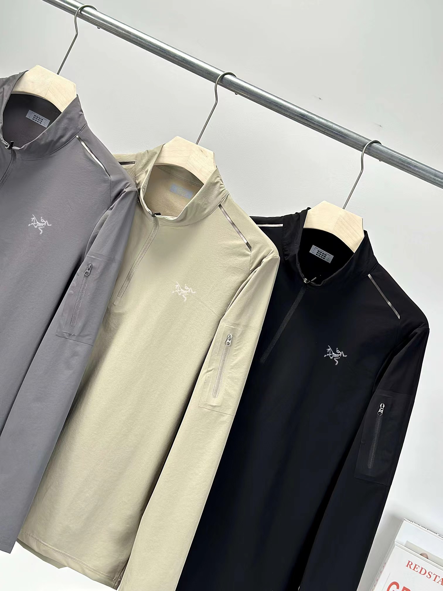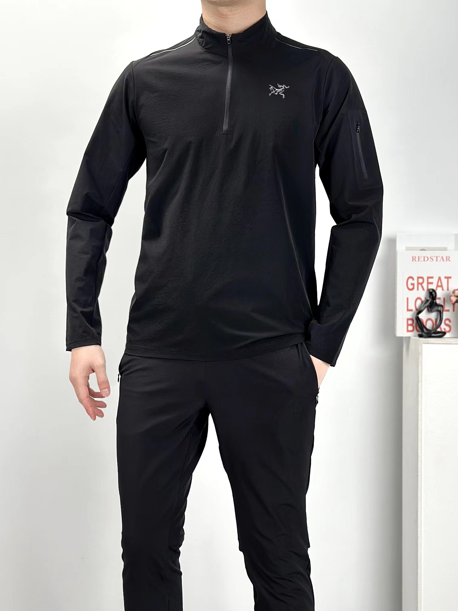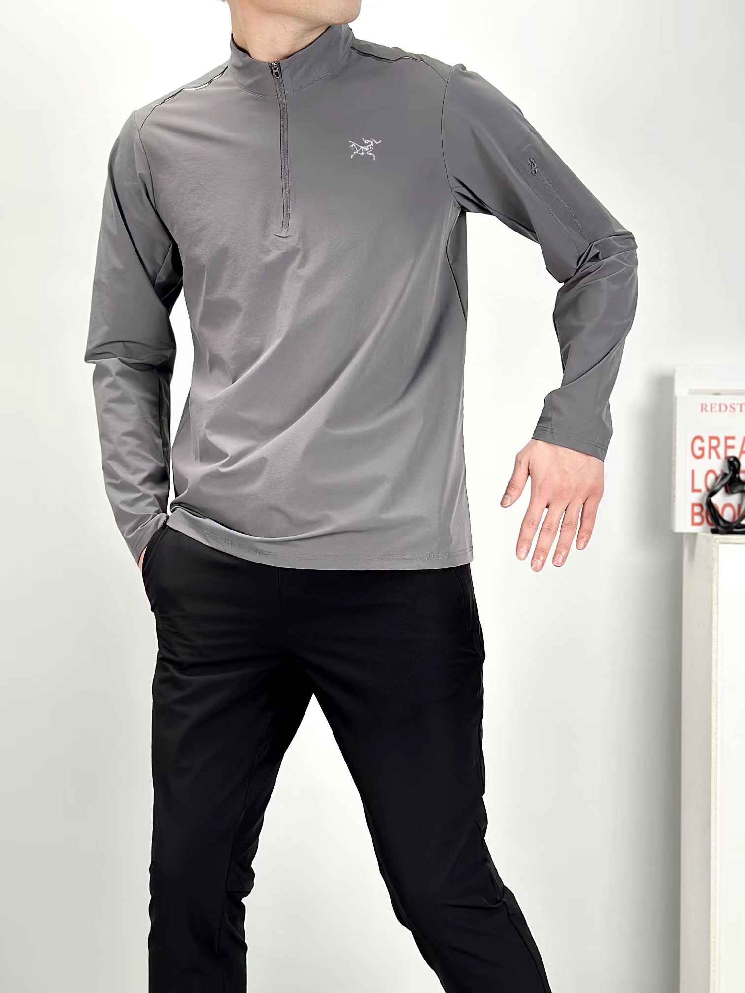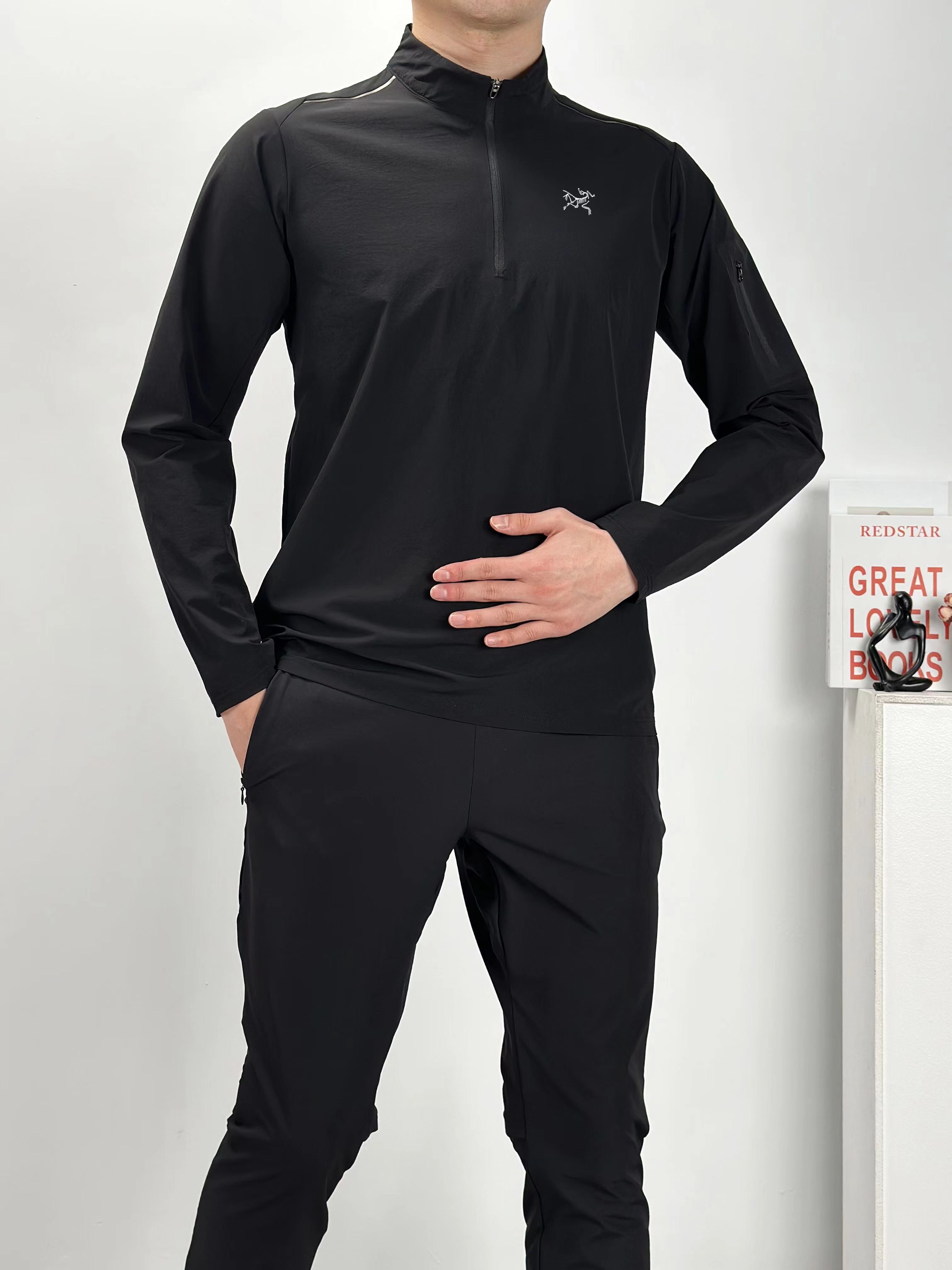 新款半拉链四面高弹高品质 多层次叠穿 健身运动高弹力单型上衣!春季轻盈款半拉链打底衫!面料高品质内搭!健身运动 排汗速干 适合出行旅游度假 ji致收纳的一款上衣!左臂贴袋 可做卡片收纳!半拉链方便穿脱!