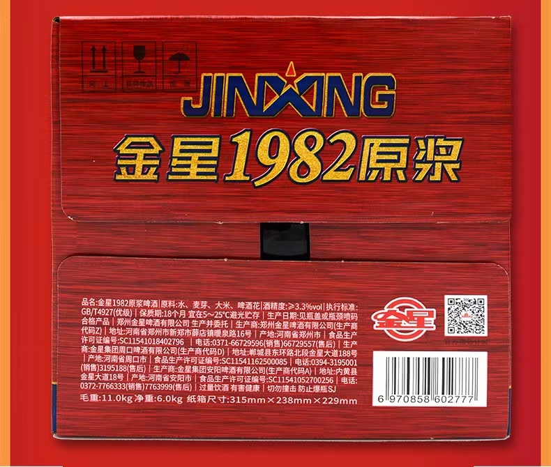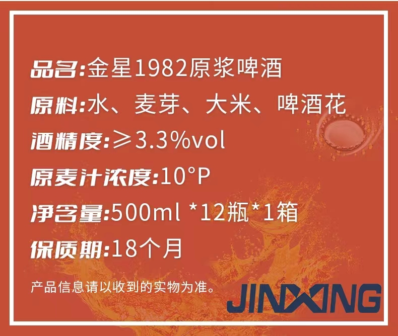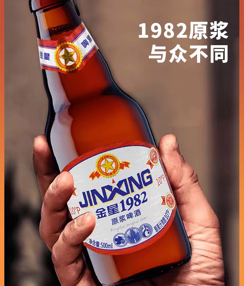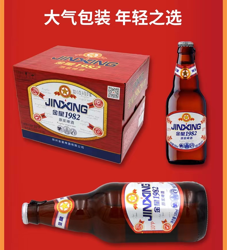 【12整箱跑量】金星原浆啤酒红10度 1982啤酒 500ml 黄啤