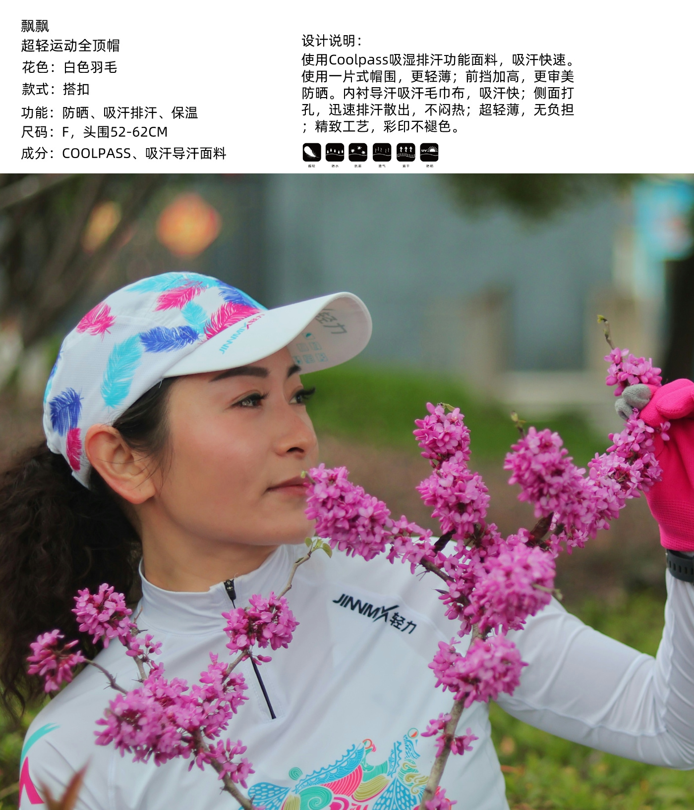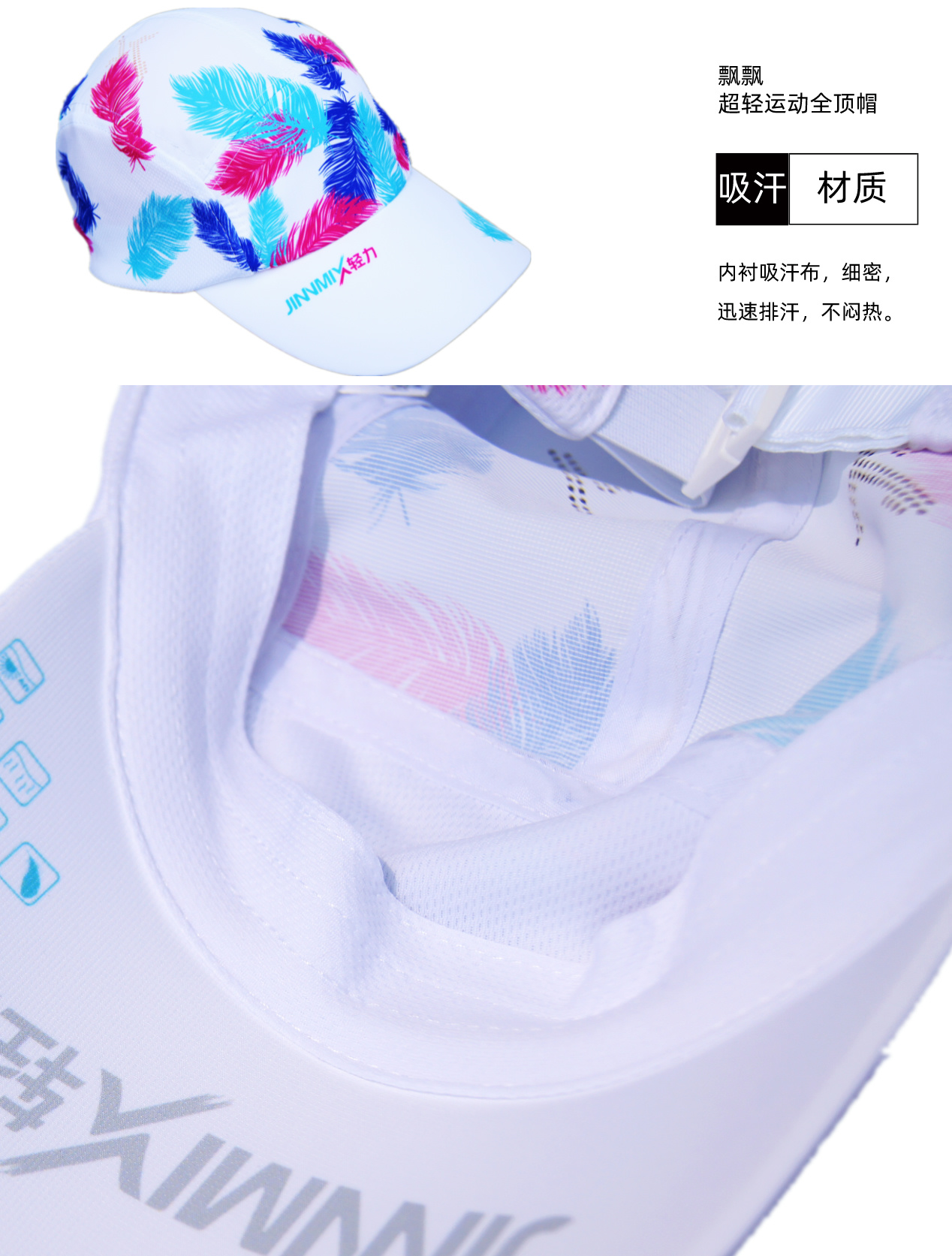 飘飘白超轻防晒透气吸汗排汗运动马拉松越野跑步全顶帽