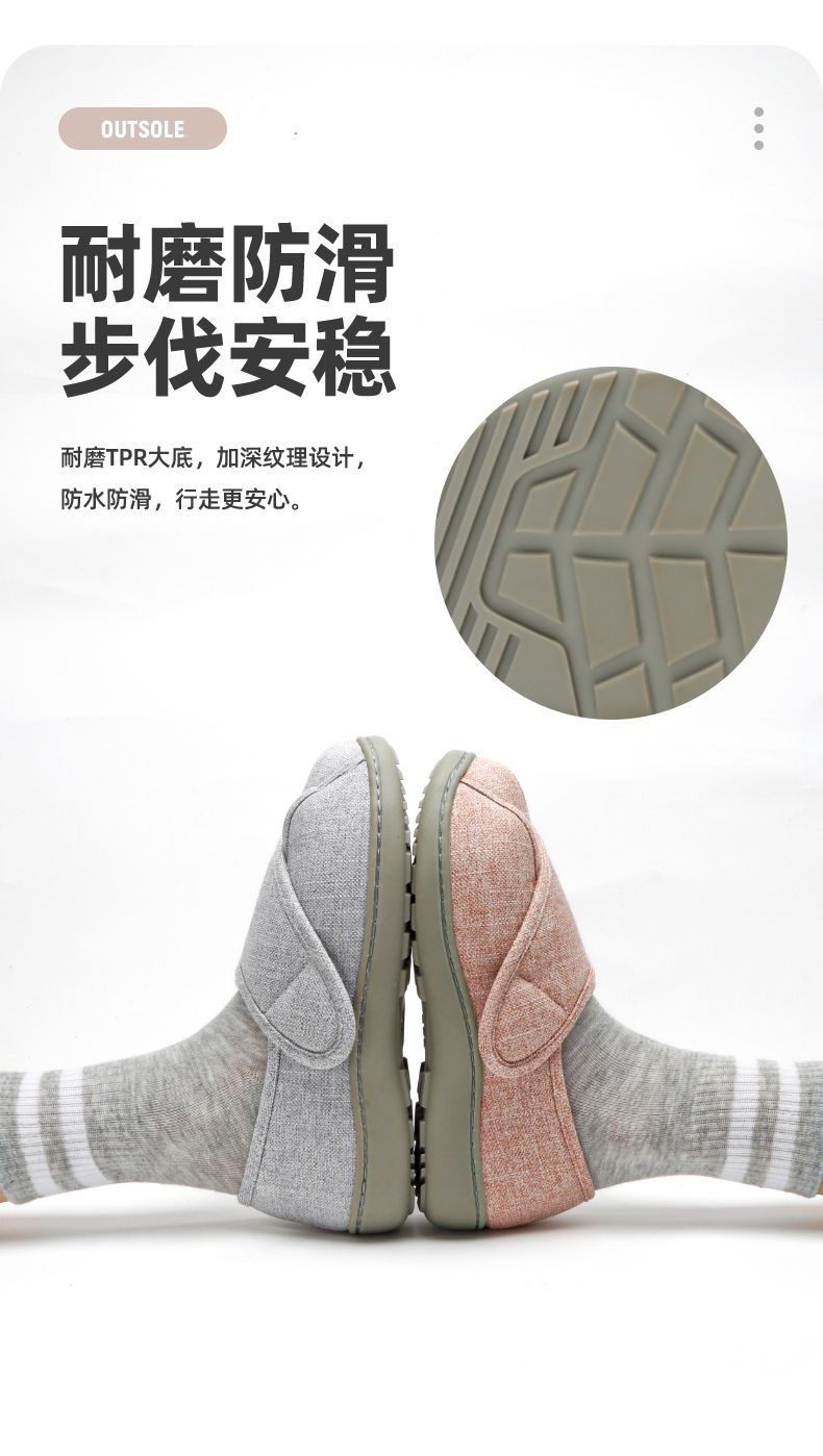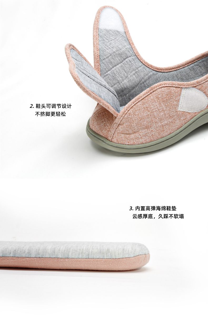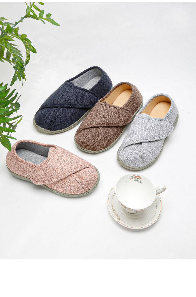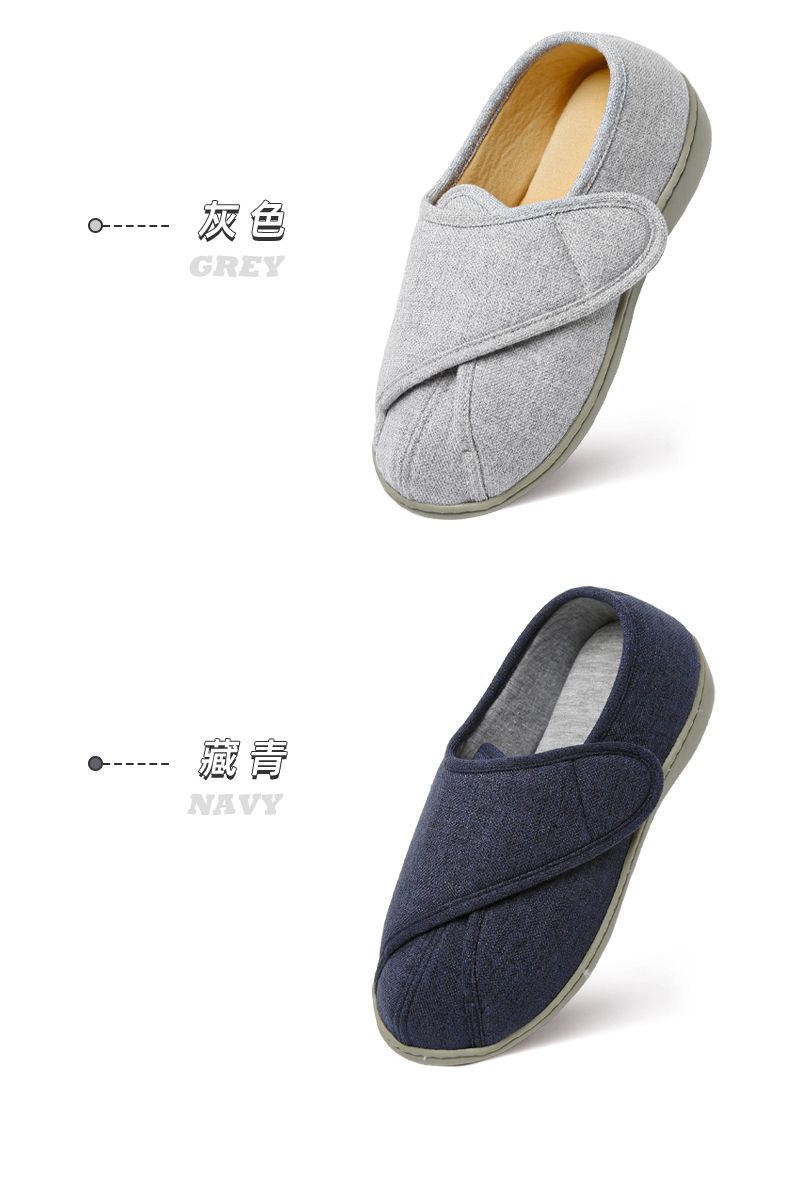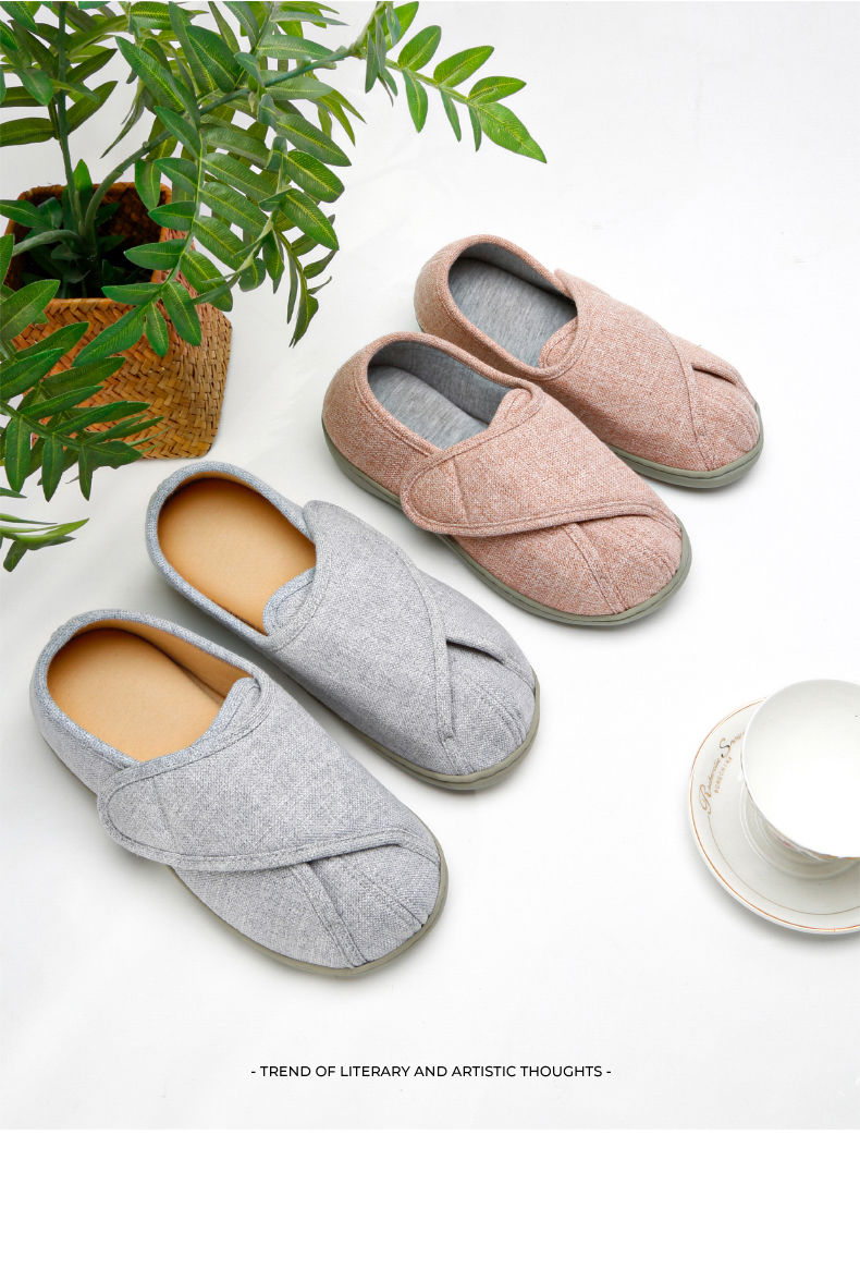 [脚肿浮肿可调节拖鞋] 魔术贴老人专用鞋四季保暖棉拖鞋男春夏家居棉麻包跟透气月子鞋女