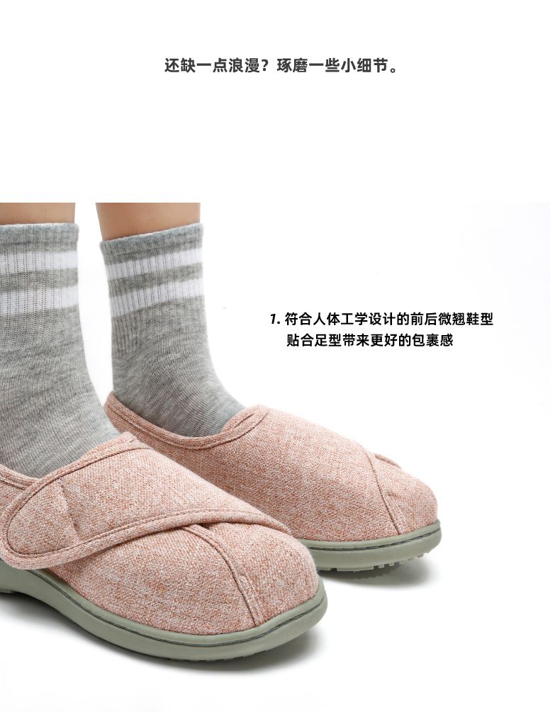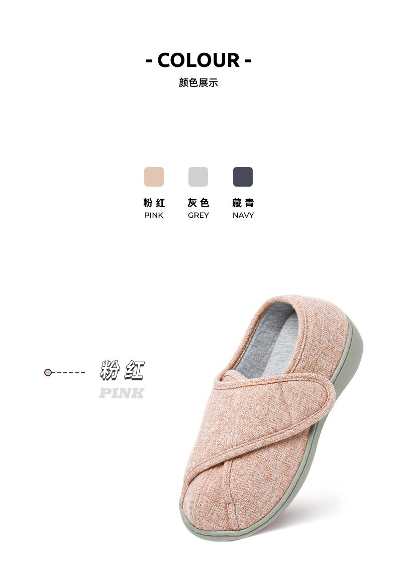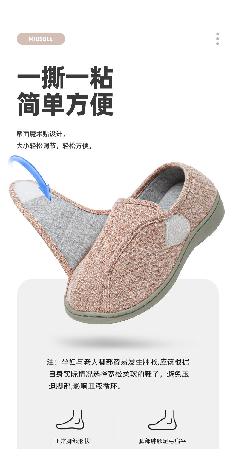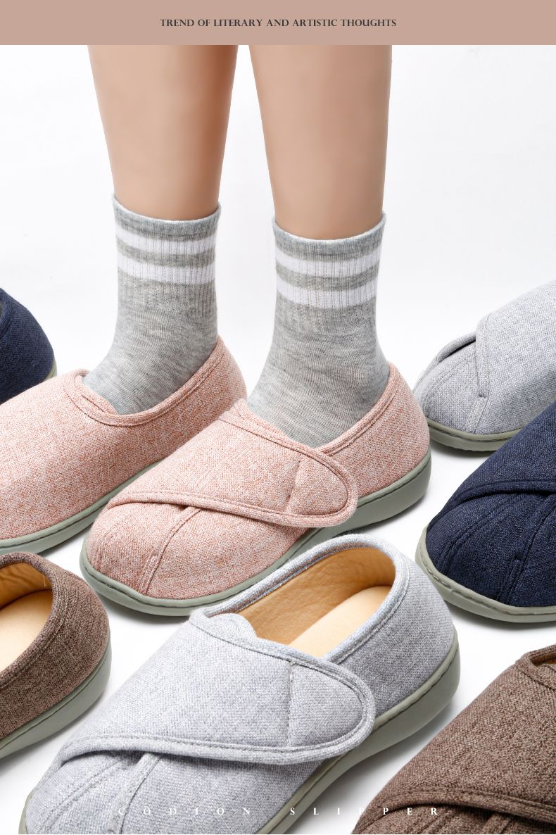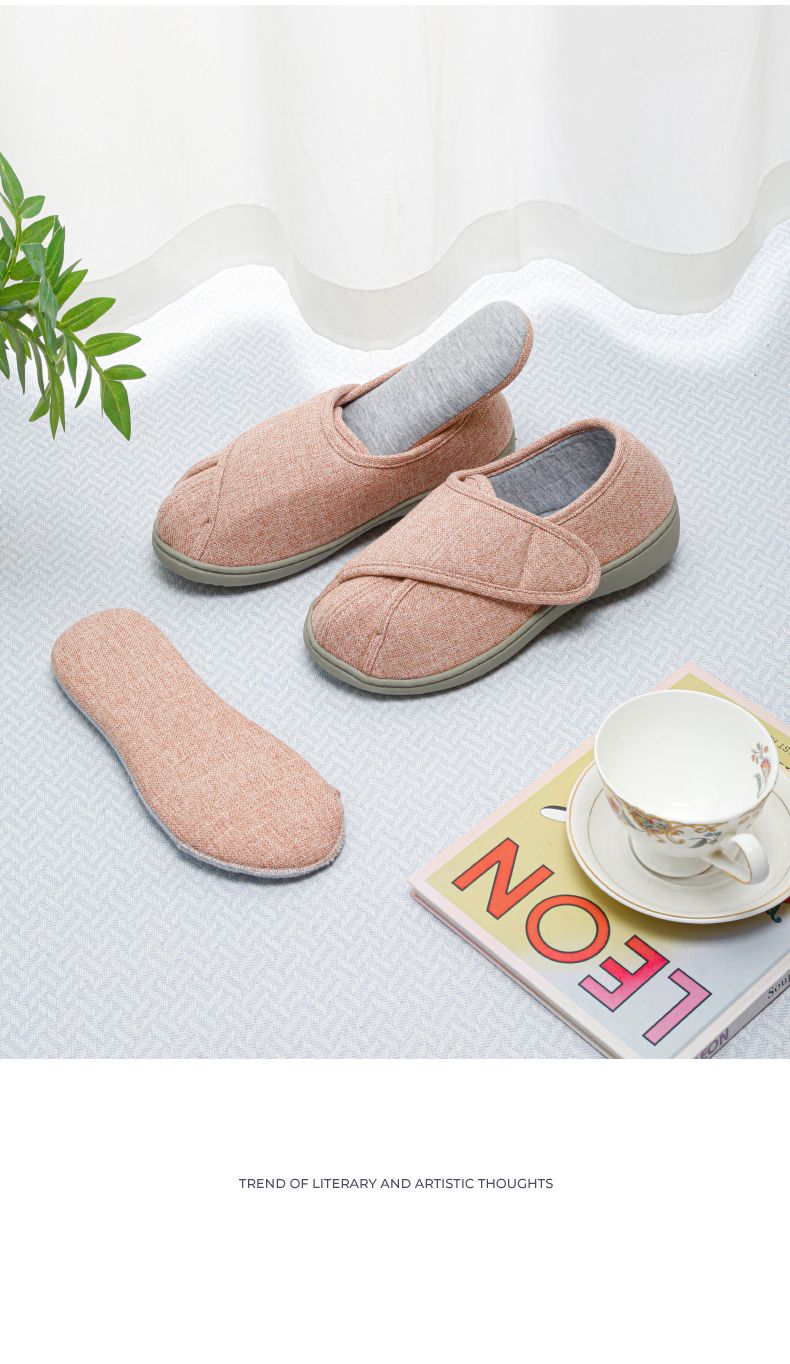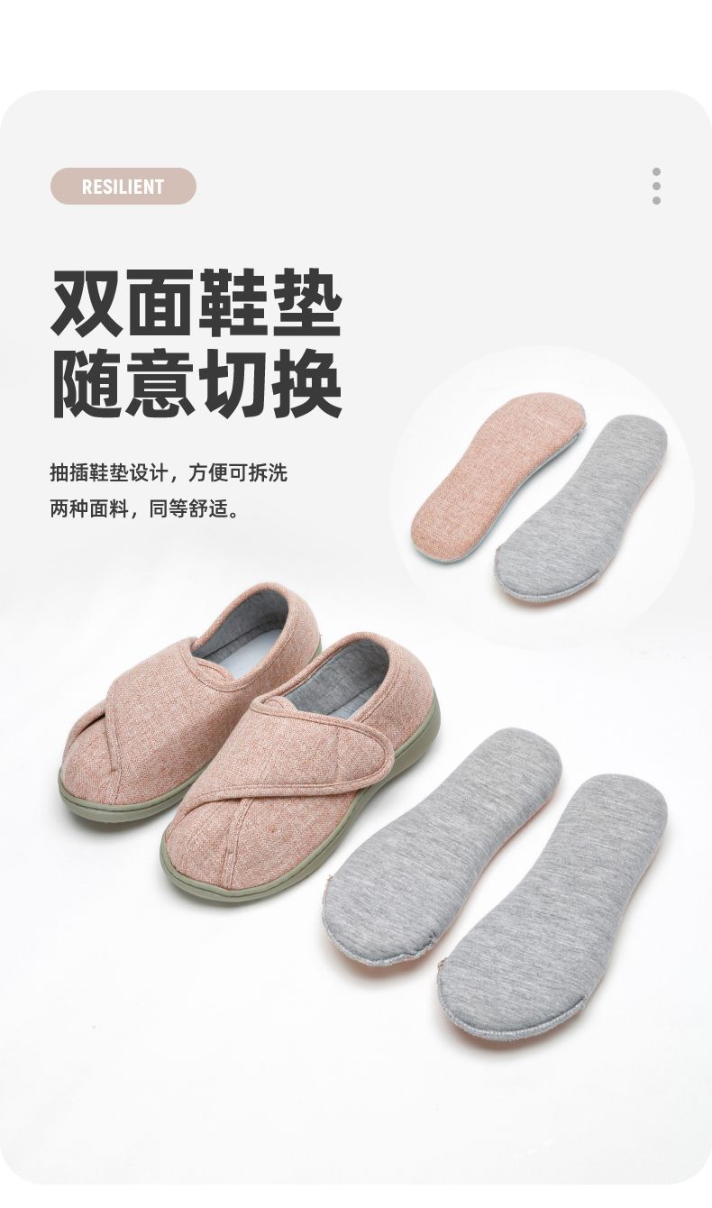 [脚肿浮肿可调节拖鞋] 魔术贴老人专用鞋四季保暖棉拖鞋男春夏家居棉麻包跟透气月子鞋女
