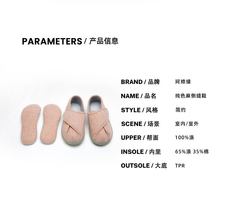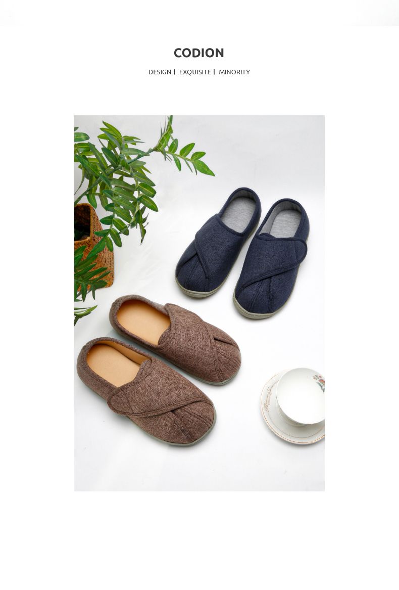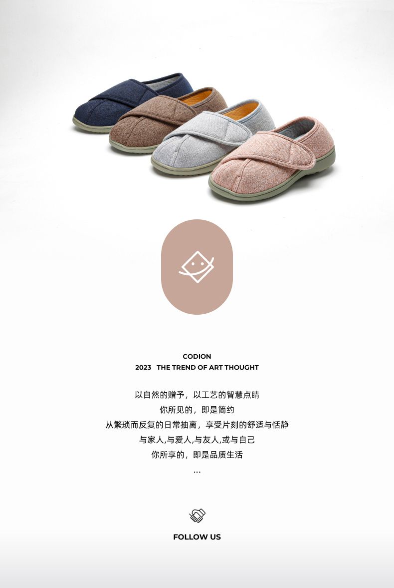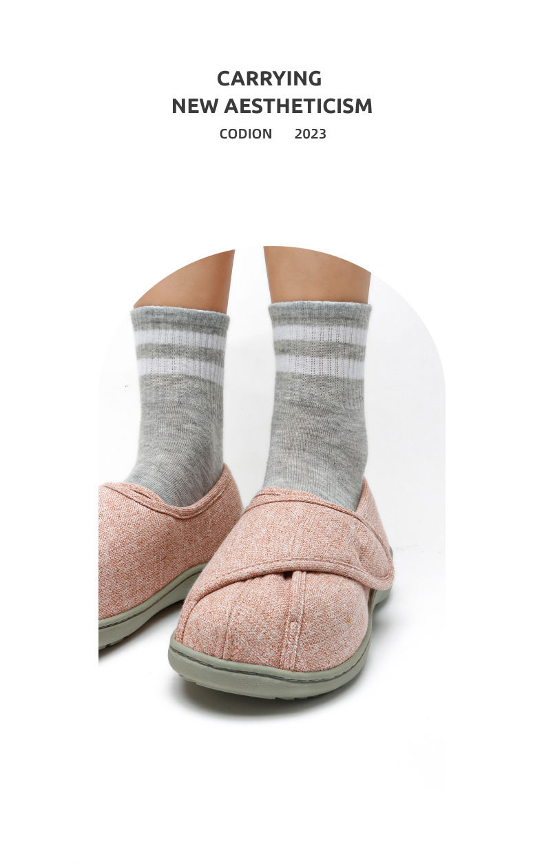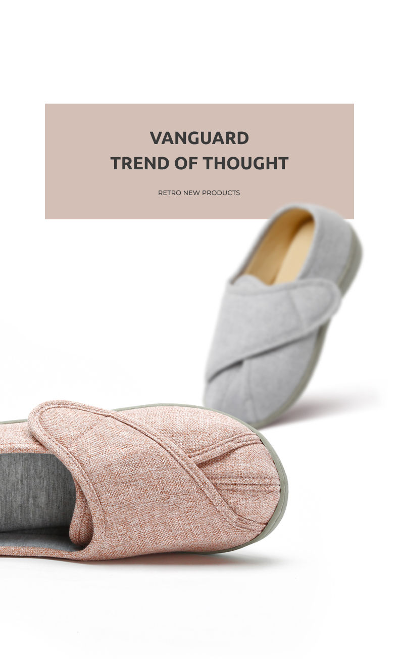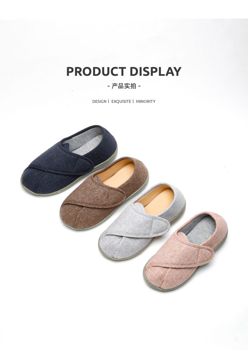 [脚肿浮肿可调节拖鞋] 魔术贴老人专用鞋四季保暖棉拖鞋男春夏家居棉麻包跟透气月子鞋女