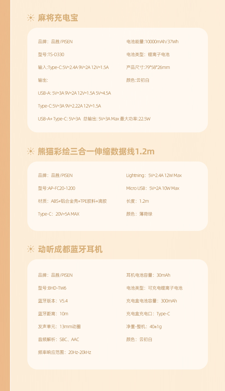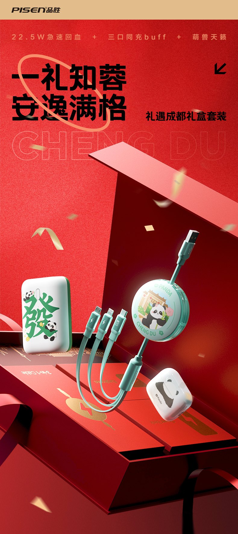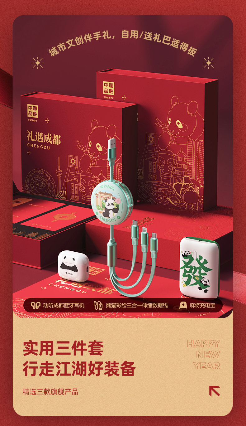 品胜 品胜-礼遇成都礼盒套装 品胜充电宝+耳机+三合一伸缩数据线