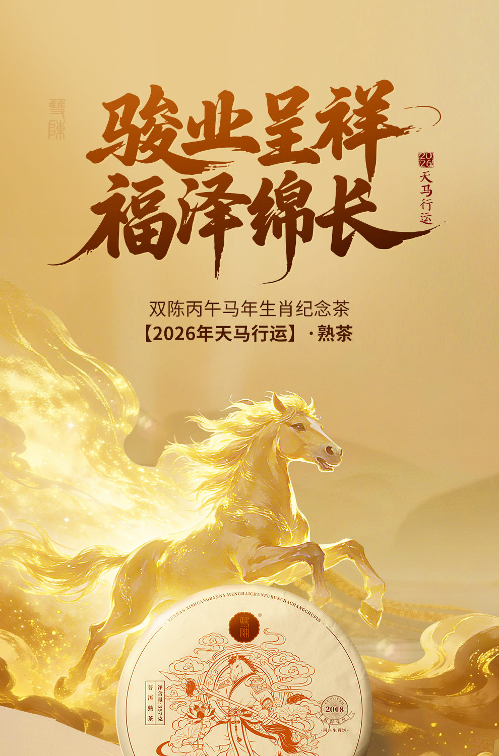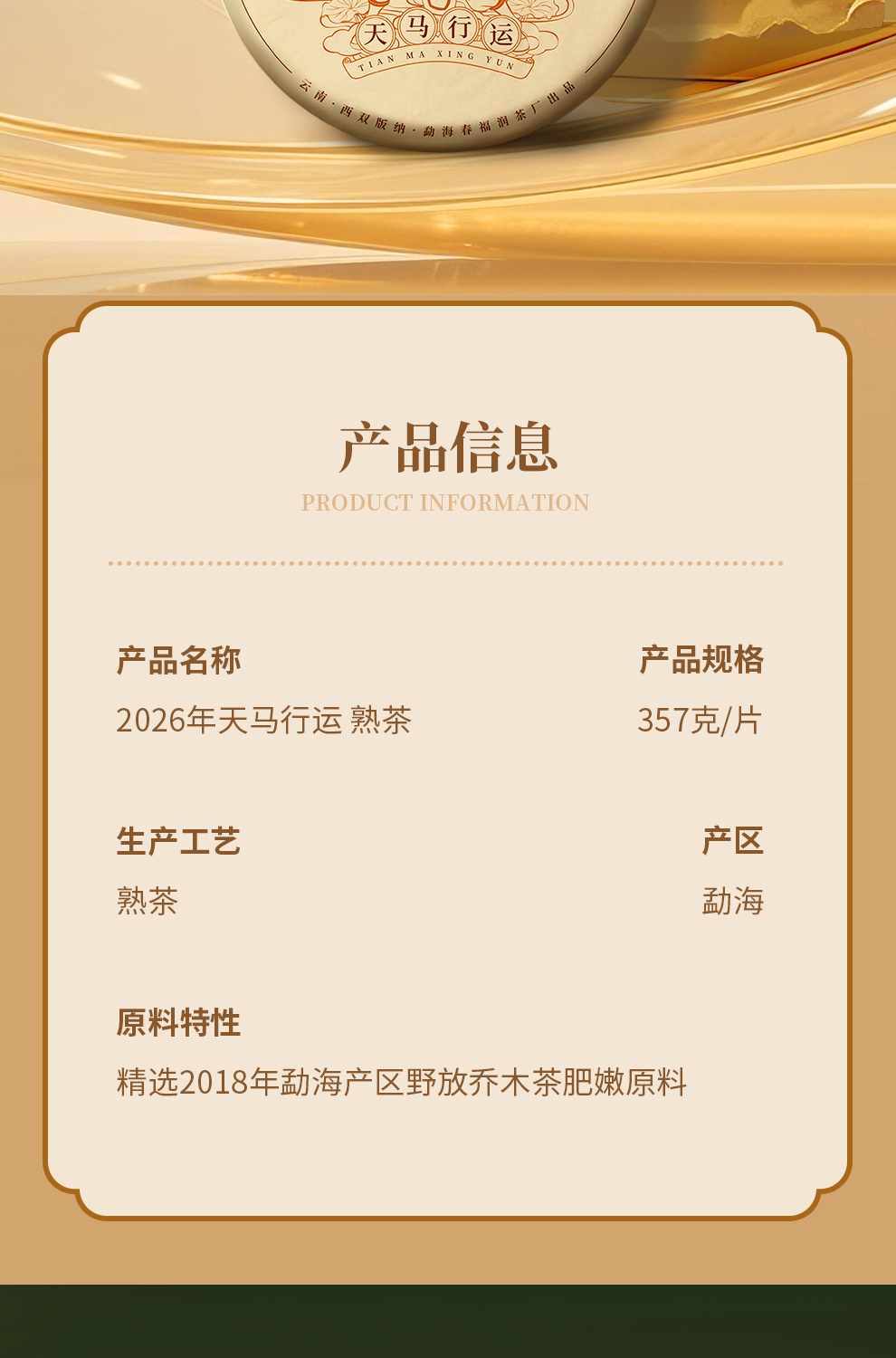 双陈普洱2026年天马行运熟茶357克马上能喝的好熟茶甜滑润活糯甜香红糖香