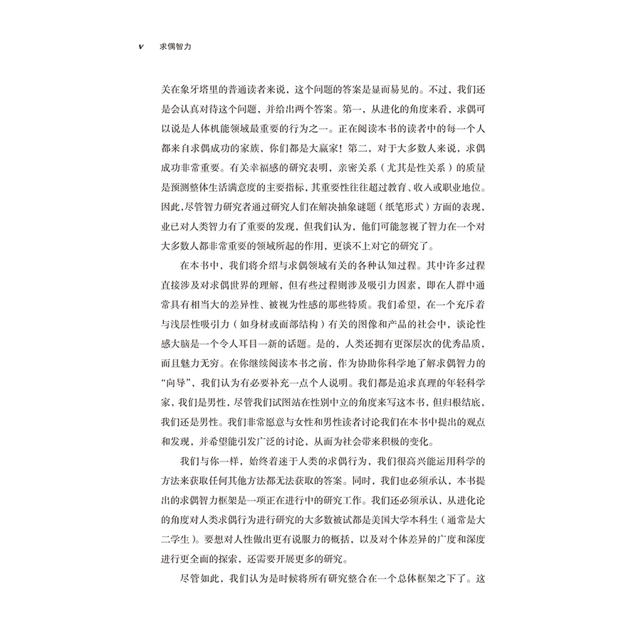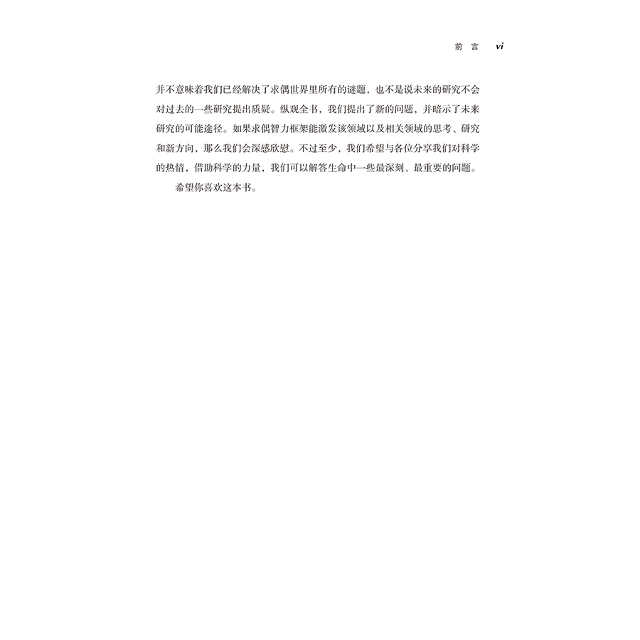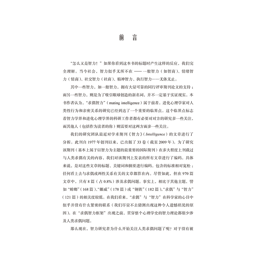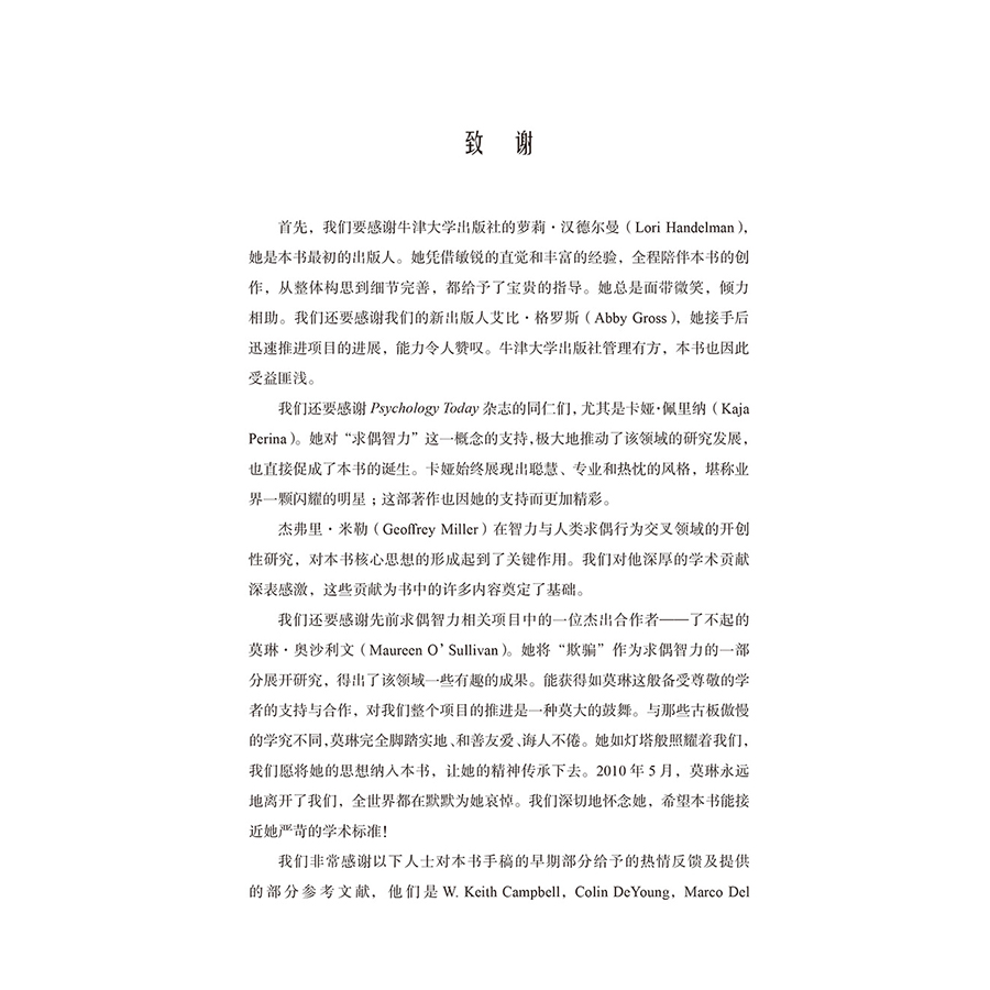 这本书由求偶智力领域的两位优秀学者撰写,文笔优美,通俗易懂,为我们展现了新兴求偶智力领域中引人入胜的研究结果和理论知识。