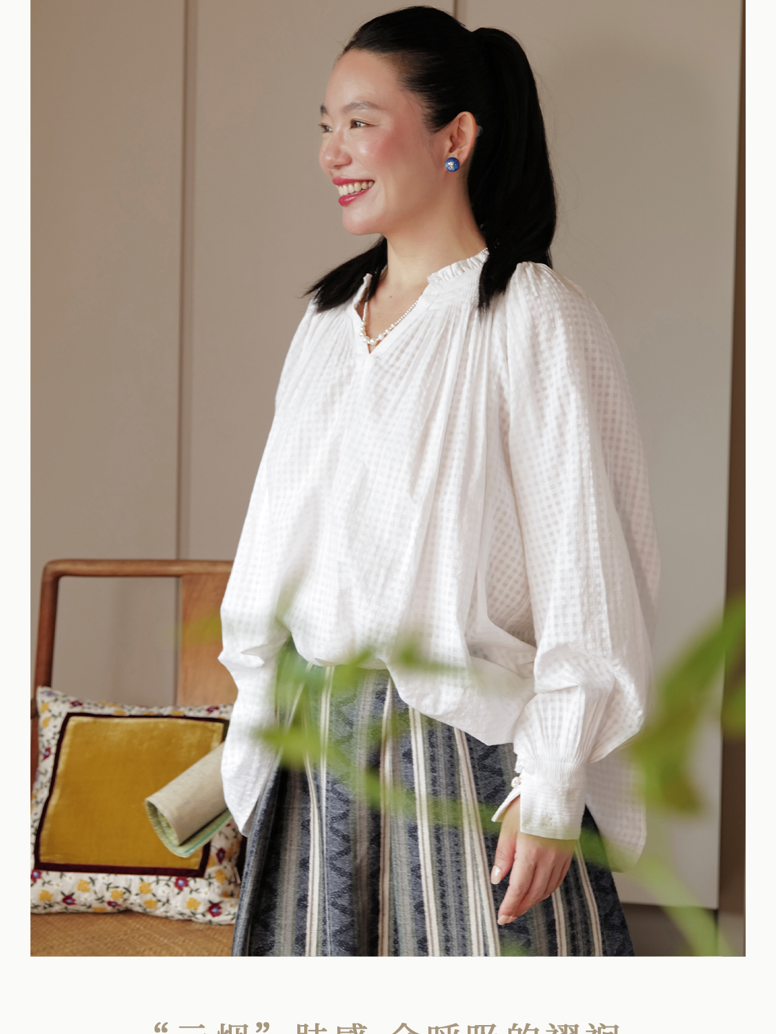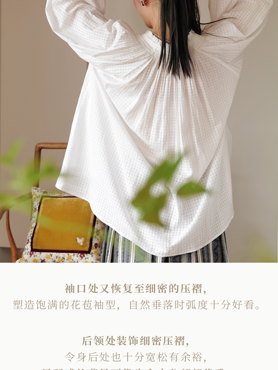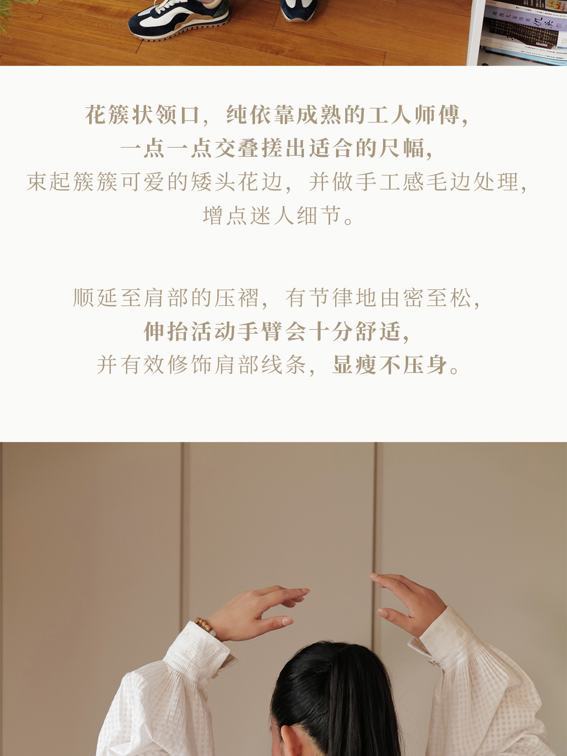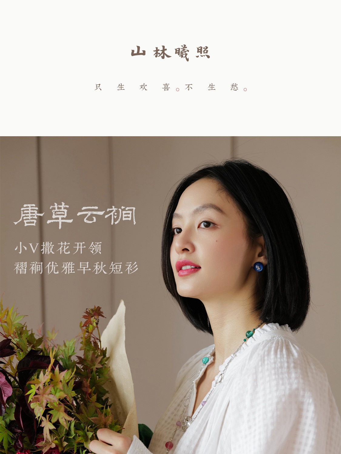 唐草云裥 小V撒花开领褶裥优雅早秋短衫 山林曦照