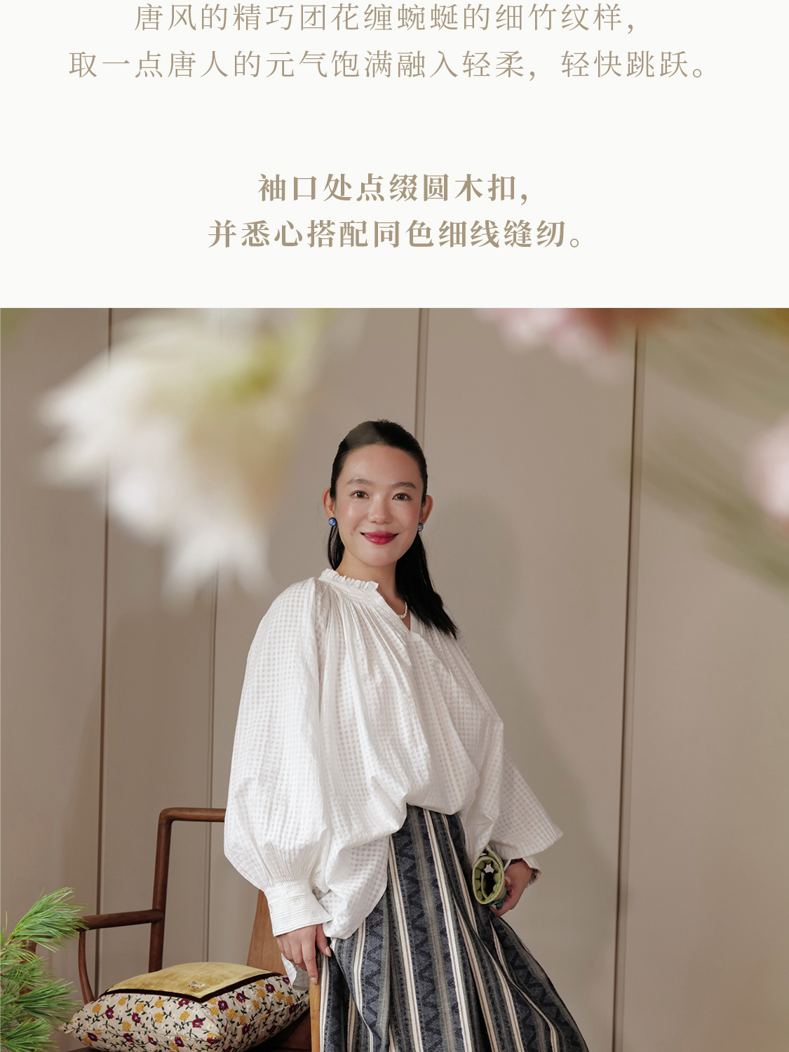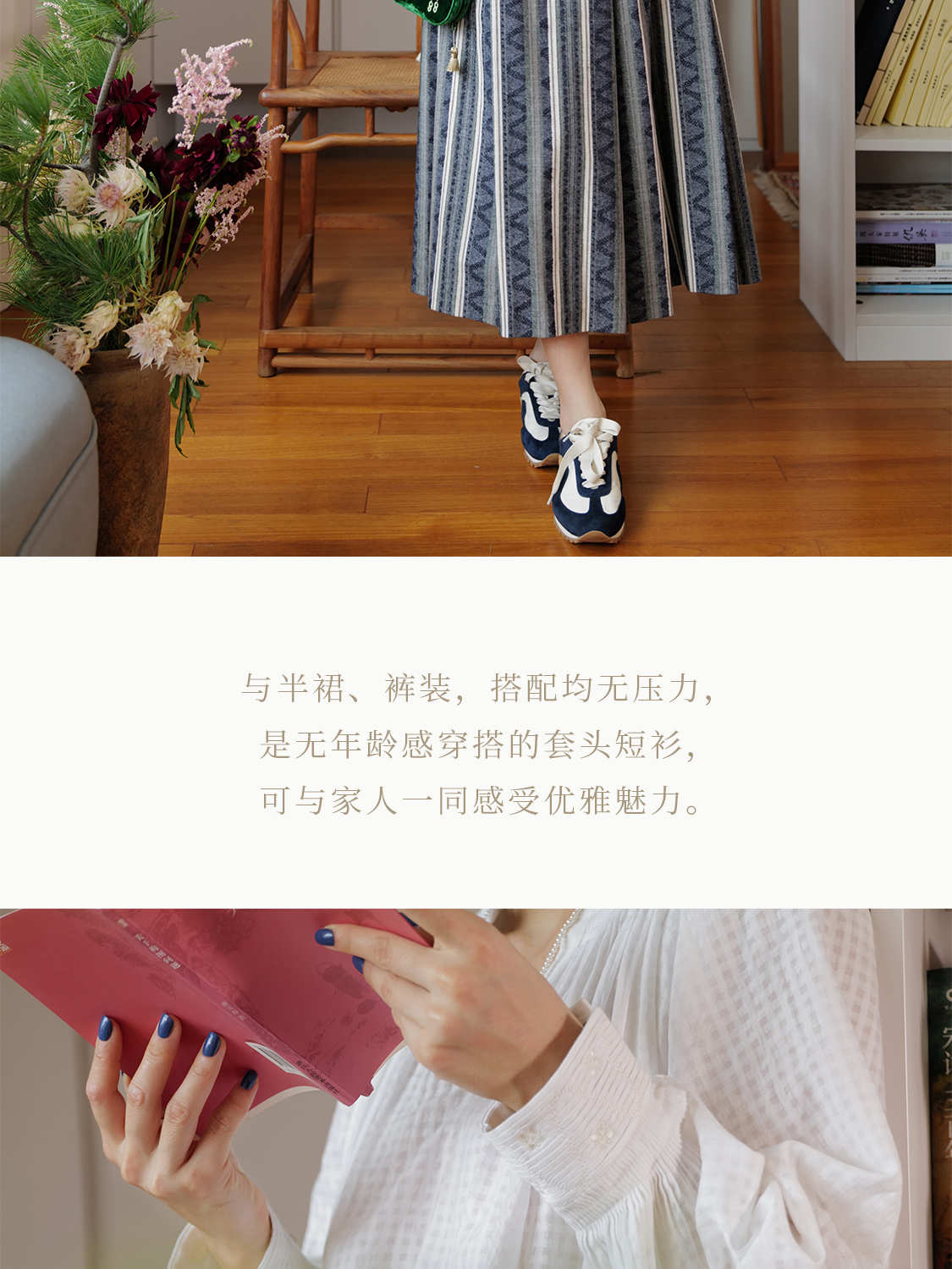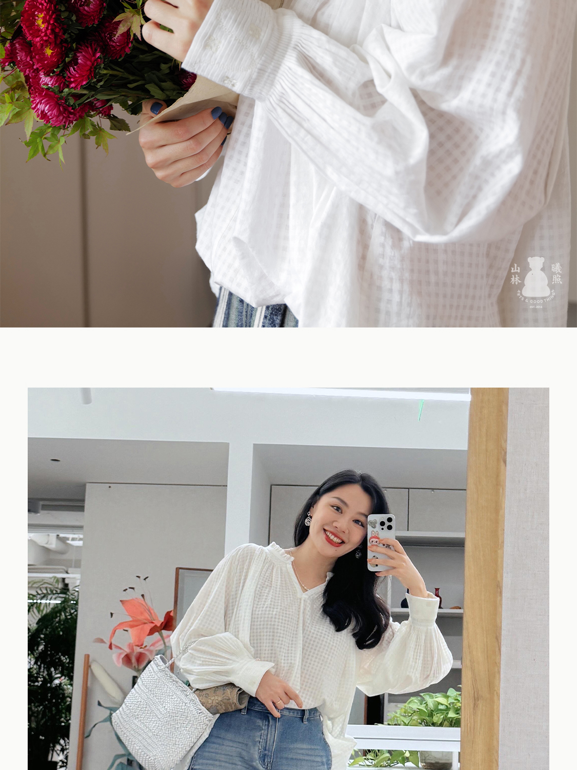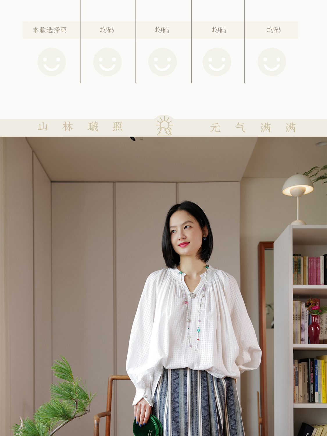 唐草云裥 小V撒花开领褶裥优雅早秋短衫 山林曦照