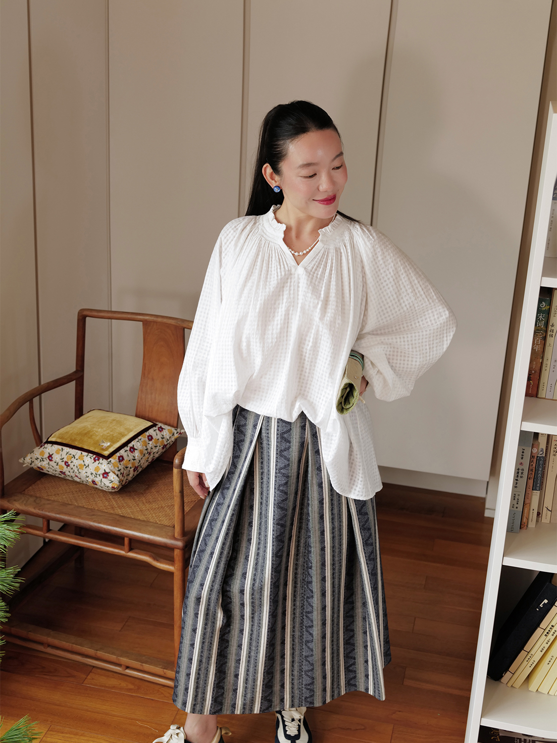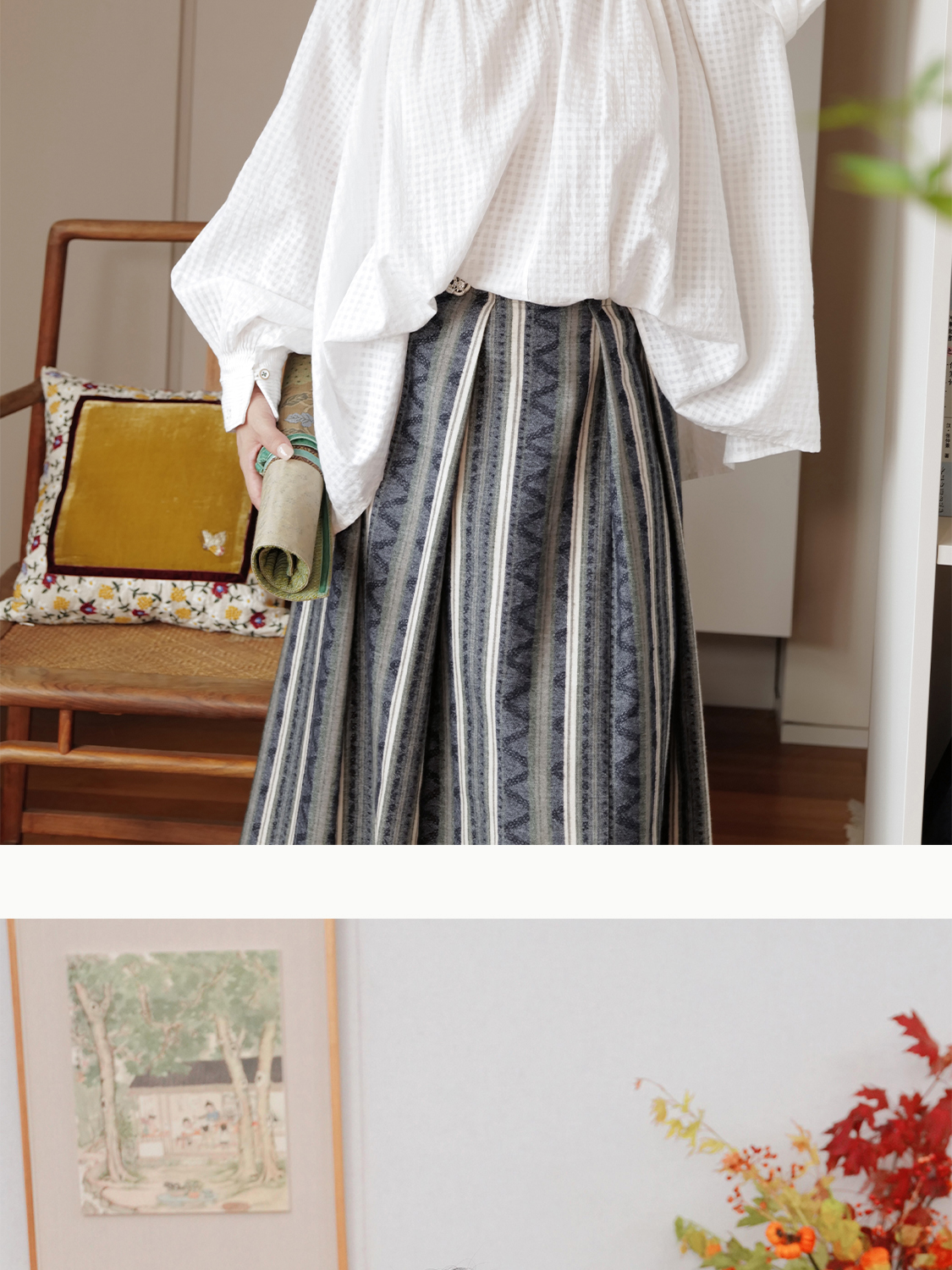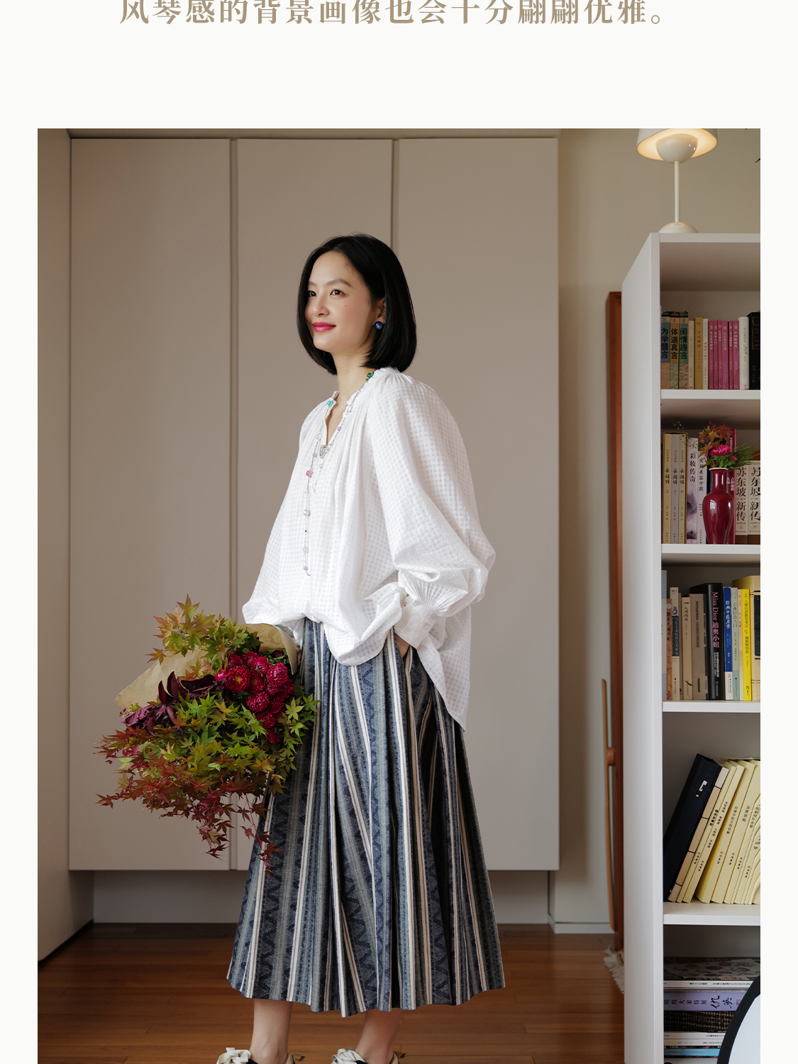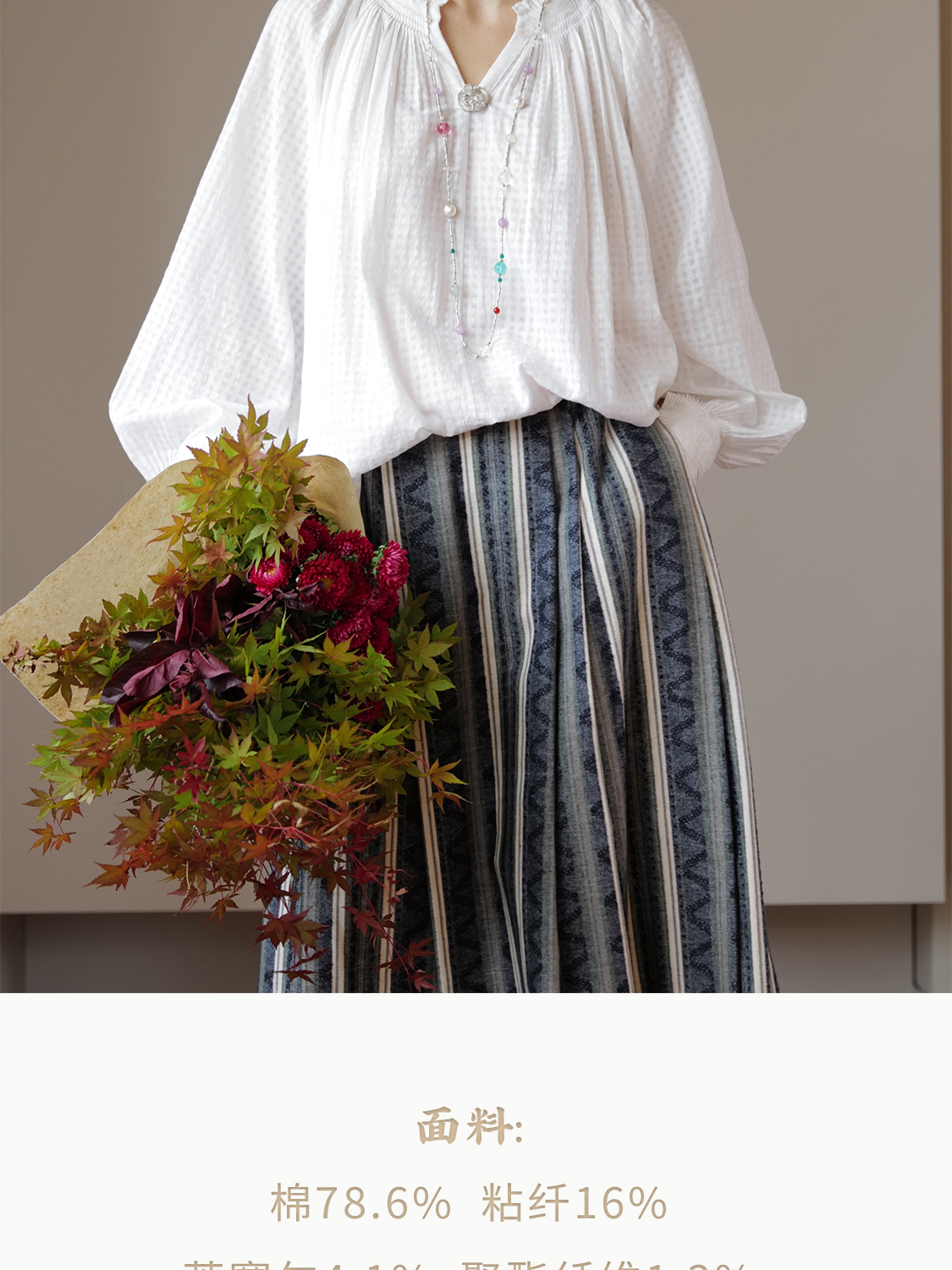 唐草云裥 小V撒花开领褶裥优雅早秋短衫 山林曦照