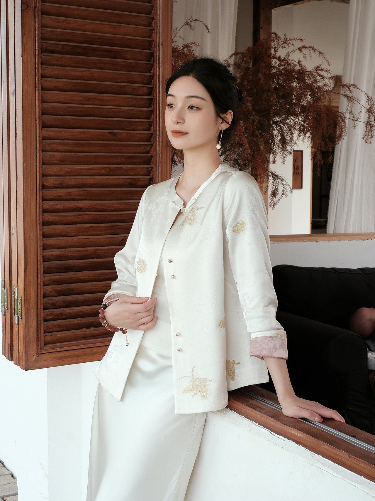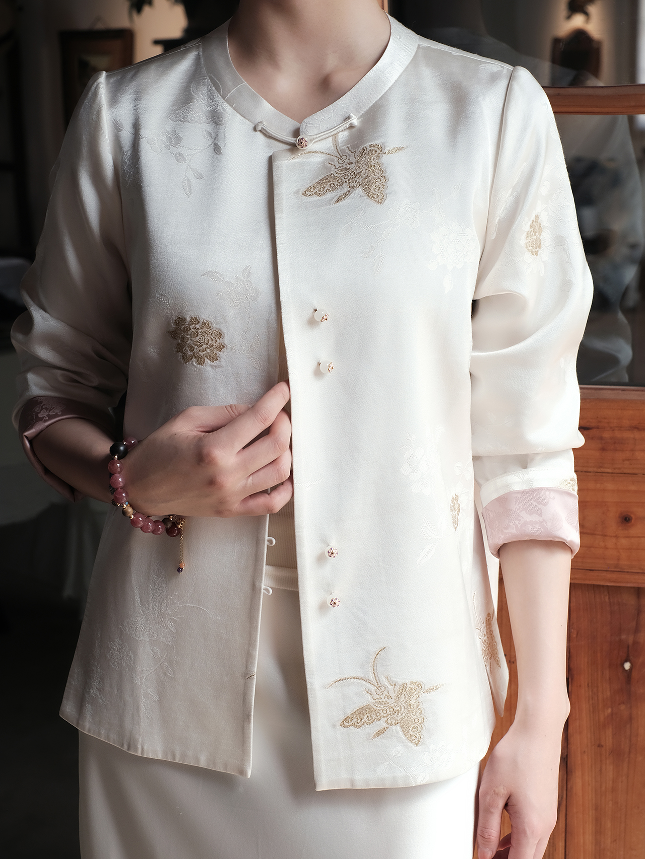 盛唐婧| 新中式蝶舞织金真丝缎外套