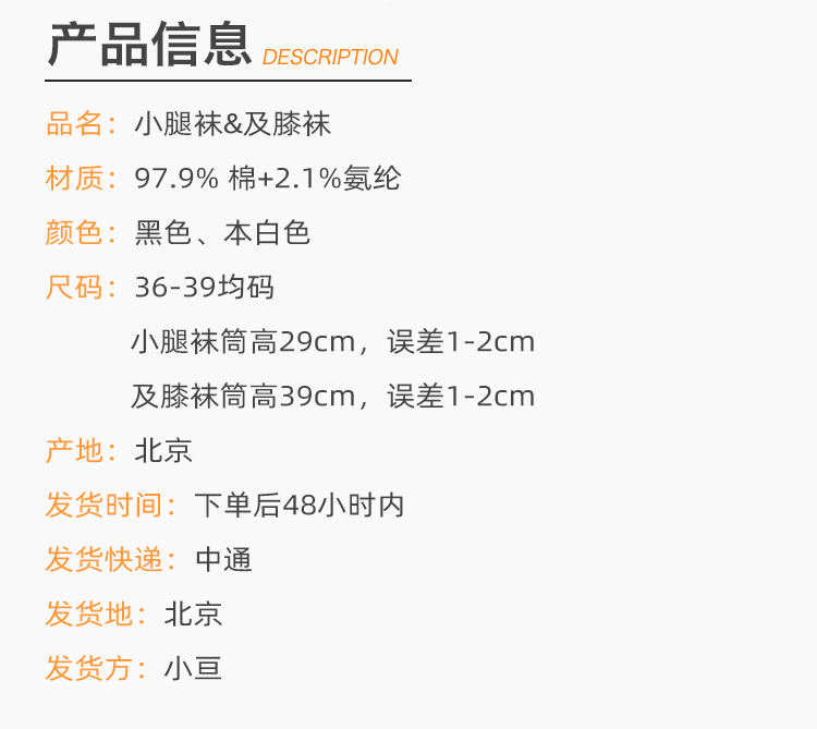 小亘小腿袜&及膝袜 女士长筒袜 (36-39均码)(常规地区满120包邮)