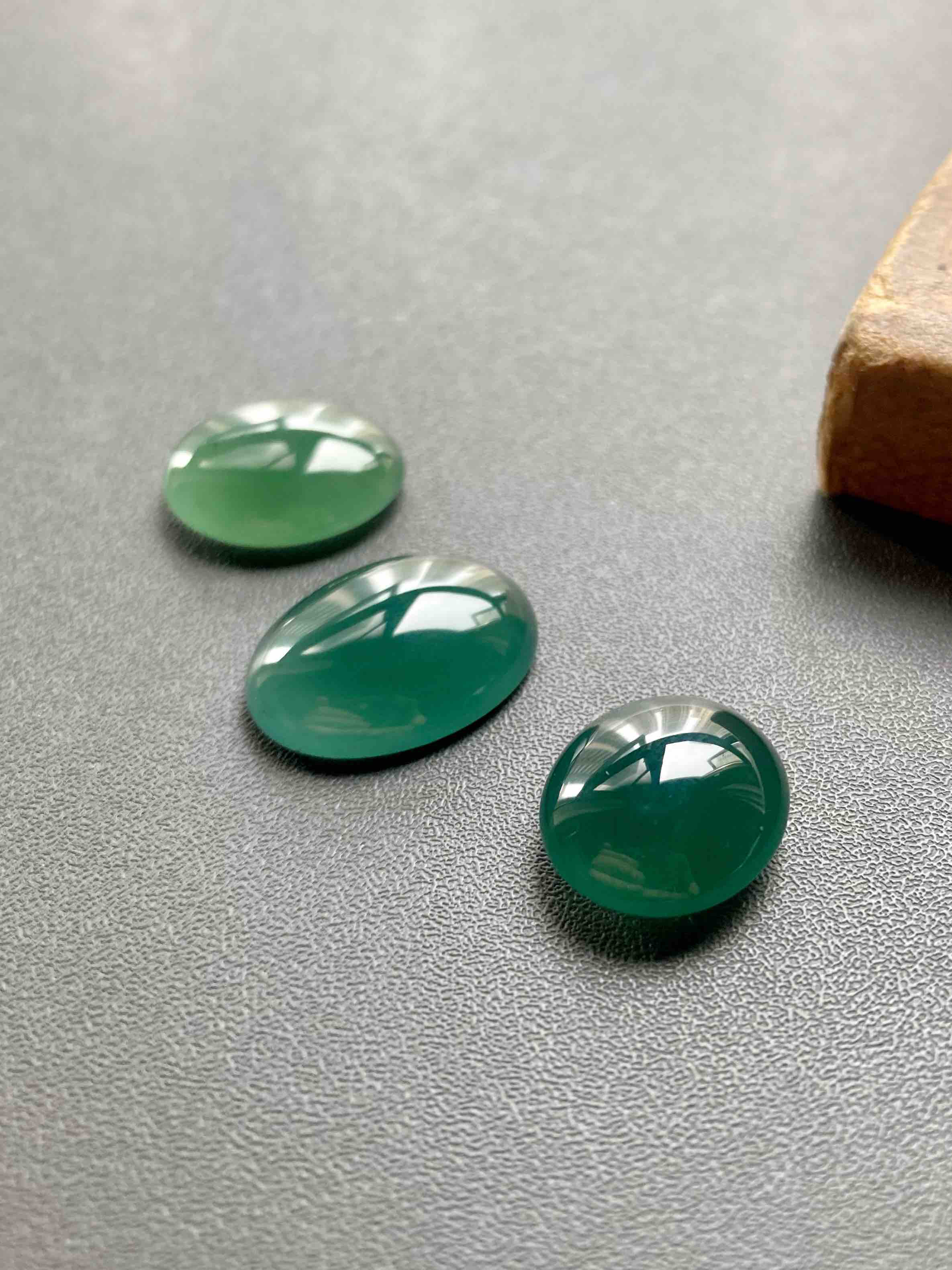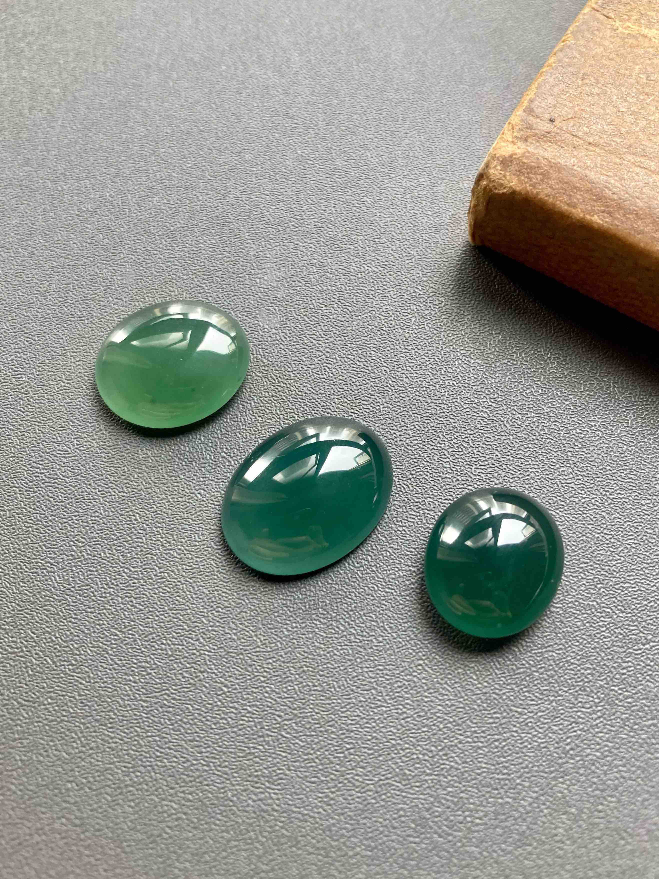 高冰种老蓝水翡翠大蛋面,种气极老,深邃的蓝色,非常特别,很多年前做的,之前有客人买过,没想到这种料子后来几乎绝迹,市面上不再有,一晃好多年,家里最后几个压箱底的,都贡献出来了,以后不会有了,推荐高级玩家入手,尺寸超级大气,1号适合做戒指,2和3可以做吊坠。