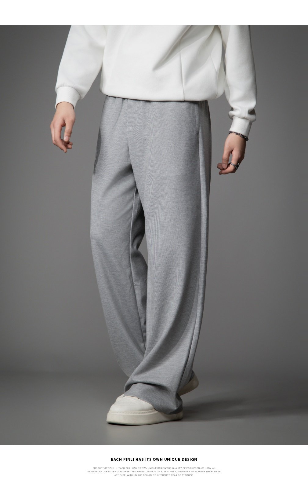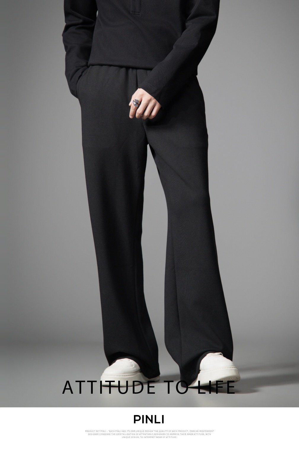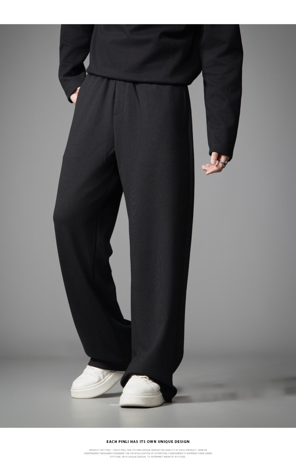 PINLI品立2026春季新款宽松直筒阔腿裤纯色百搭休闲长裤潮牌男士GD262117010