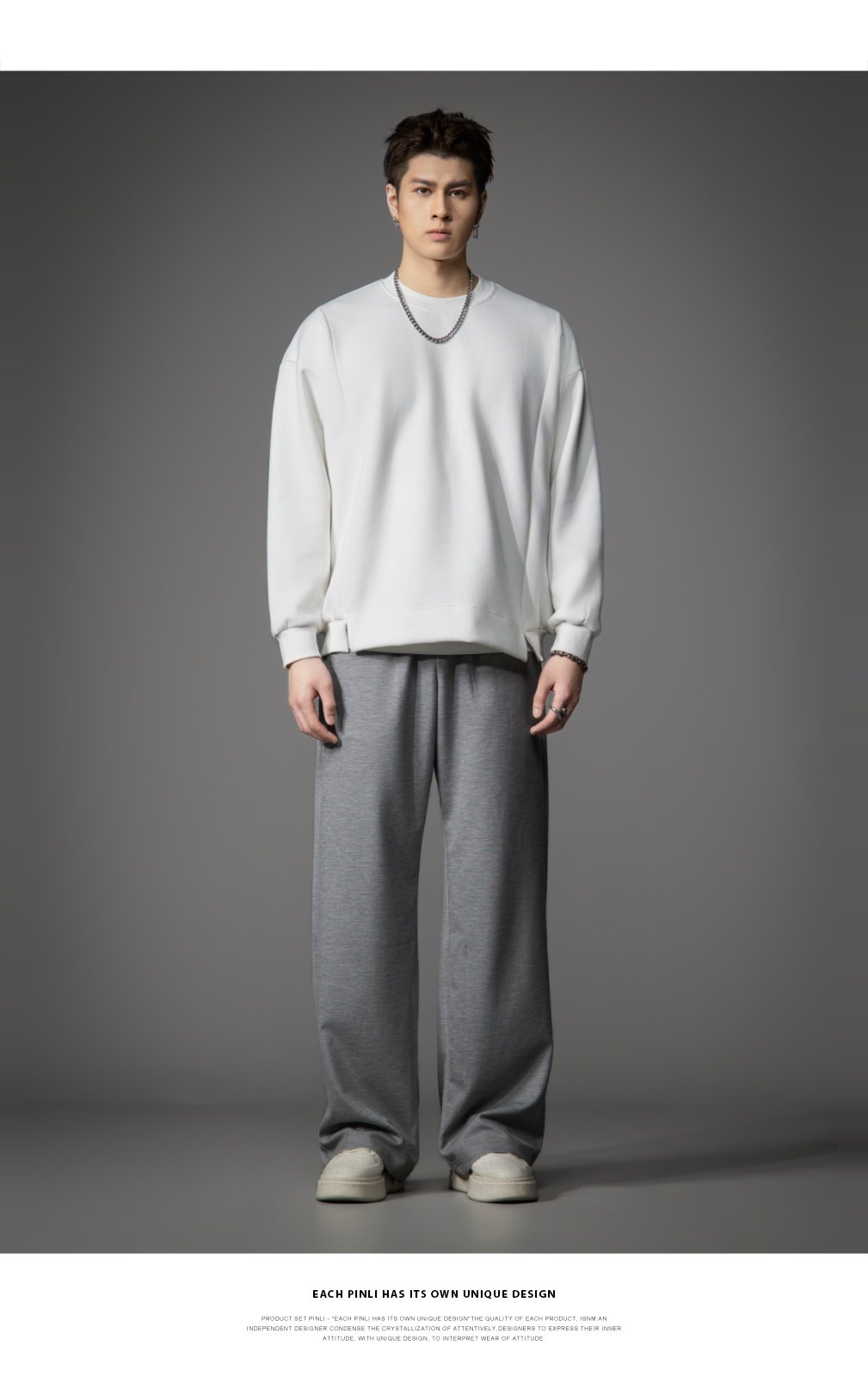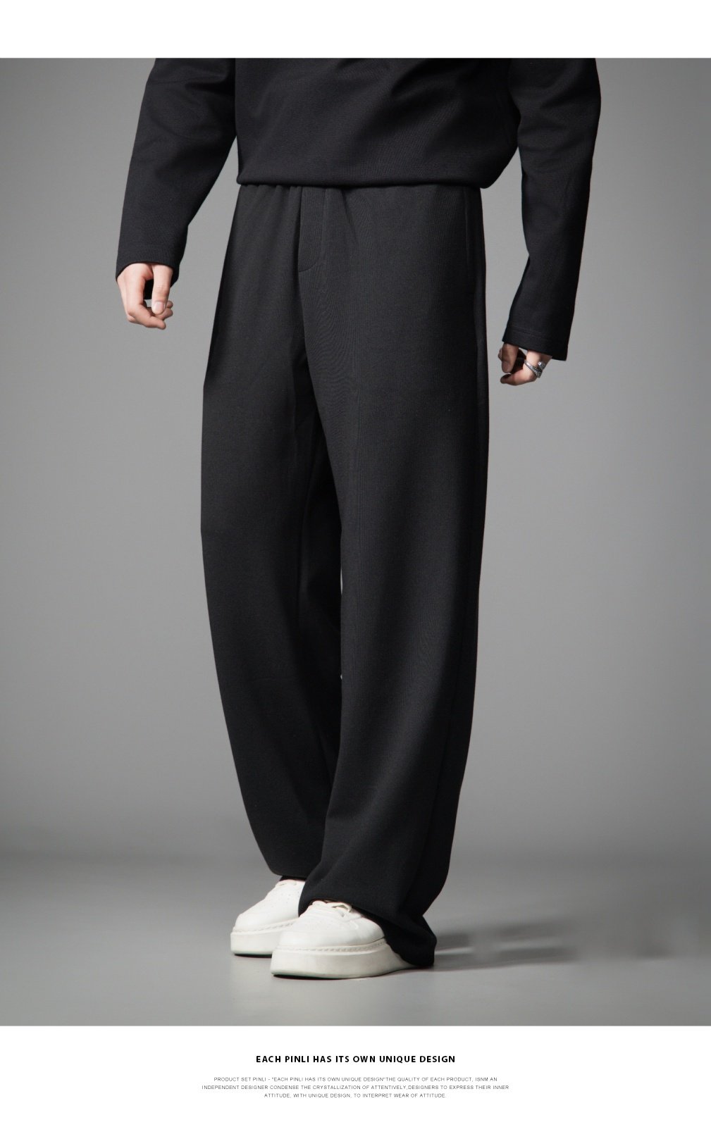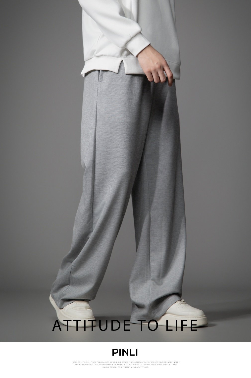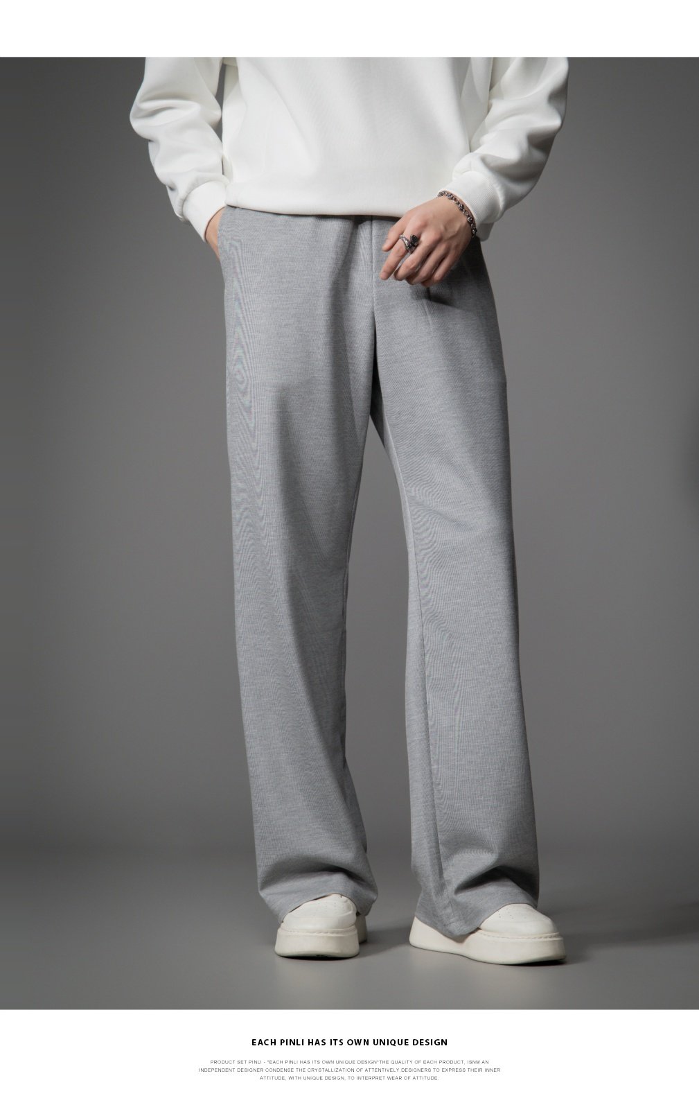PINLI品立2026春季新款宽松直筒阔腿裤纯色百搭休闲长裤潮牌男士GD262117010