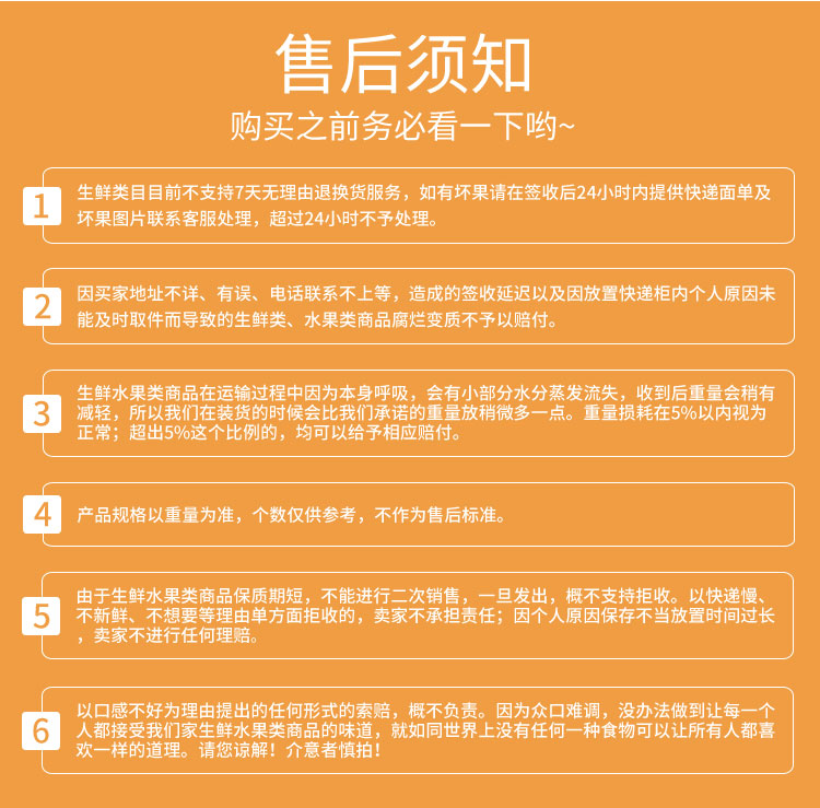 2.下单前请认真核对好发货信息,下单后不支持改地址/拦截/拒收/退换货,拦截/改地址产生的费用根据地址远近收取