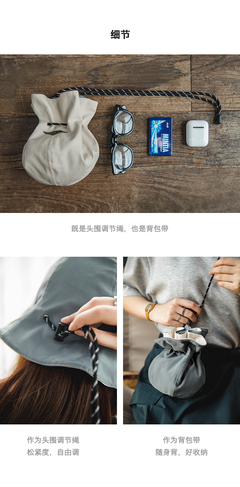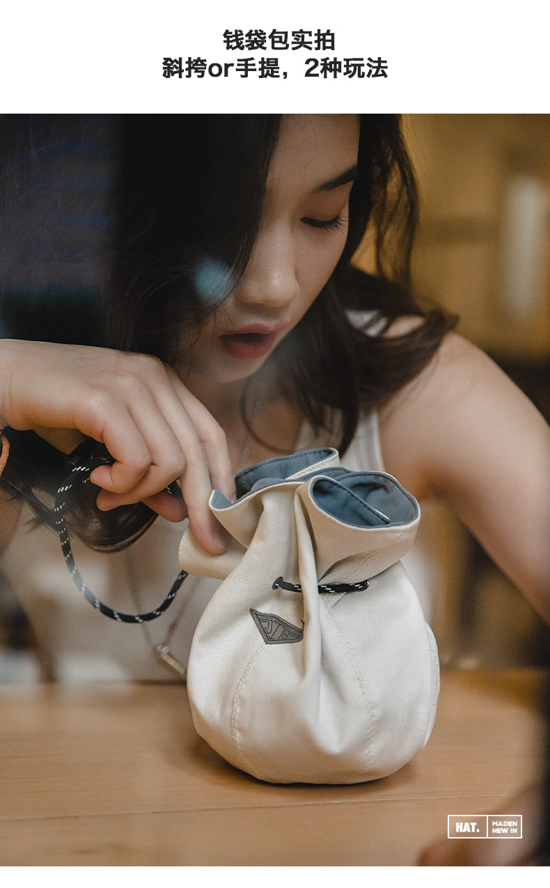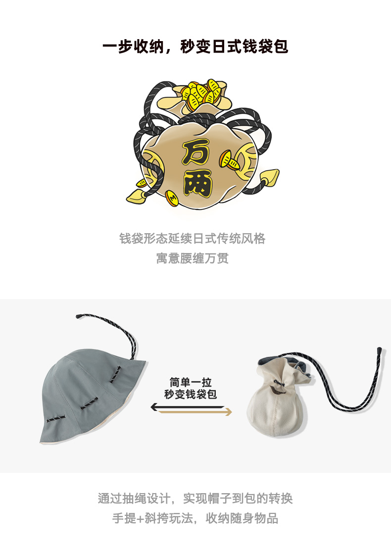 马登女装复古黑色两用渔夫帽便携手提零钱包钱袋帽遮阳帽子男女春
