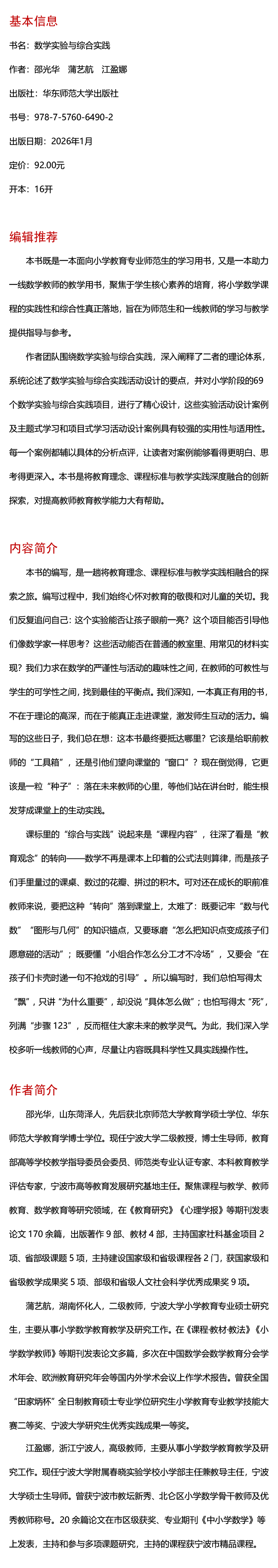 数学实验与综合实践 小学教育一流本科建设专业与师范教育创新工程系列教材
