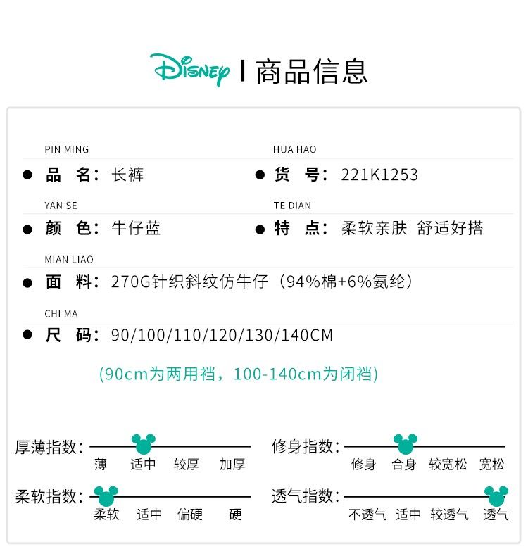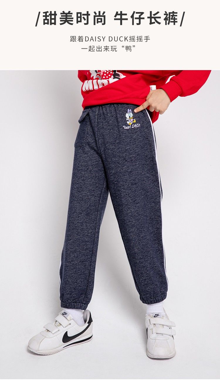 迪士尼童装儿童仿牛仔长裤春秋新款女童纯色裤子舒适百搭柔软潮221K1253