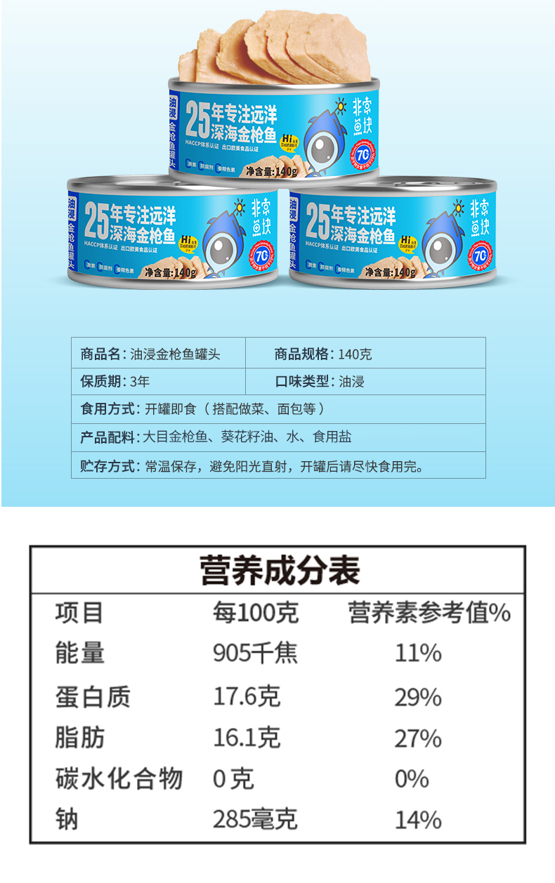非常鱼块 金枪鱼罐头140g/罐 正宗深海远洋金枪鱼 富含优质蛋白