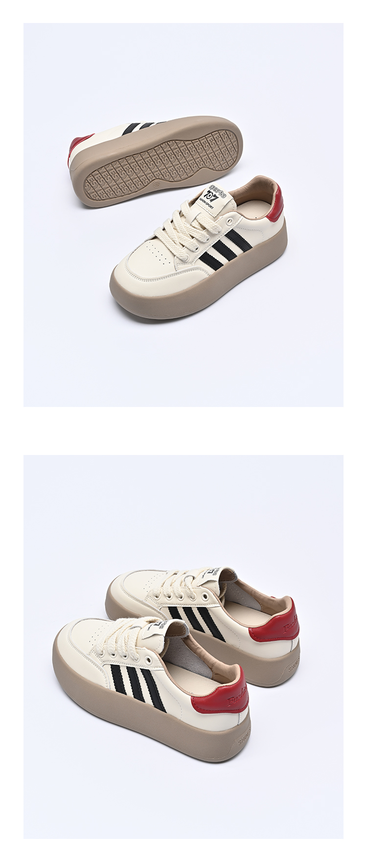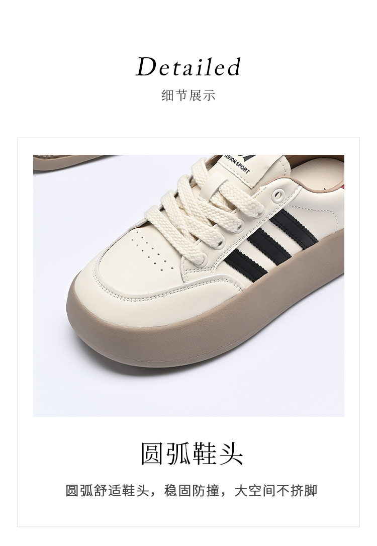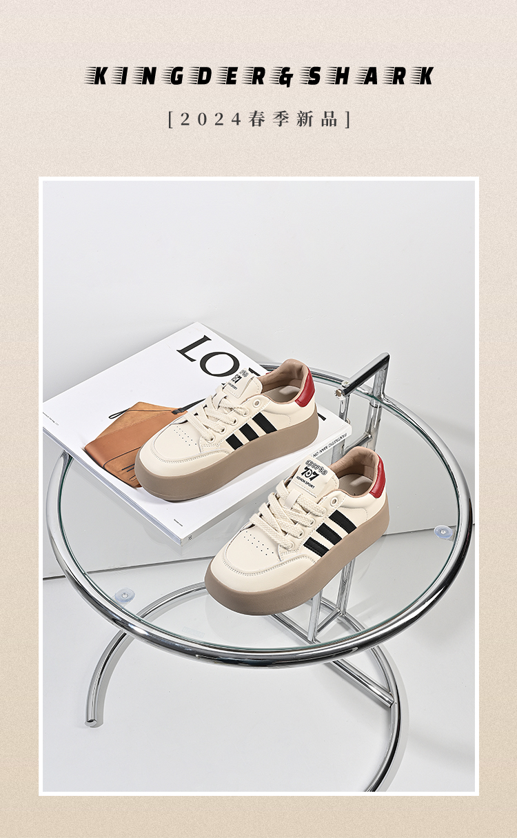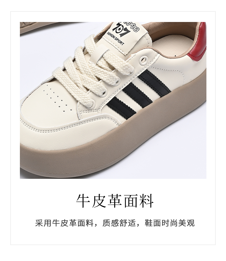 2024经典鲨春季女鞋新款时尚厚底复古三条杠经典小白鞋KW160-D17101