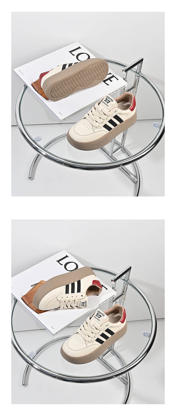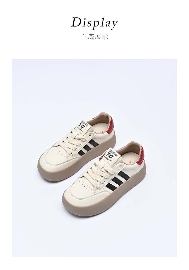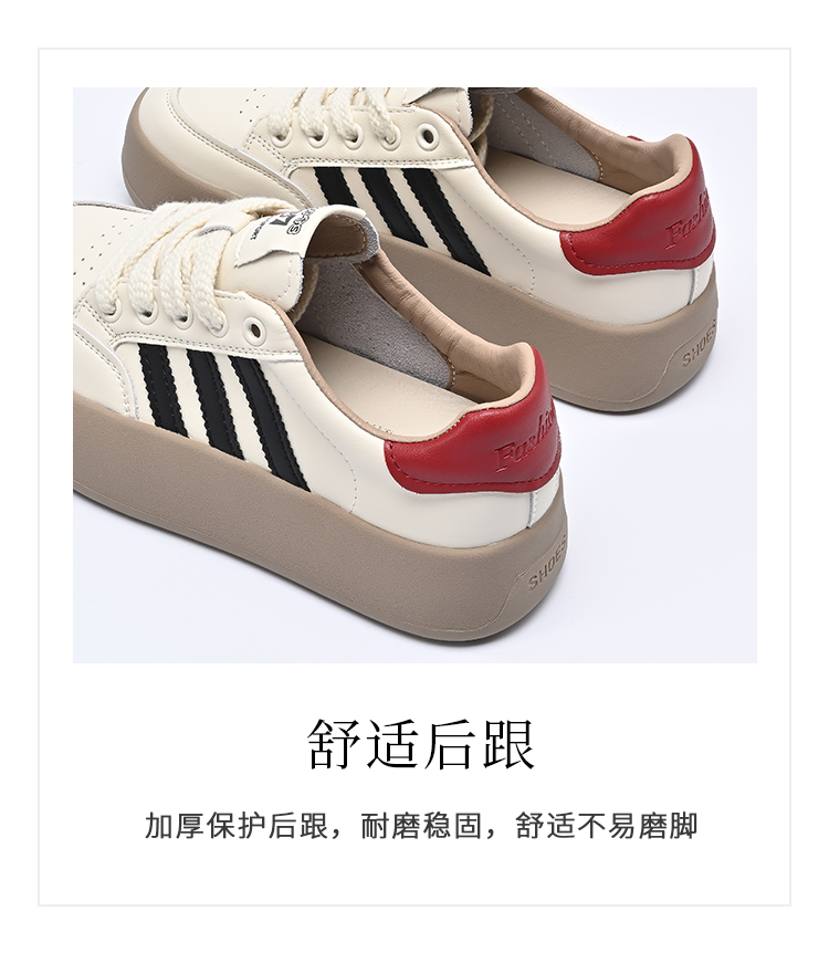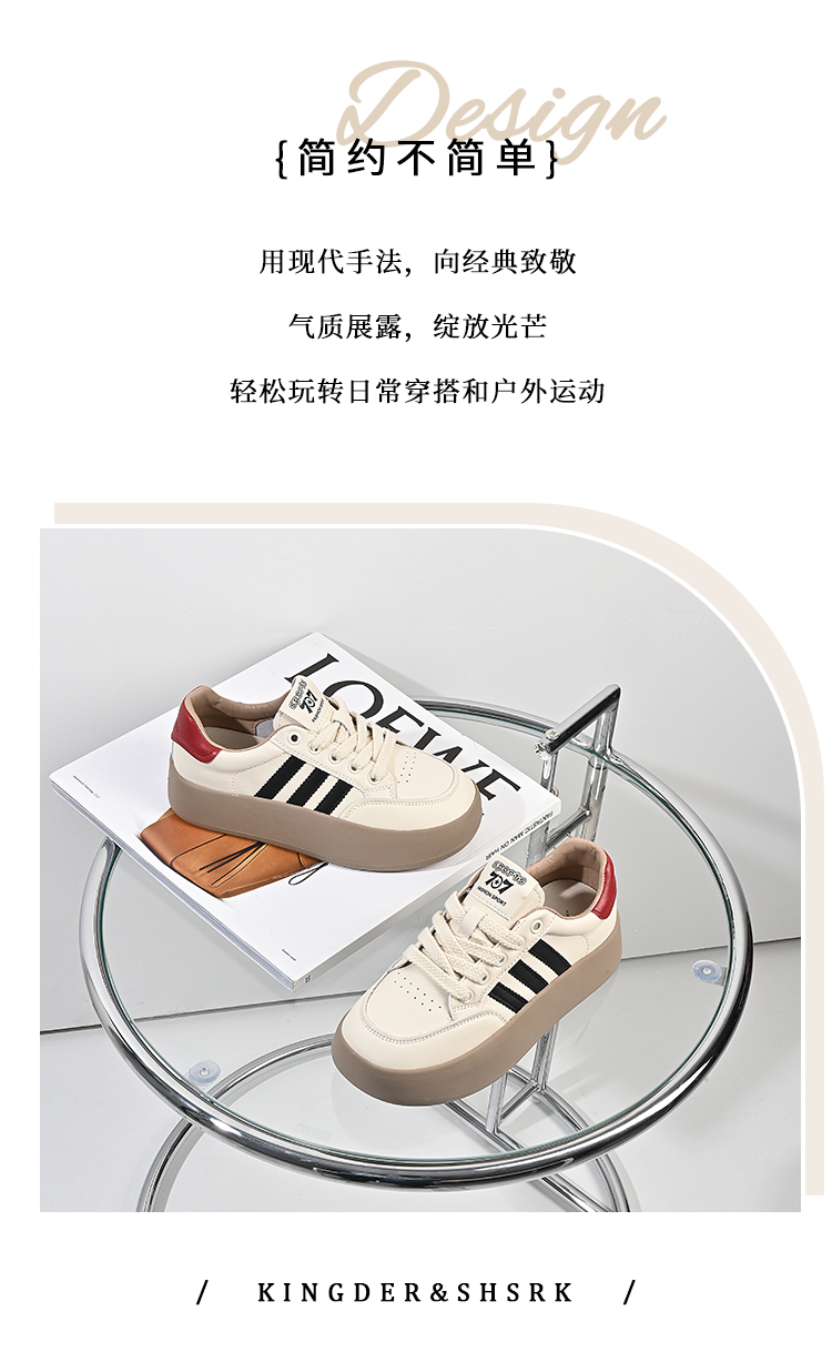 2024经典鲨春季女鞋新款时尚厚底复古三条杠经典小白鞋KW160-D17101