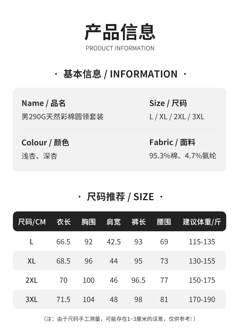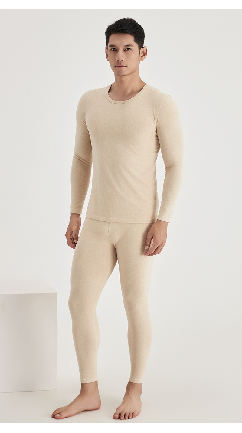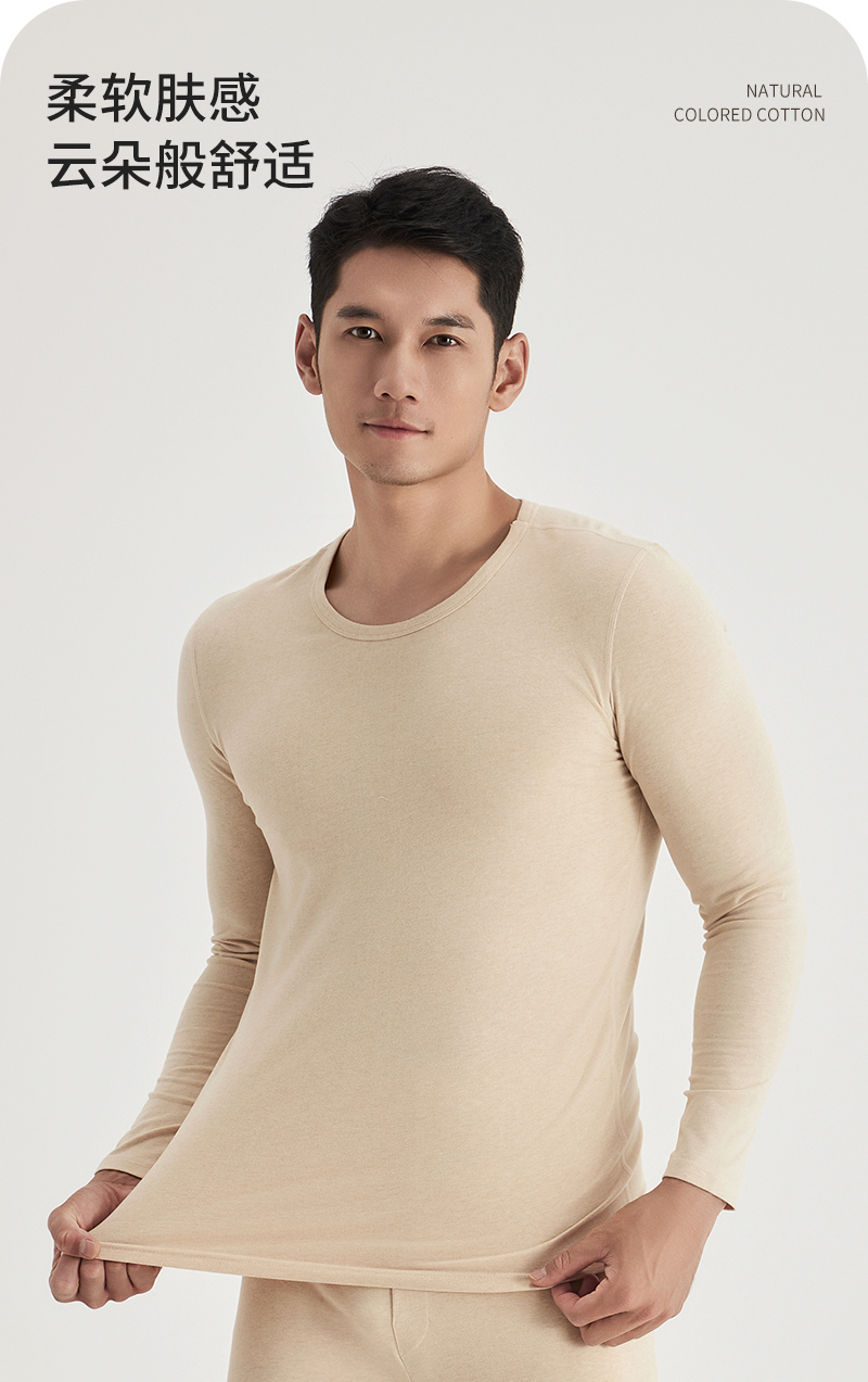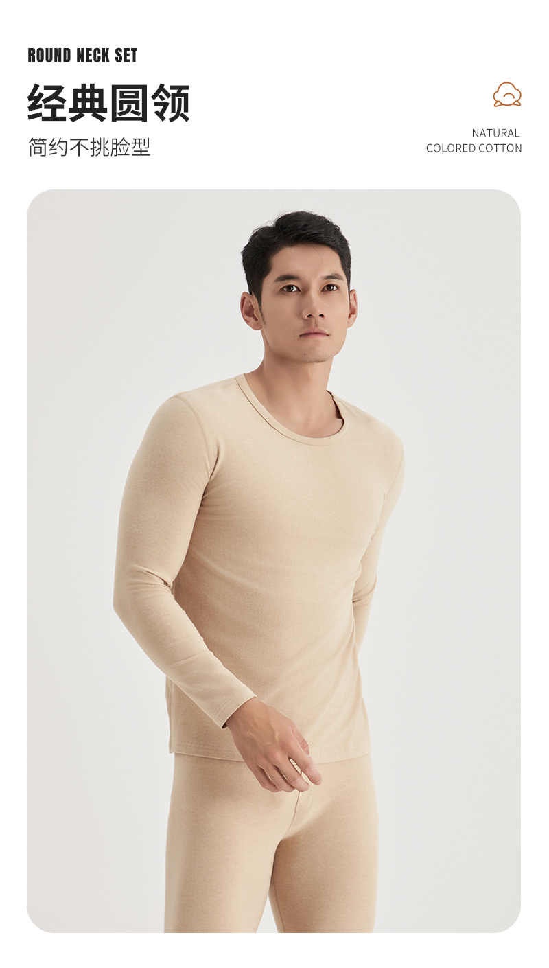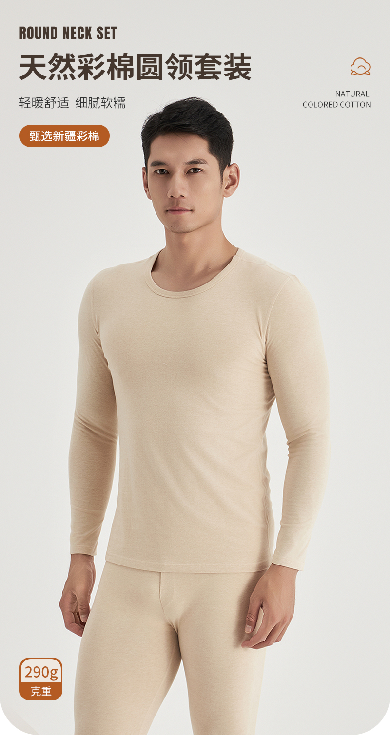 weyo秋冬新款男士290g天然彩棉圆领保暖衣套装B15305+B15406