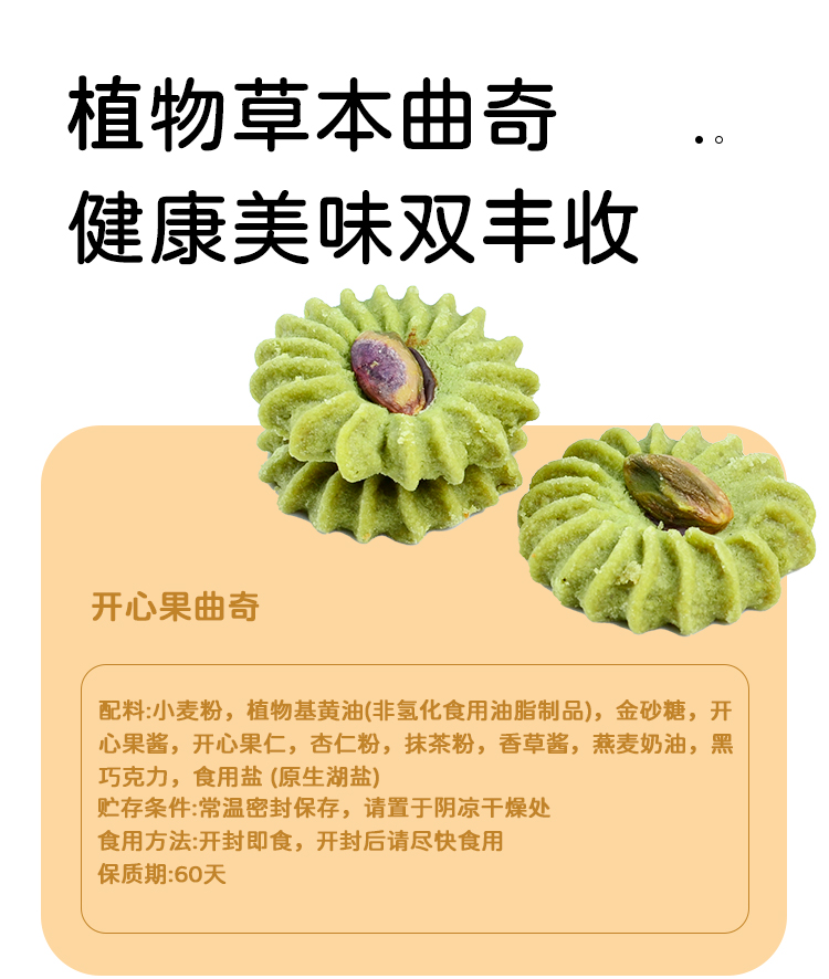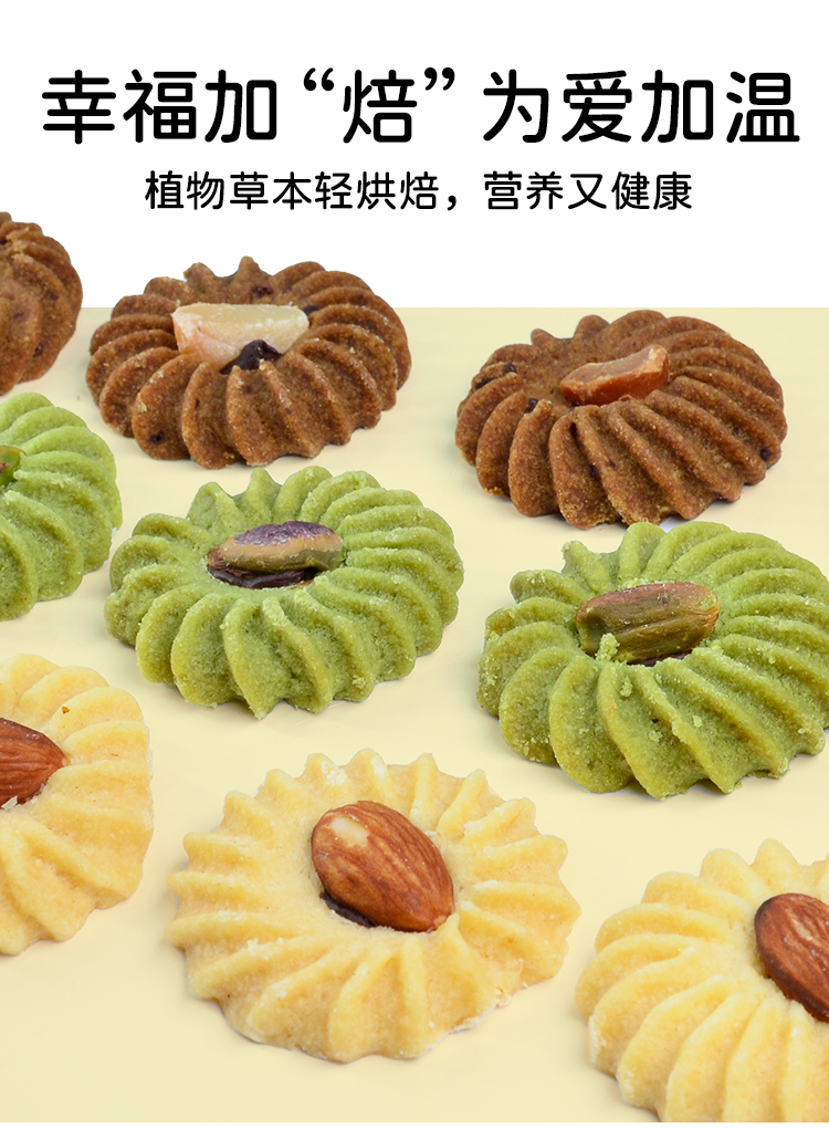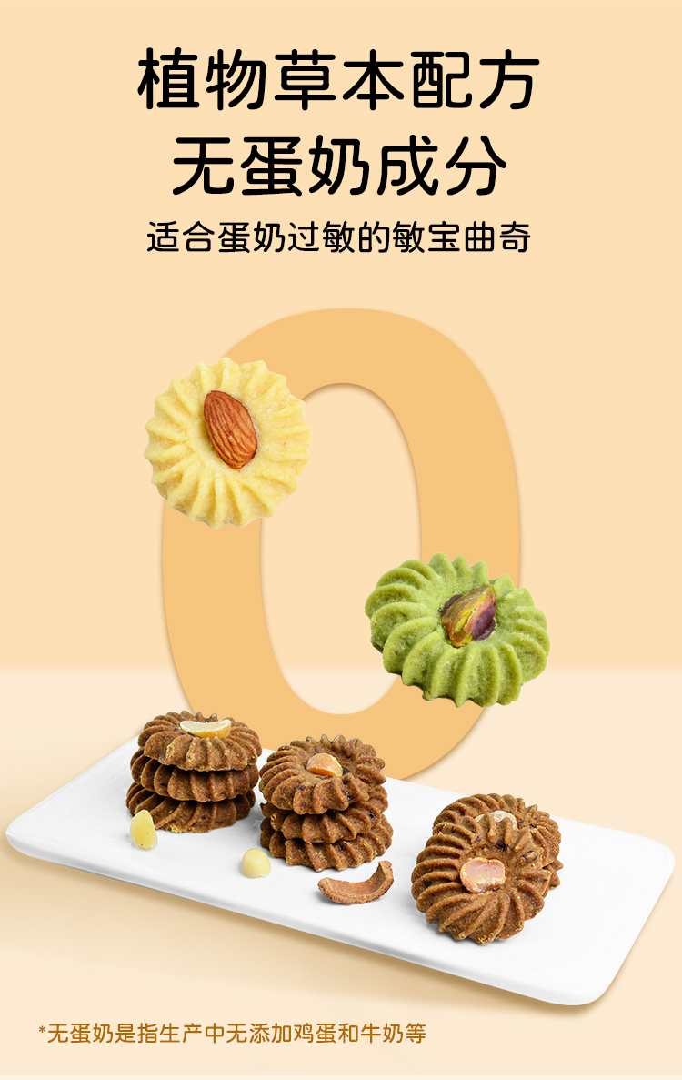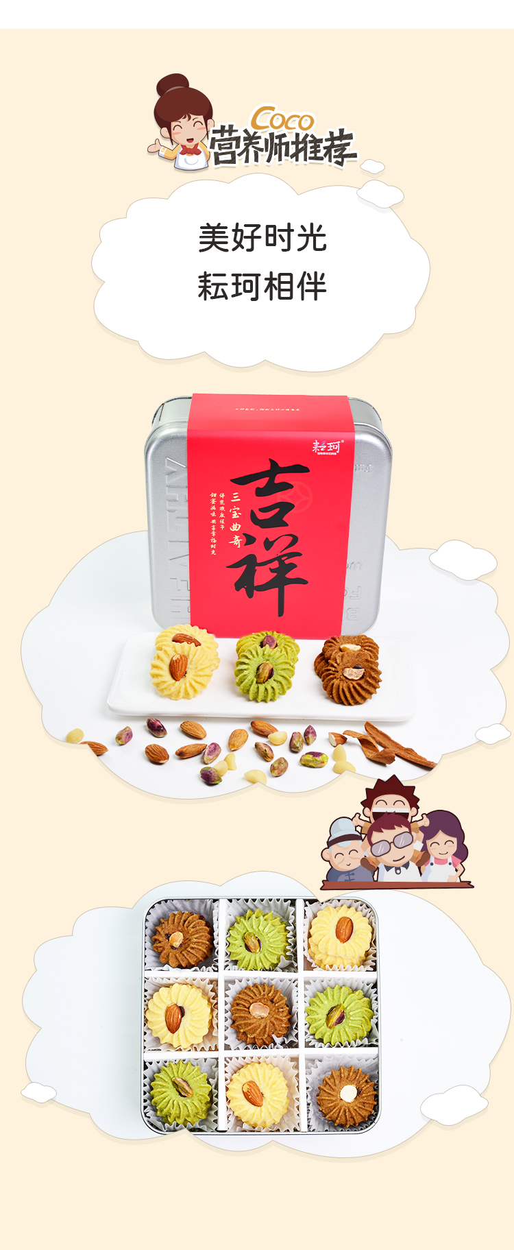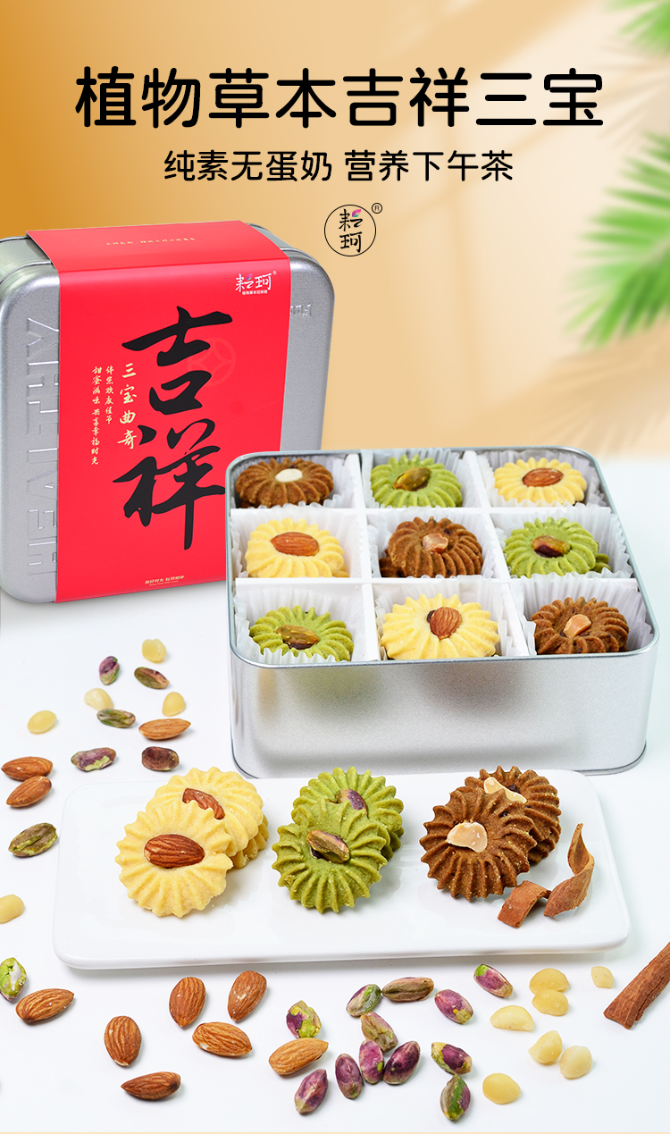 【满118元赠价值38元植物蛋白脆饼干1罐】耘珂吉祥三宝曲奇礼盒|夏威夷果/香草杏仁/开心果 310g/盒