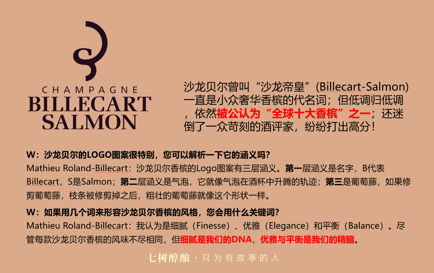 - 七树醇酿,国内茶酒交融体验店模式开创者,特别注重品质和专业的连锁品牌。中国总代和区域代理了众多国际知名酒庄的产品,并和知名茶庄合作。总部设于北京,专业总仓设于上海保税区,下级经销商遍布全国各主要城市。