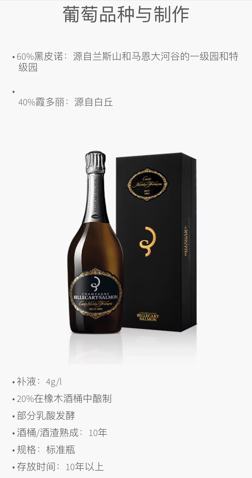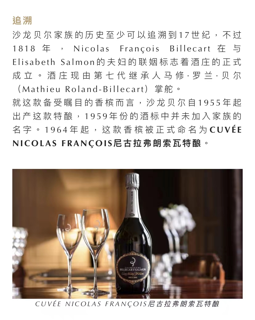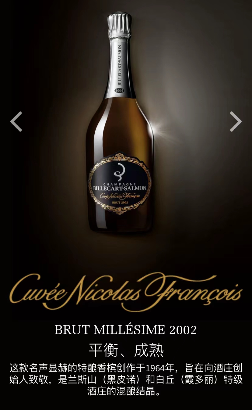 沙龙贝尔·尼古拉弗朗索瓦特酿年份香槟2002Champagne Billecart-Salmon Cuvee Nicolas Francois