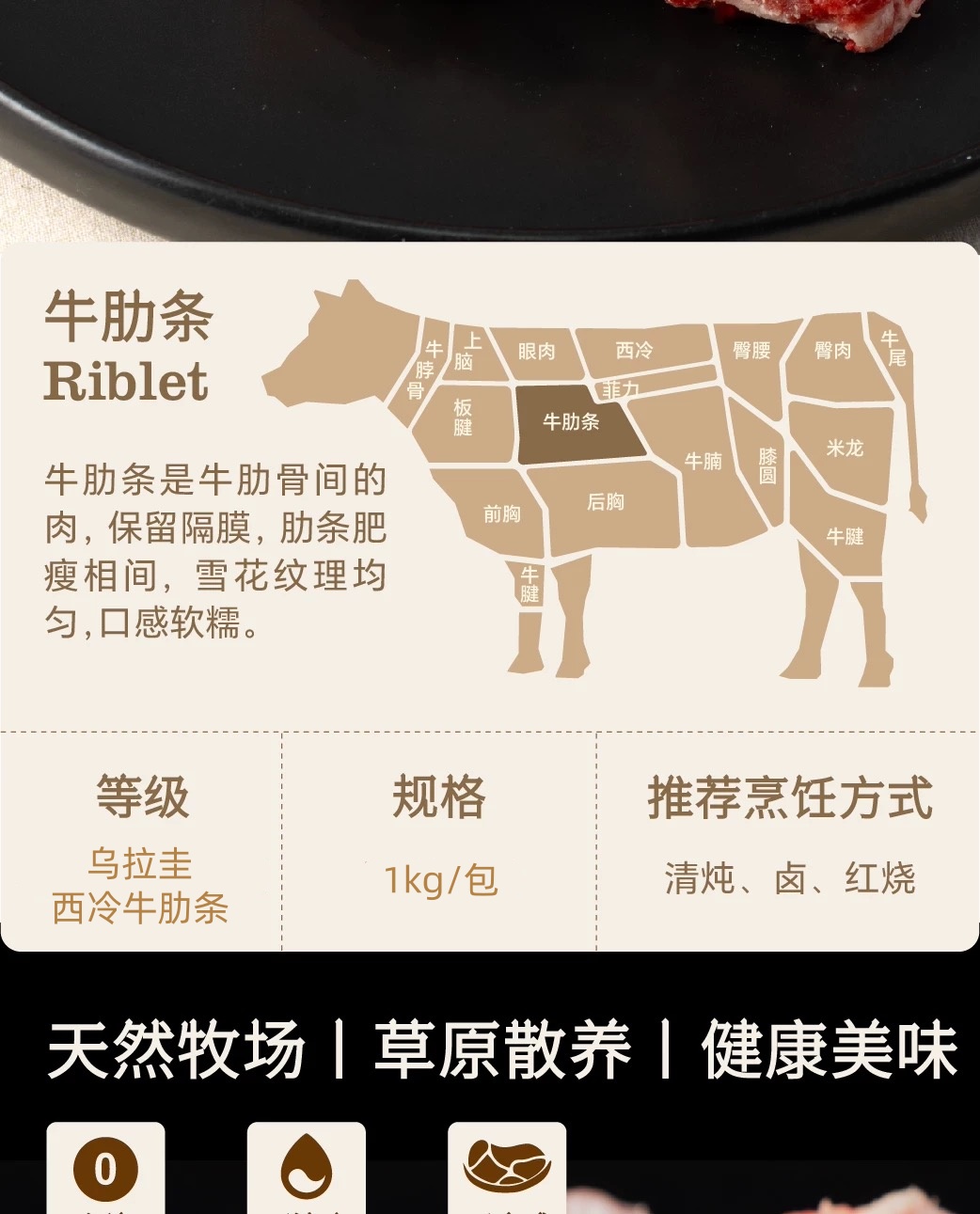【乌拉圭西冷牛肋条】1kg/袋,145元/袋