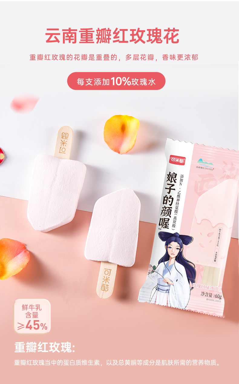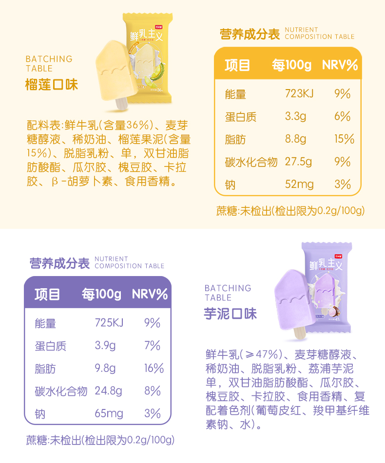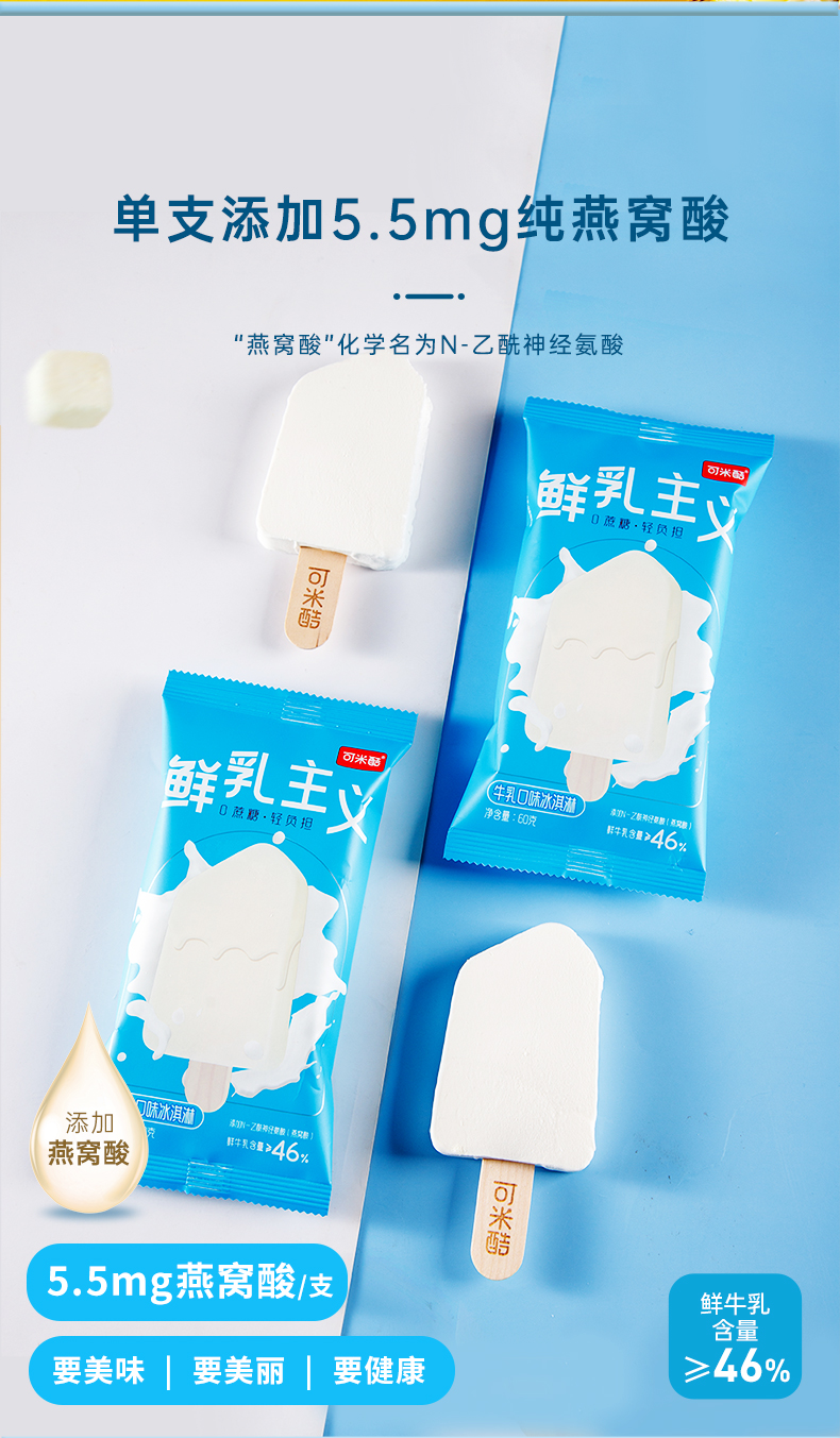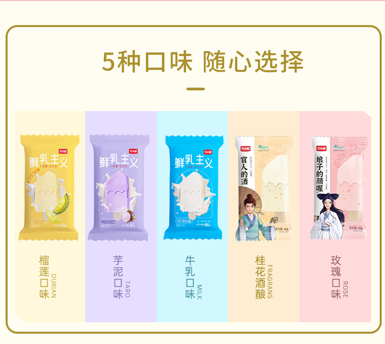 销售【可米酷】鲜乳主义纯享系列无蔗糖香芋玫瑰桂花芋泥榴莲牛乳口味冰淇淋雪糕