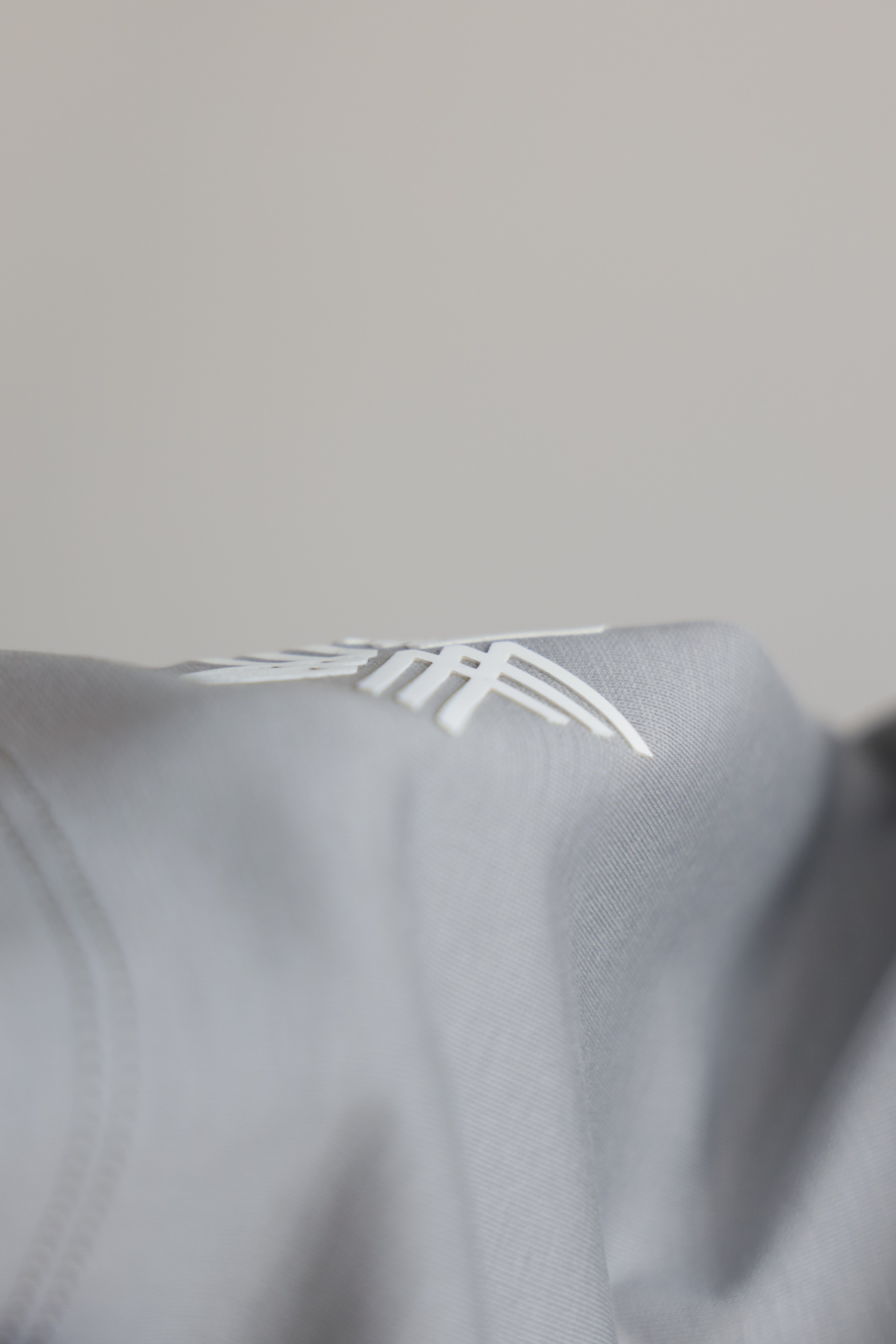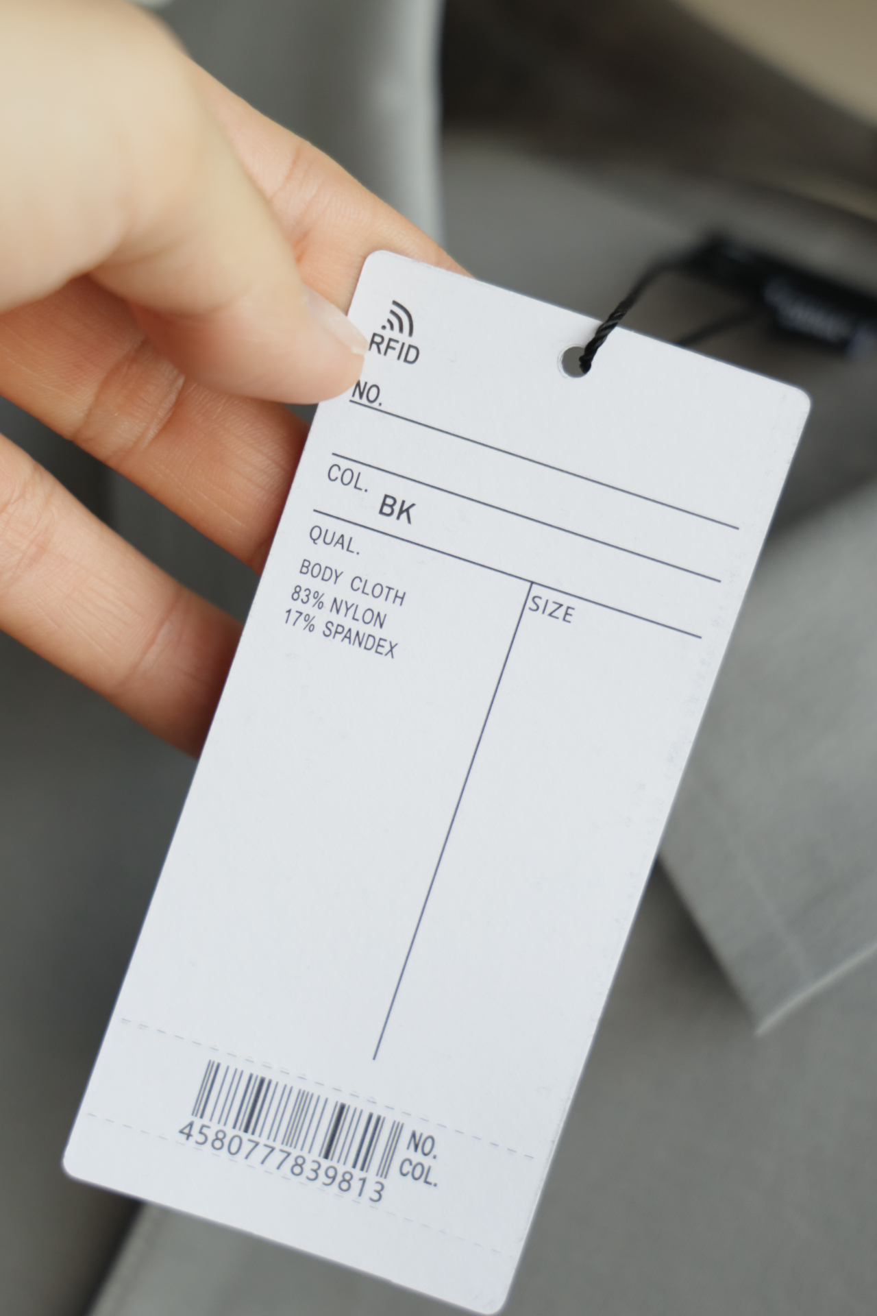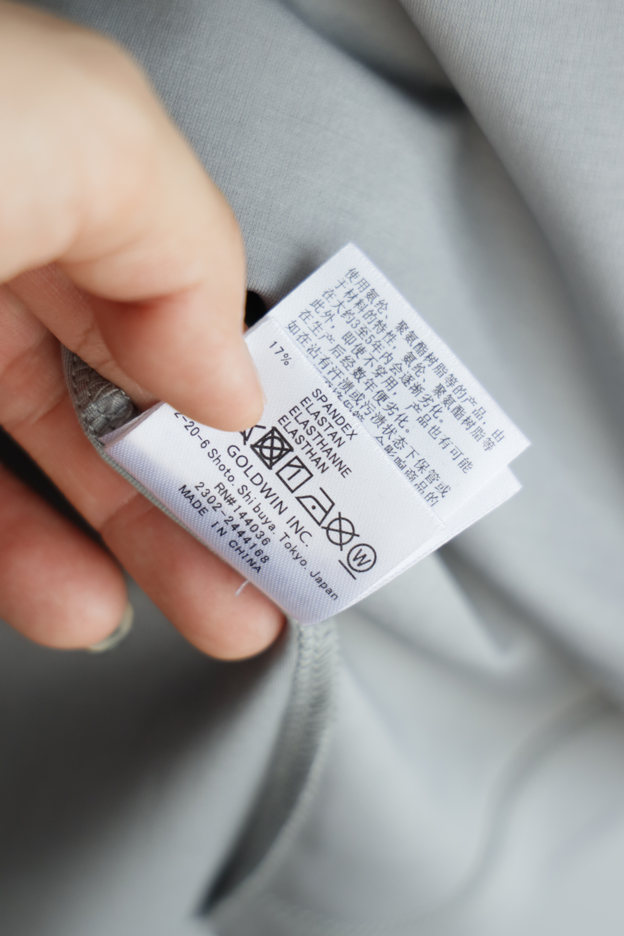 胸口和手臂都有印花标识,纽扣带字母刻印