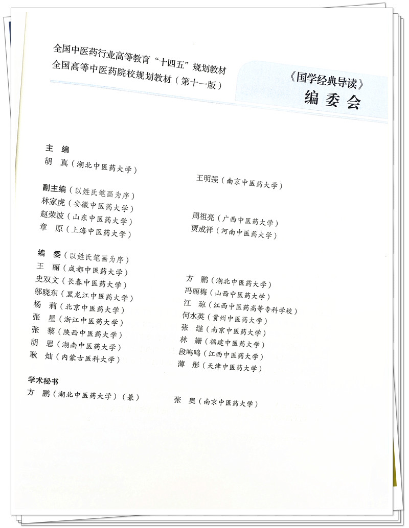 国学经典导读 胡真 王明强 主编 新世纪第二2版 中国中医药出版社 全国中医药行业高等教育第十一版十四五规划教材