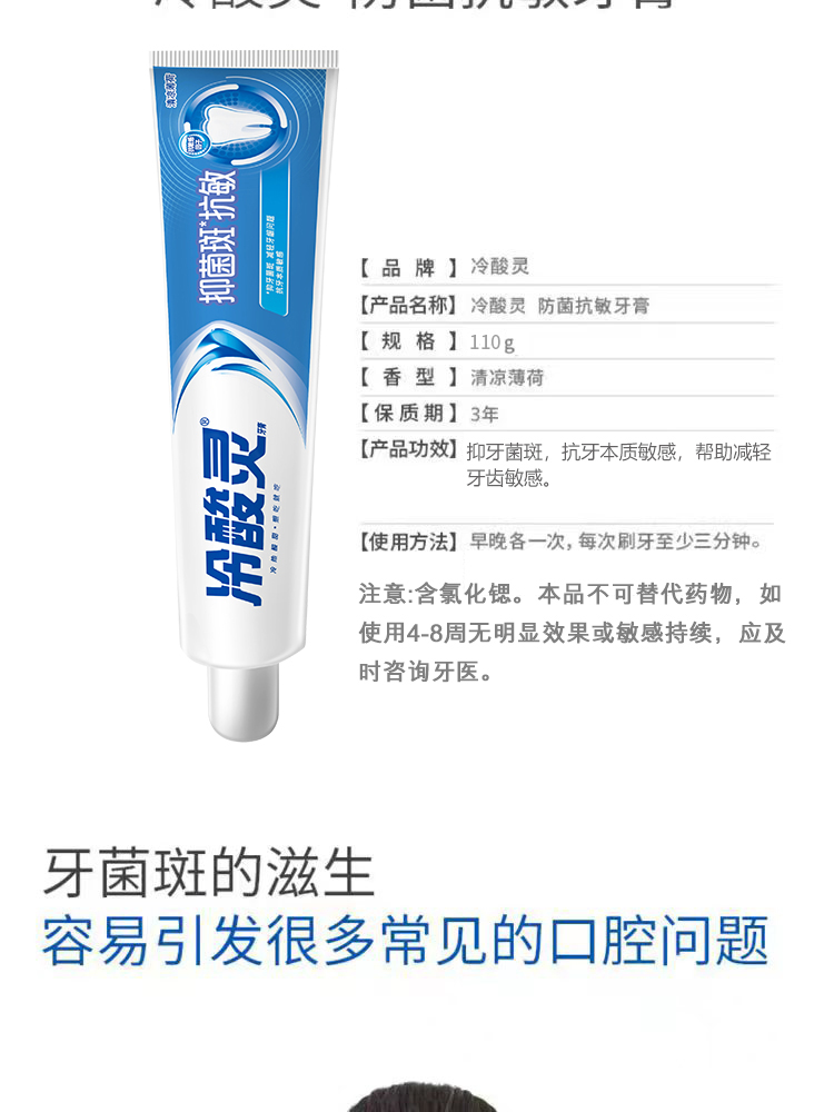 【品牌直发】【4支】冷酸灵牙膏110g清凉薄荷清新口气增白牙齿去减轻口臭-批发