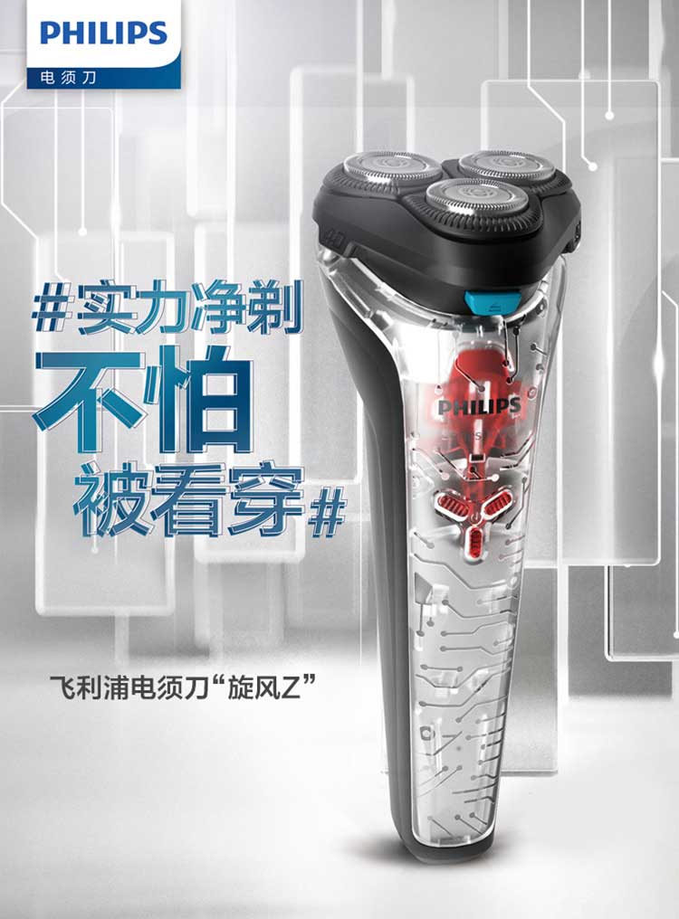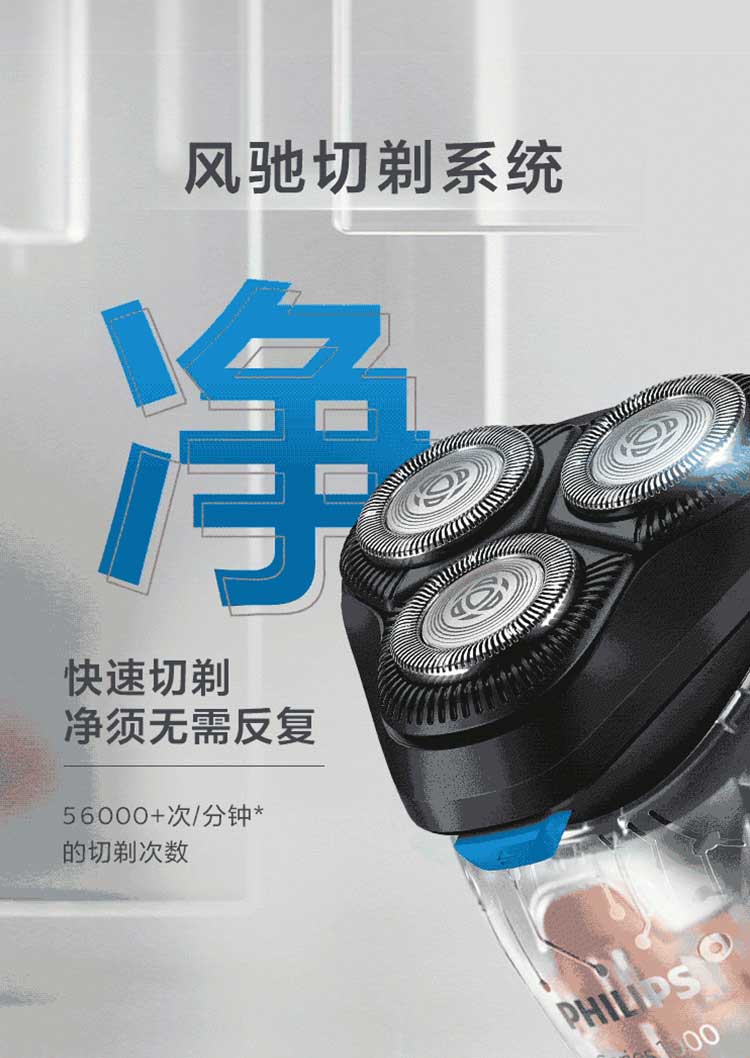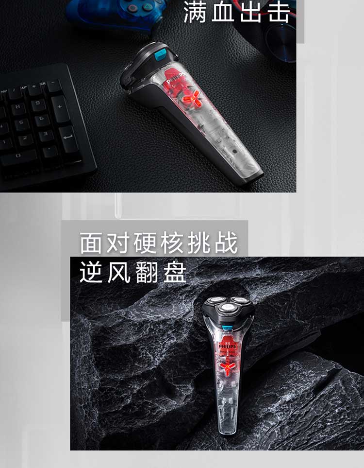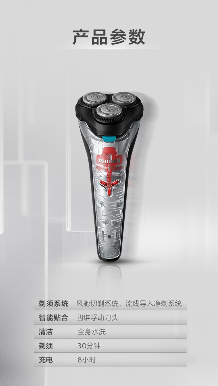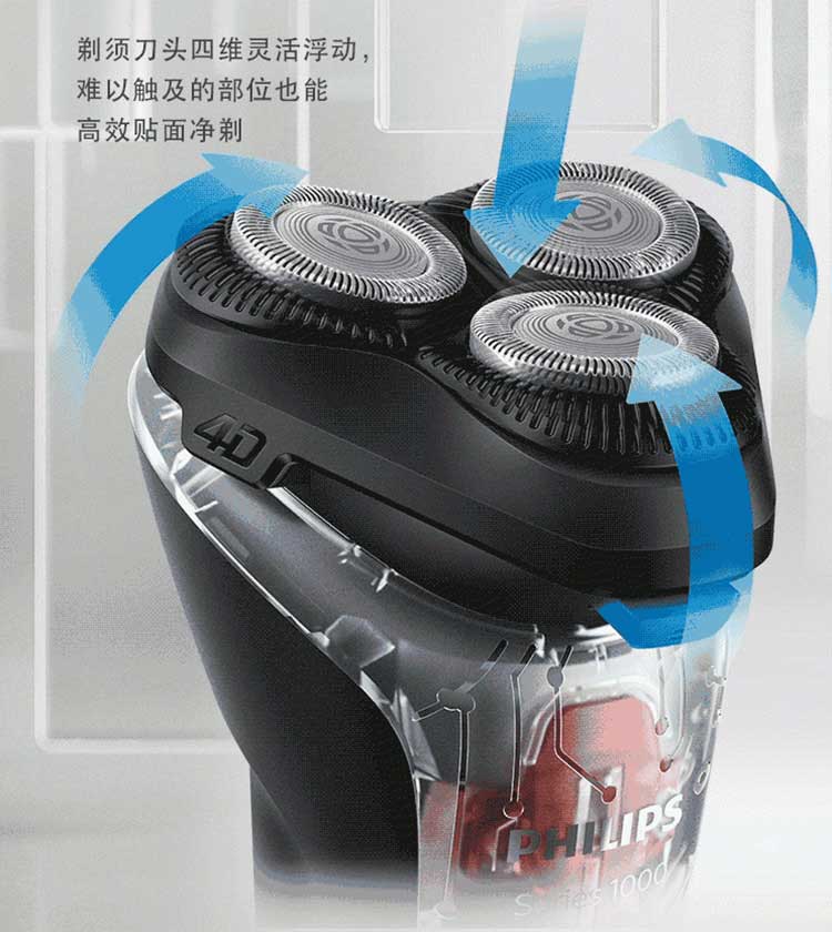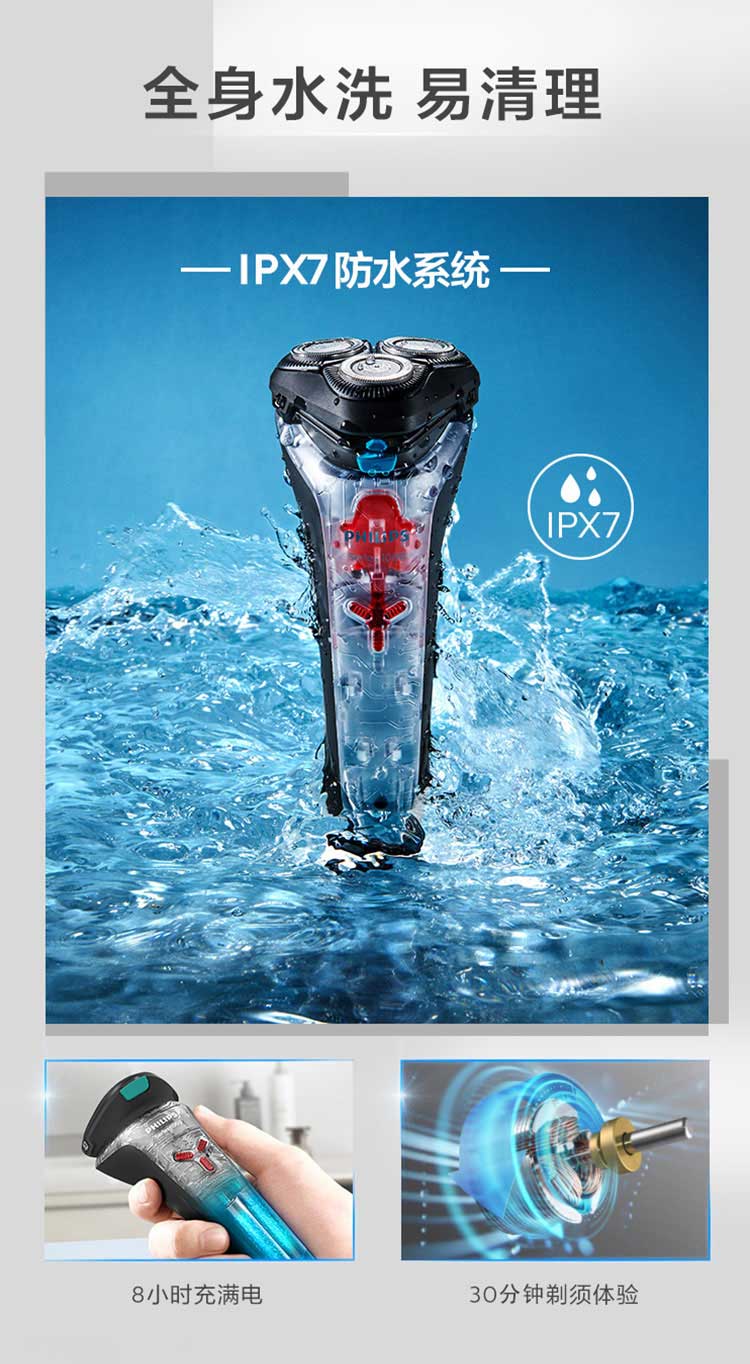 【品牌直发】飞利浦PHILIPS电动剃须刀男士刮胡刀进口三刀头干湿双剃 S1108/02 全身水洗 透明机身