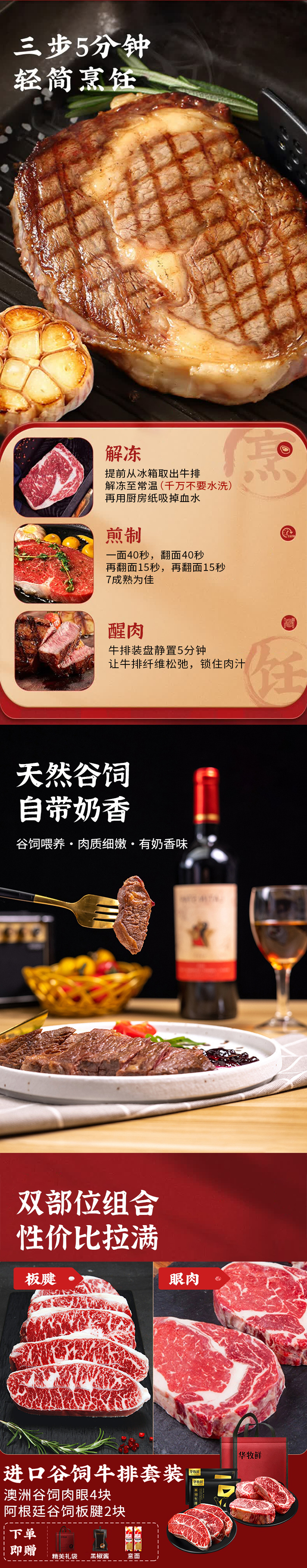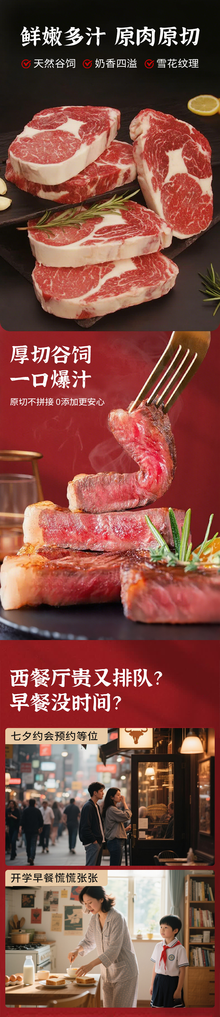 【澳洲谷饲厚切肉眼牛排套餐】原肉原切不拼接,谷饲奶香一口鲜嫩爆汁,在家轻松复刻西餐厅美味!