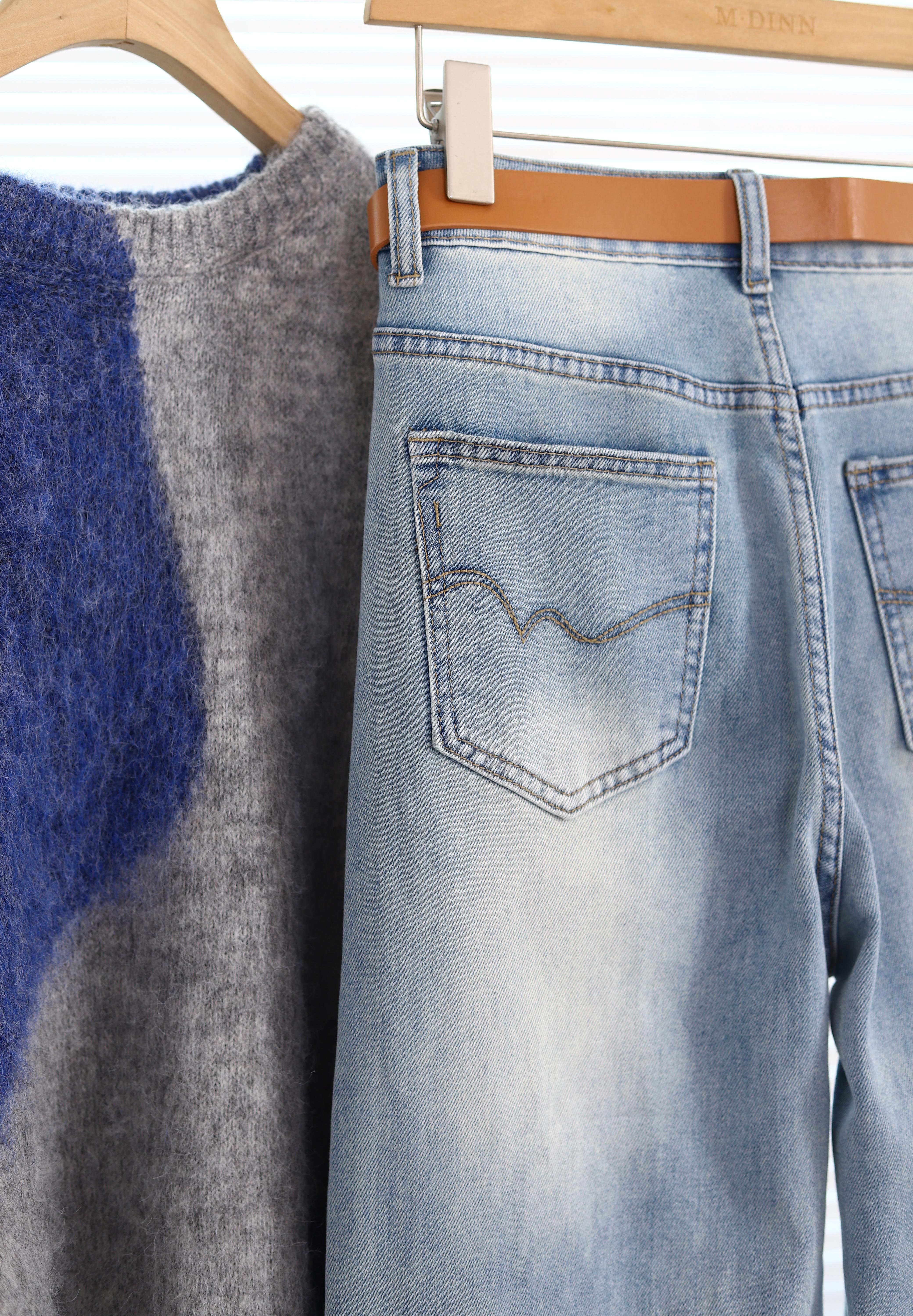复古直筒0602-3 材质成分:73%棉 26%聚酯纤维1%氨纶