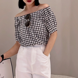L2【格子衬衫】臣禾露肩上衣9212052276