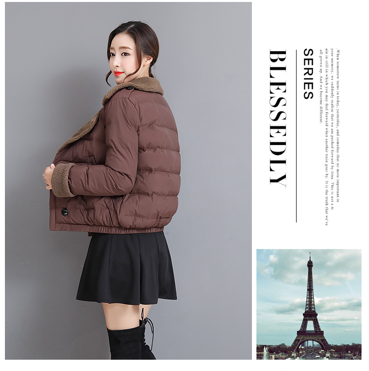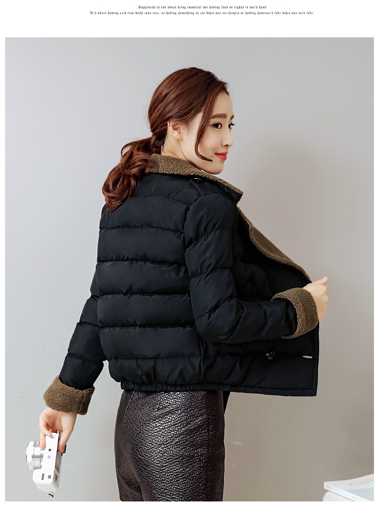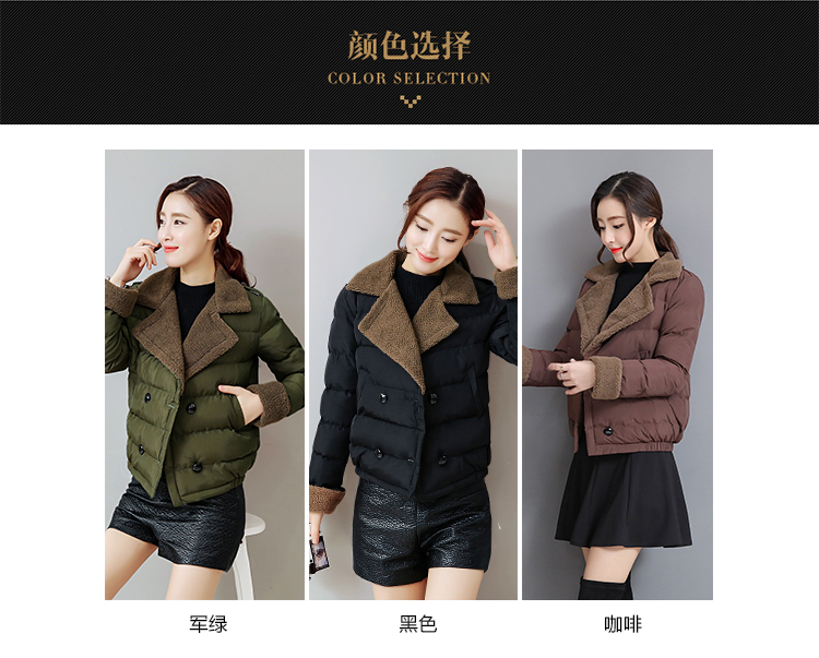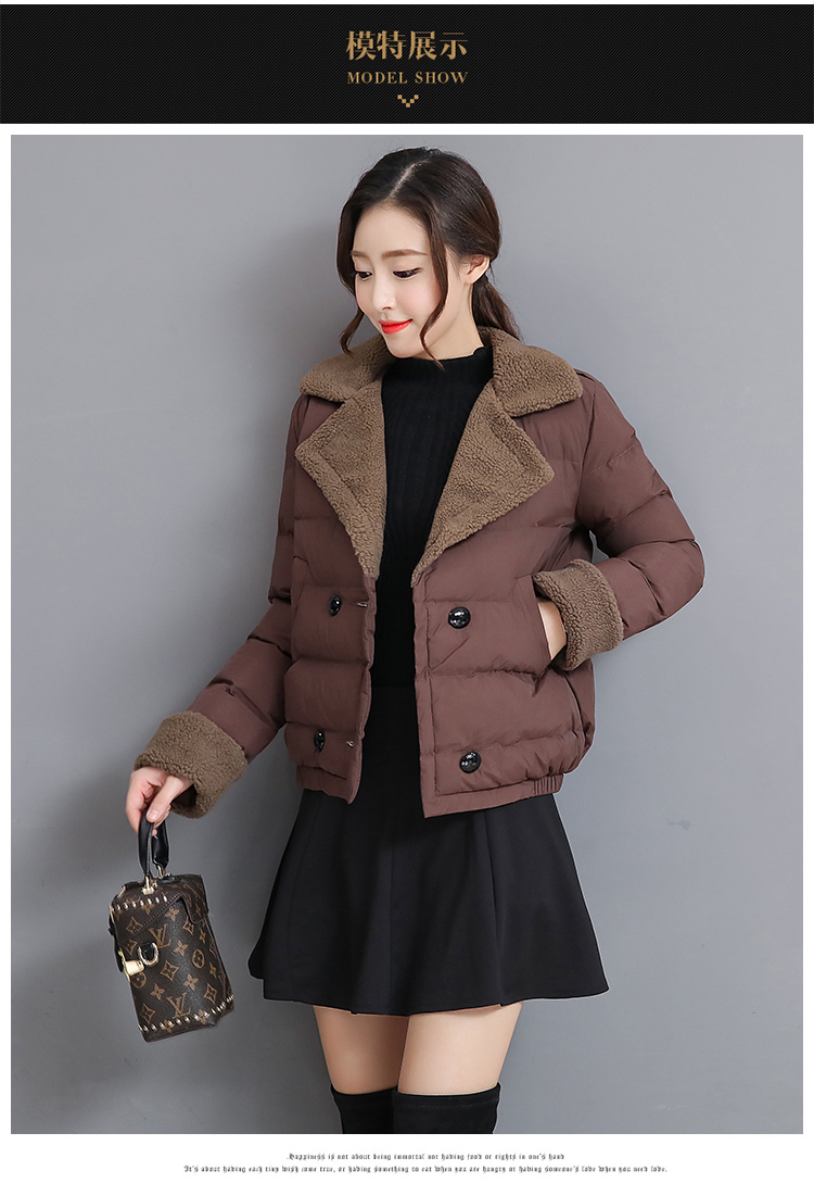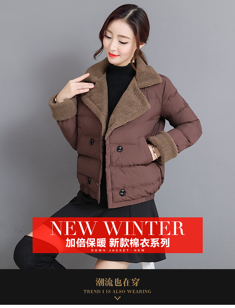 CS- TZL818-1韩版修身显瘦棉服冬季小棉袄羊羔毛领加厚外套