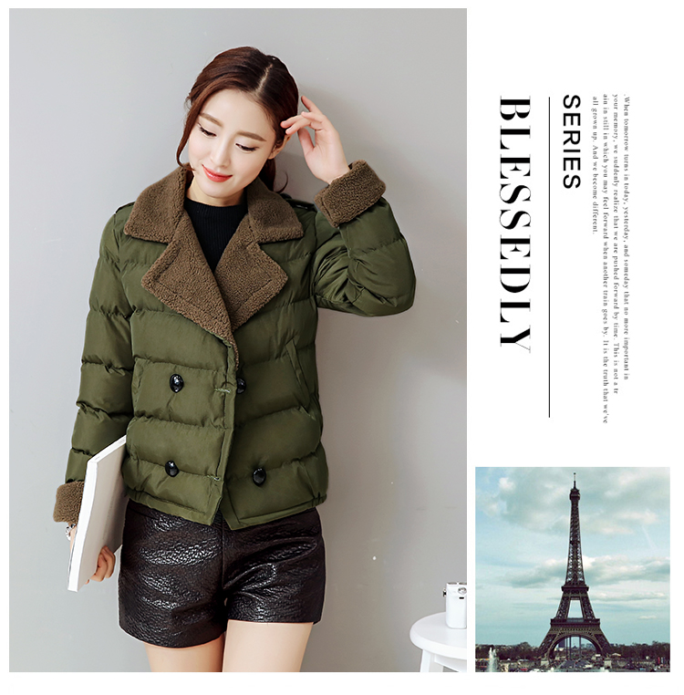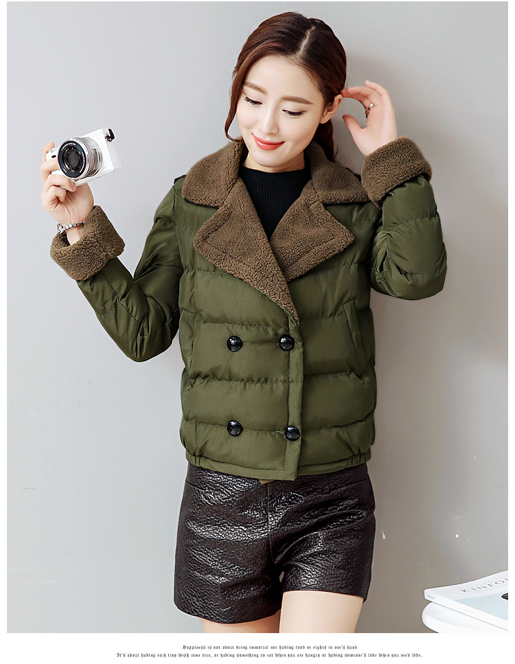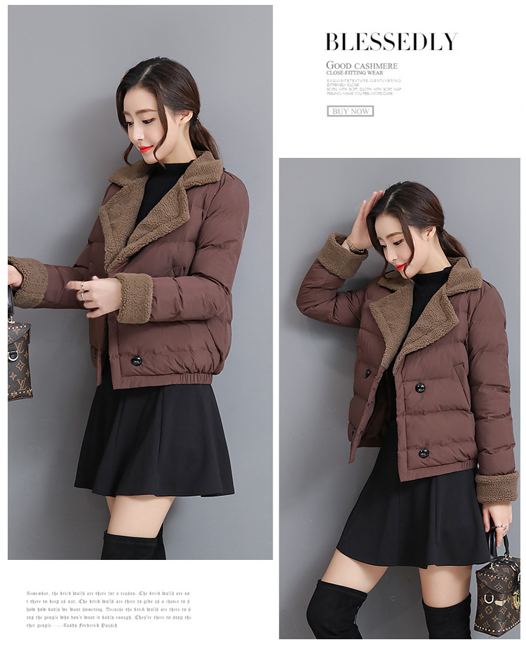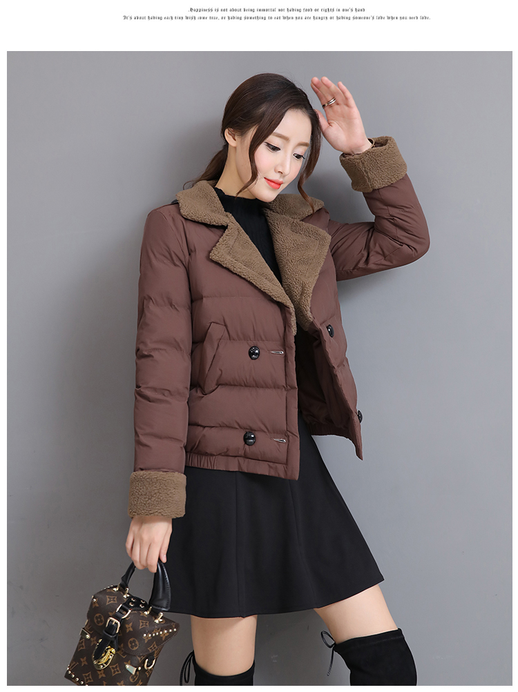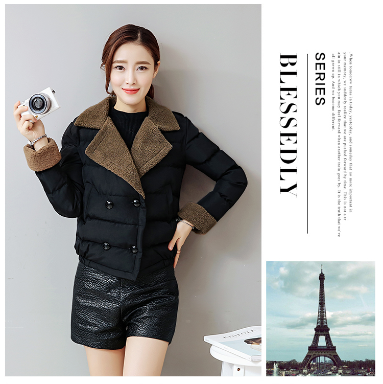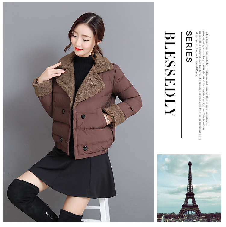CS- TZL818-1韩版修身显瘦棉服冬季小棉袄羊羔毛领加厚外套