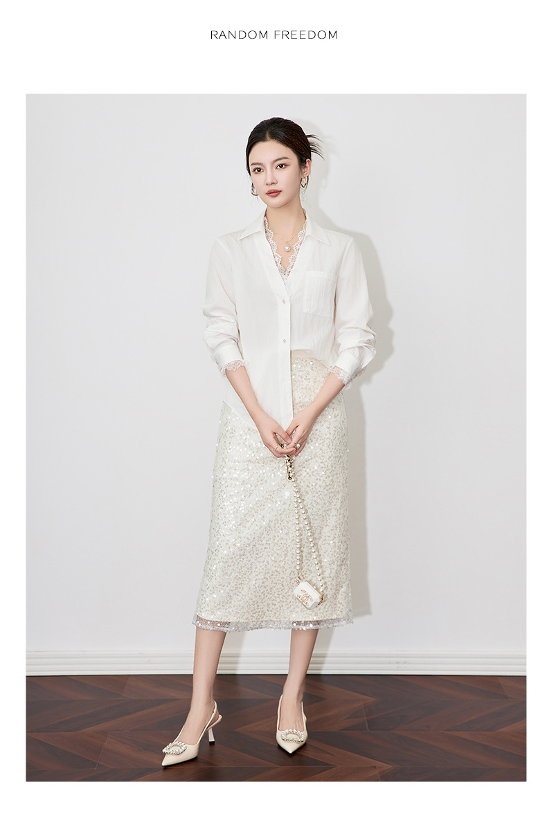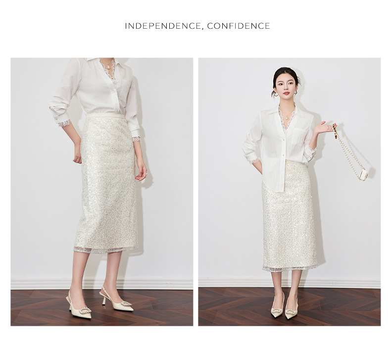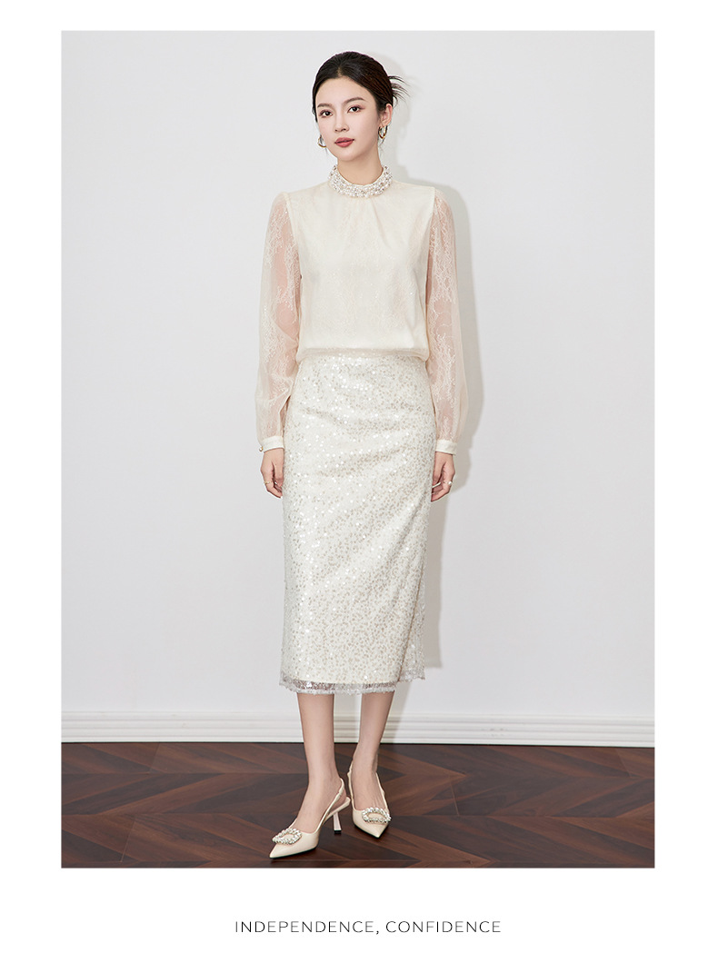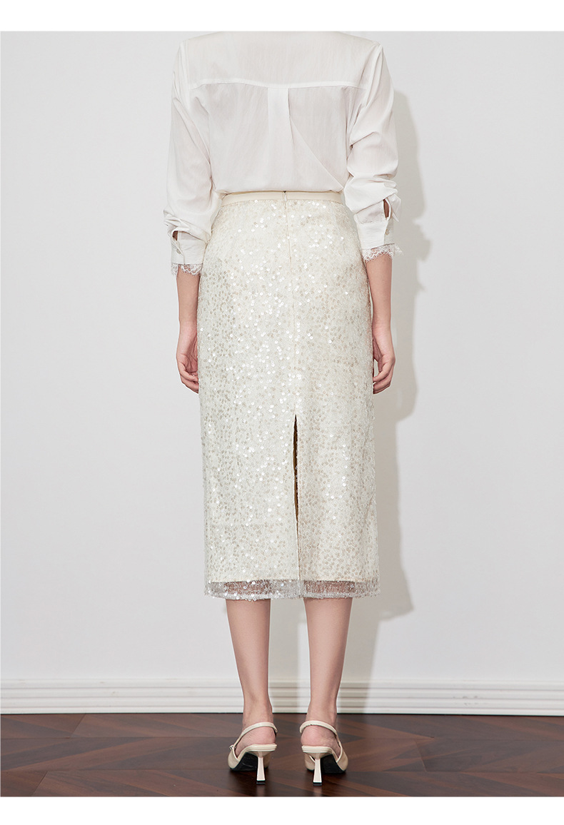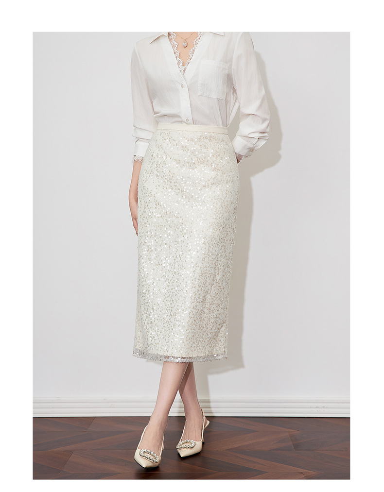 【高货wl】全新升级【铂金会员220/天猫299/差价79】(11006) 洛诗琳春季重工亮片时尚高腰设计感气质名媛直筒半身裙