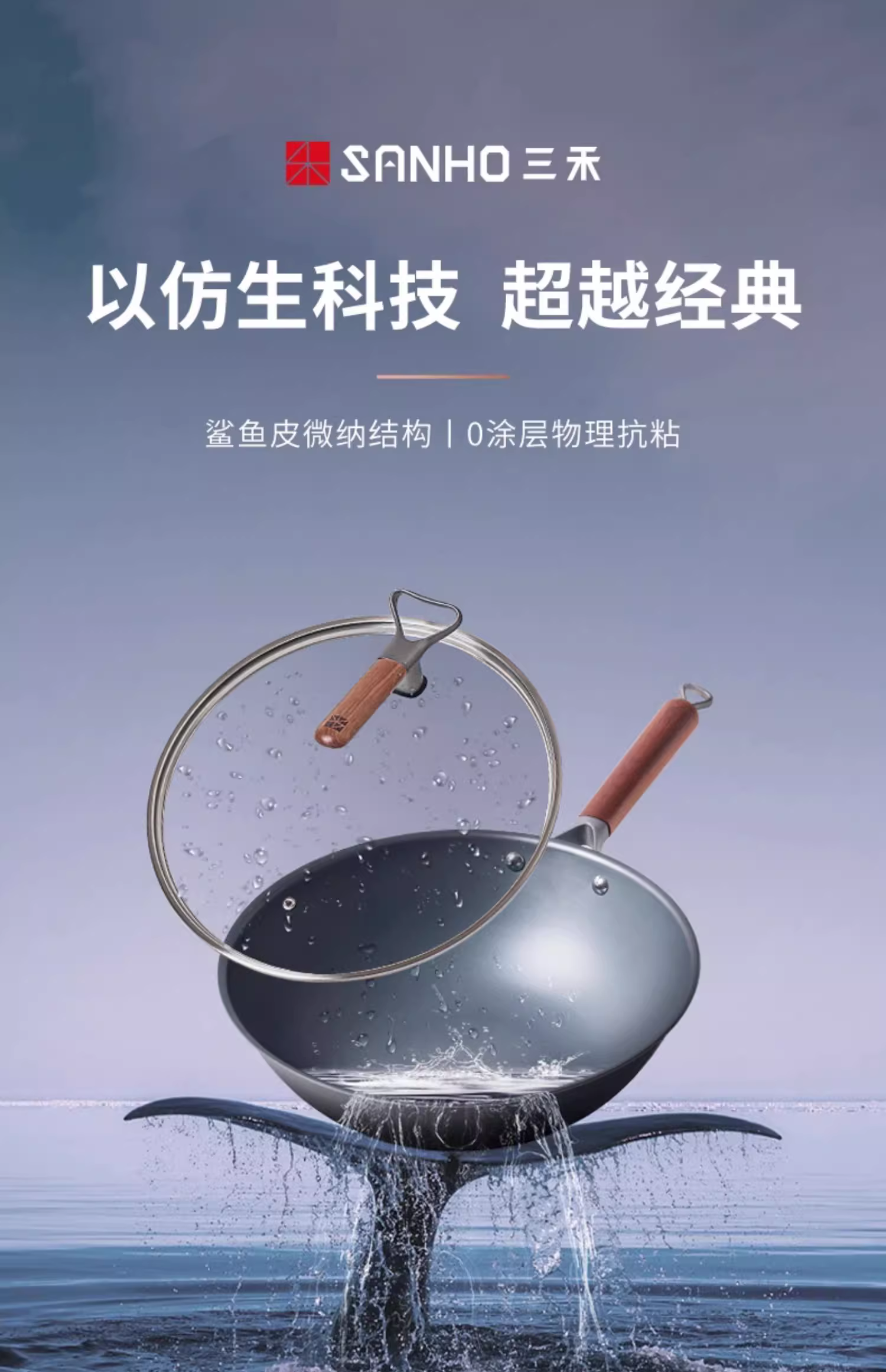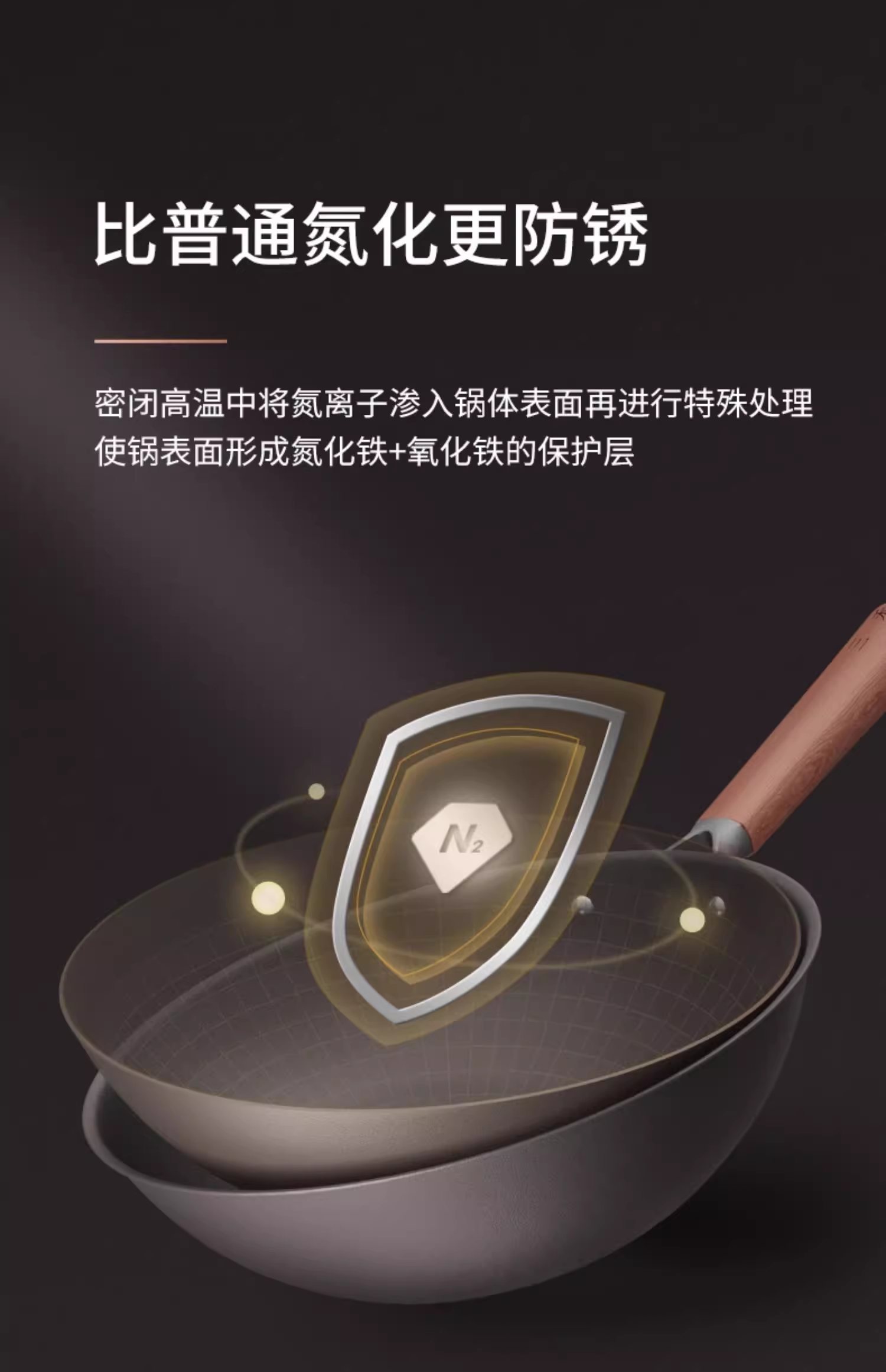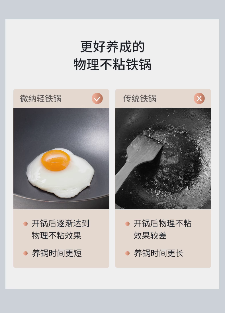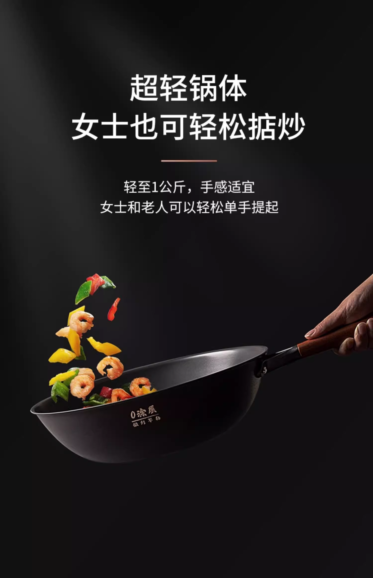 三禾-0涂层防锈炒菜铁锅燃气灶专用无涂层微纳精铁不粘铁锅TC30T4/TC32T4【CW】