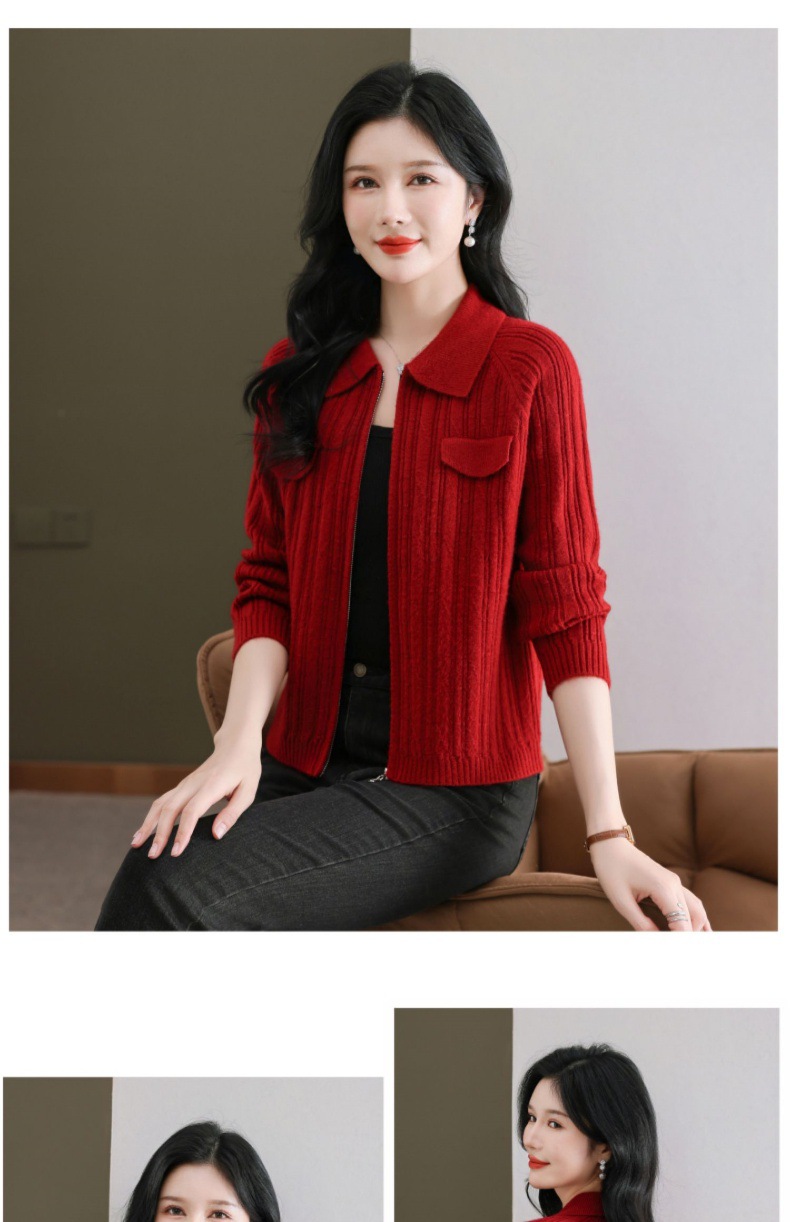 CC101-86162-2024春秋穿搭针织开衫女士减龄宽松拉链毛衣外套小个子新款短上衣