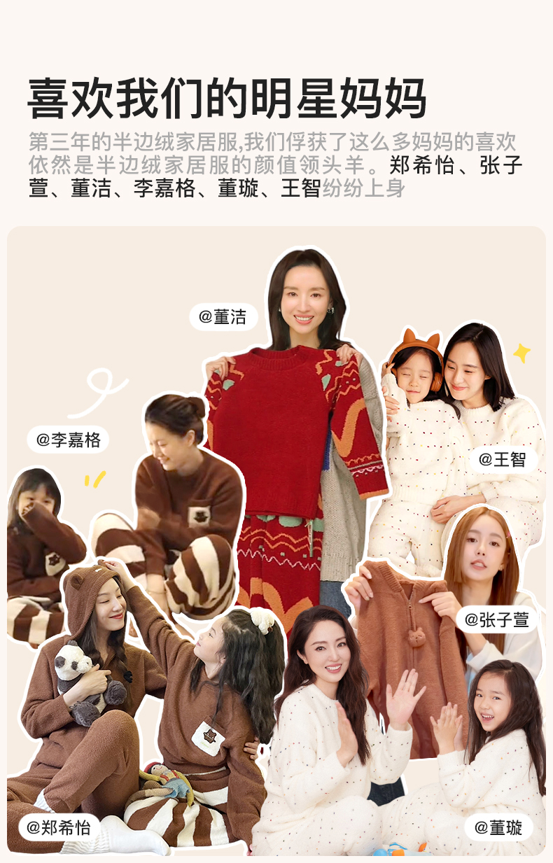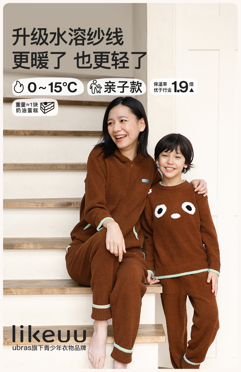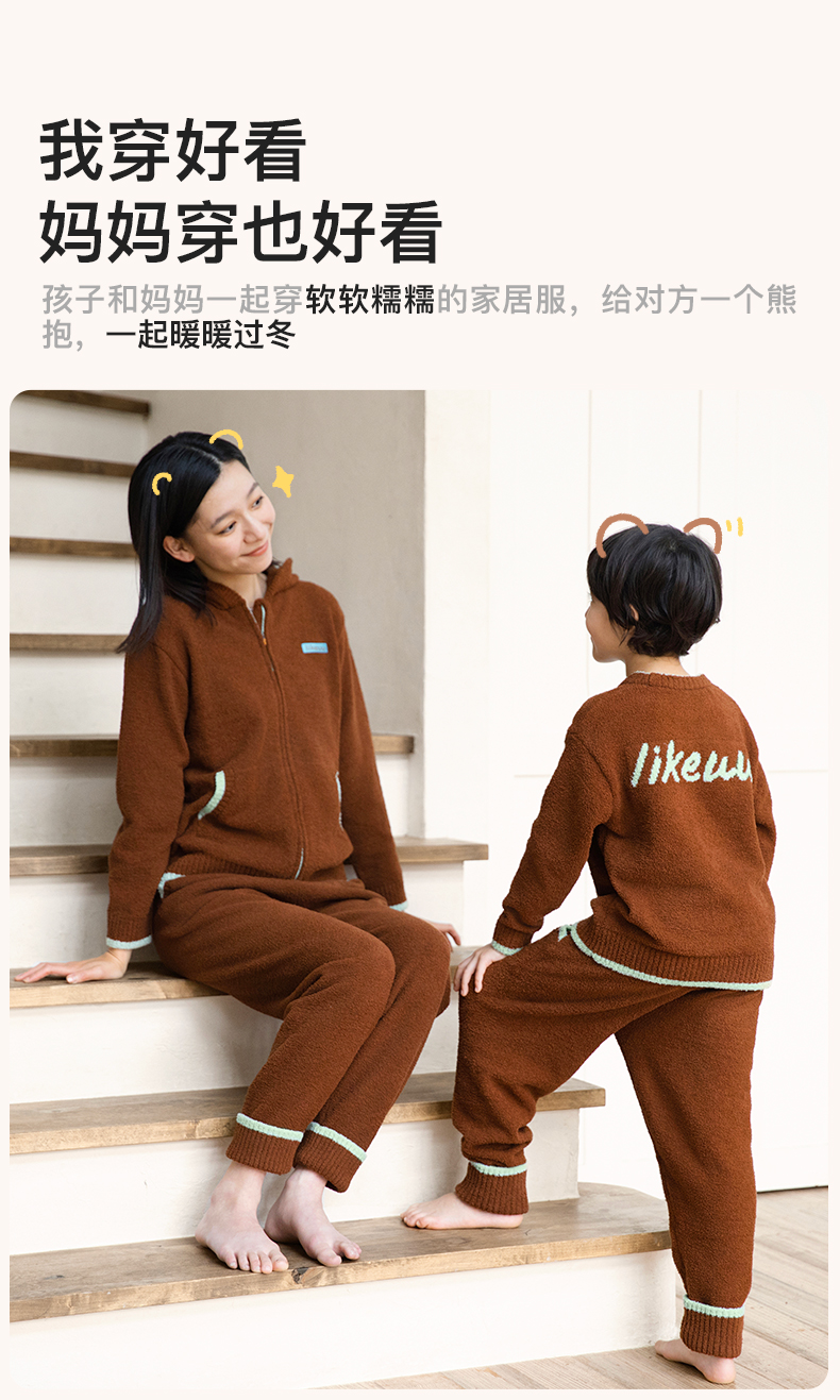 likeuu小熊半边绒家居服套装圆领亲子家居服ZY