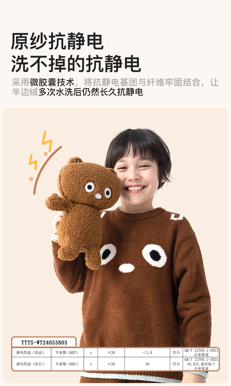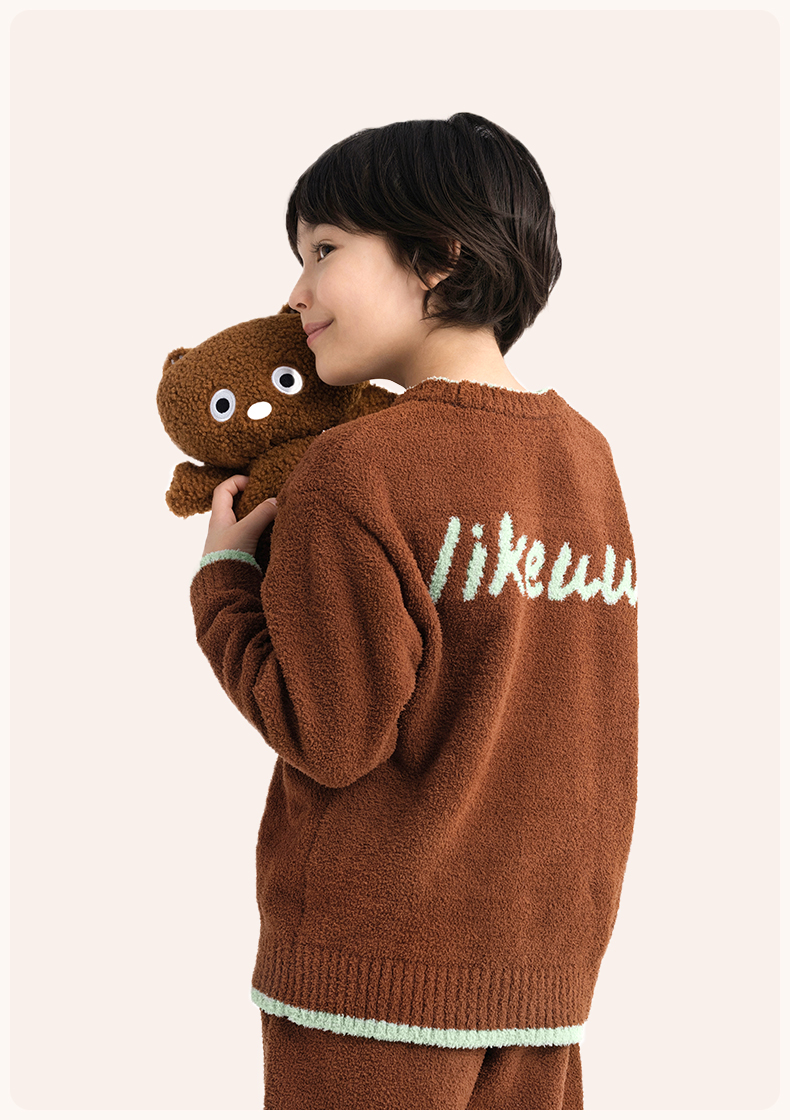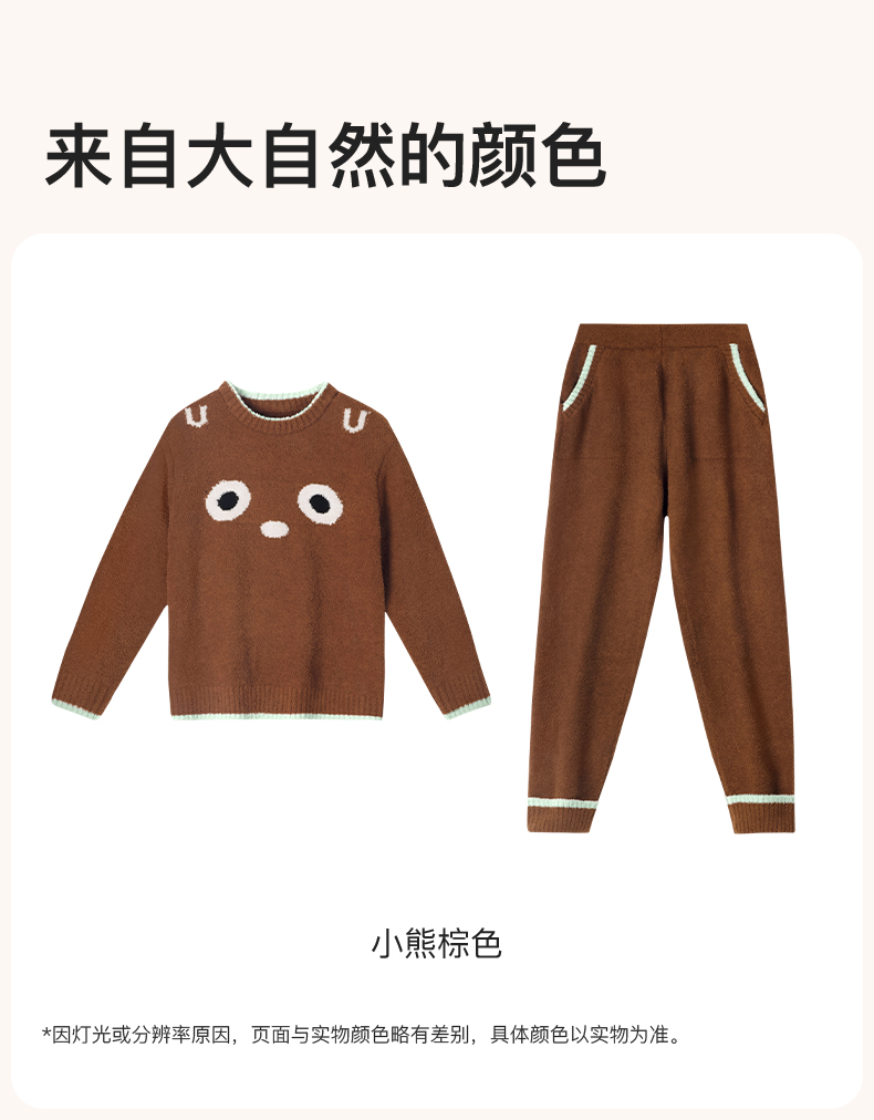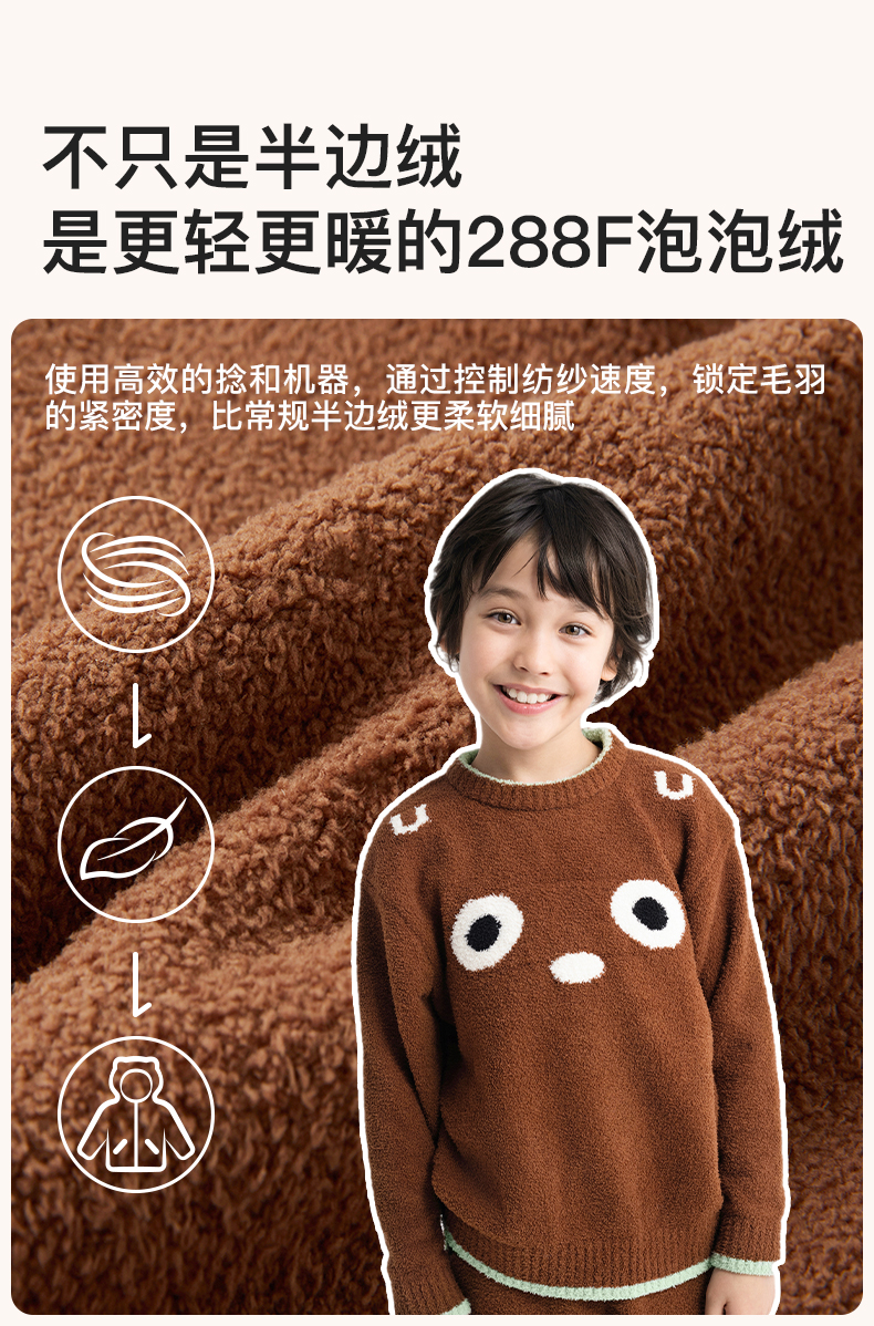 likeuu小熊半边绒家居服套装圆领亲子家居服ZY