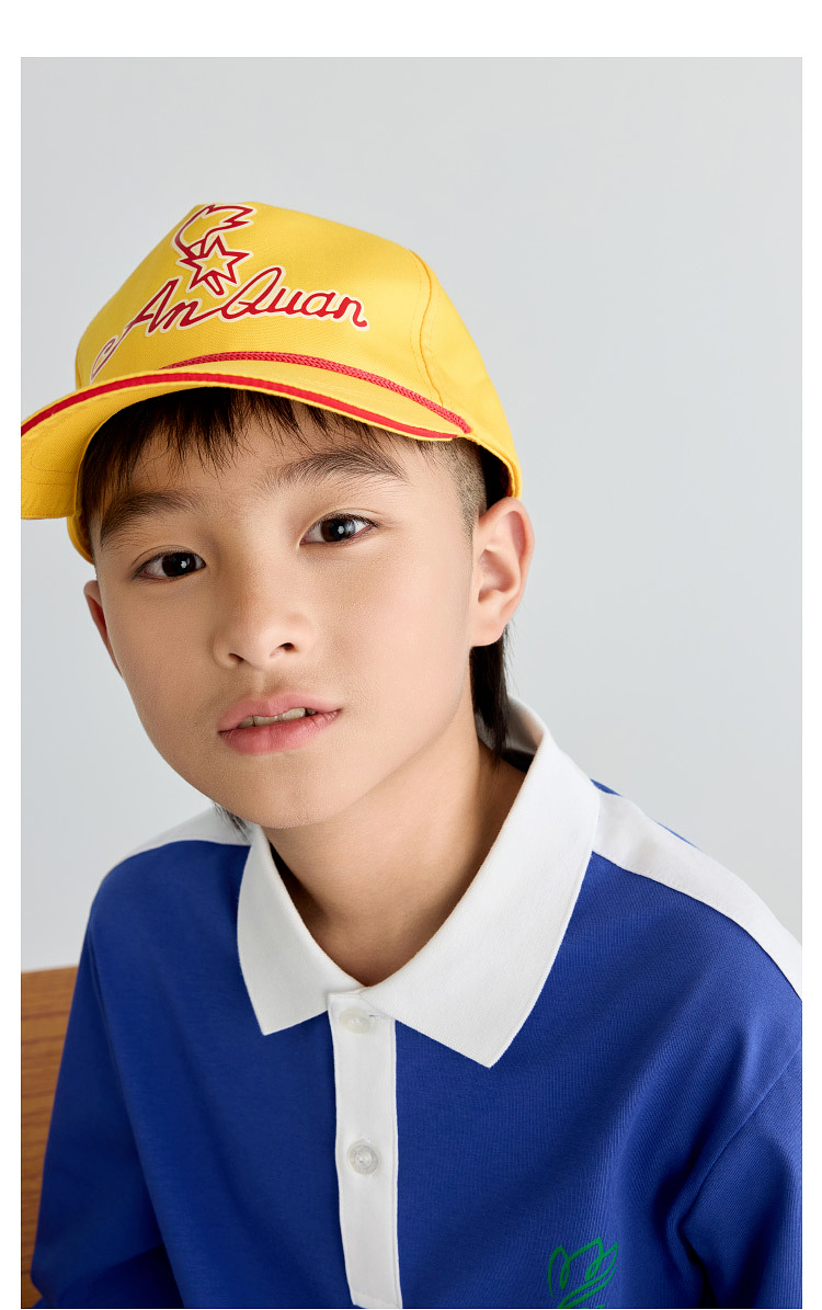 【秒3】【MQD】童装男大童华夫格肌理感翻领卫衣春新款学院风绣花撞色上衣