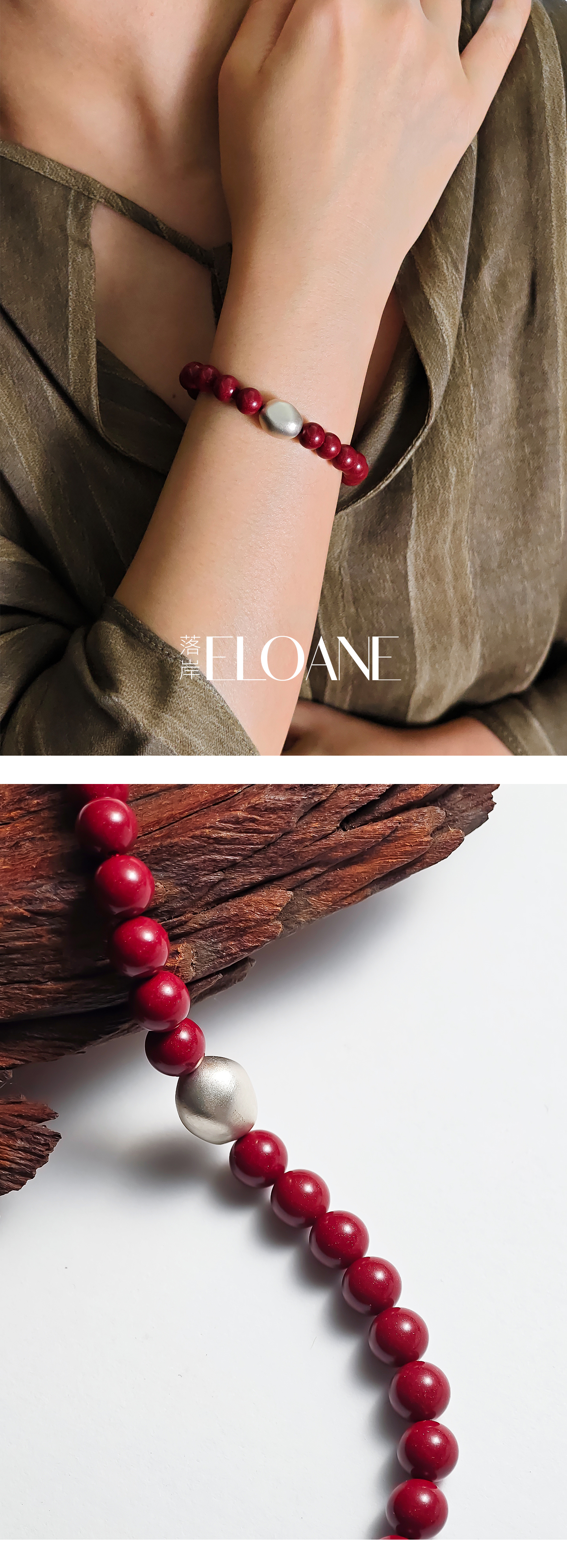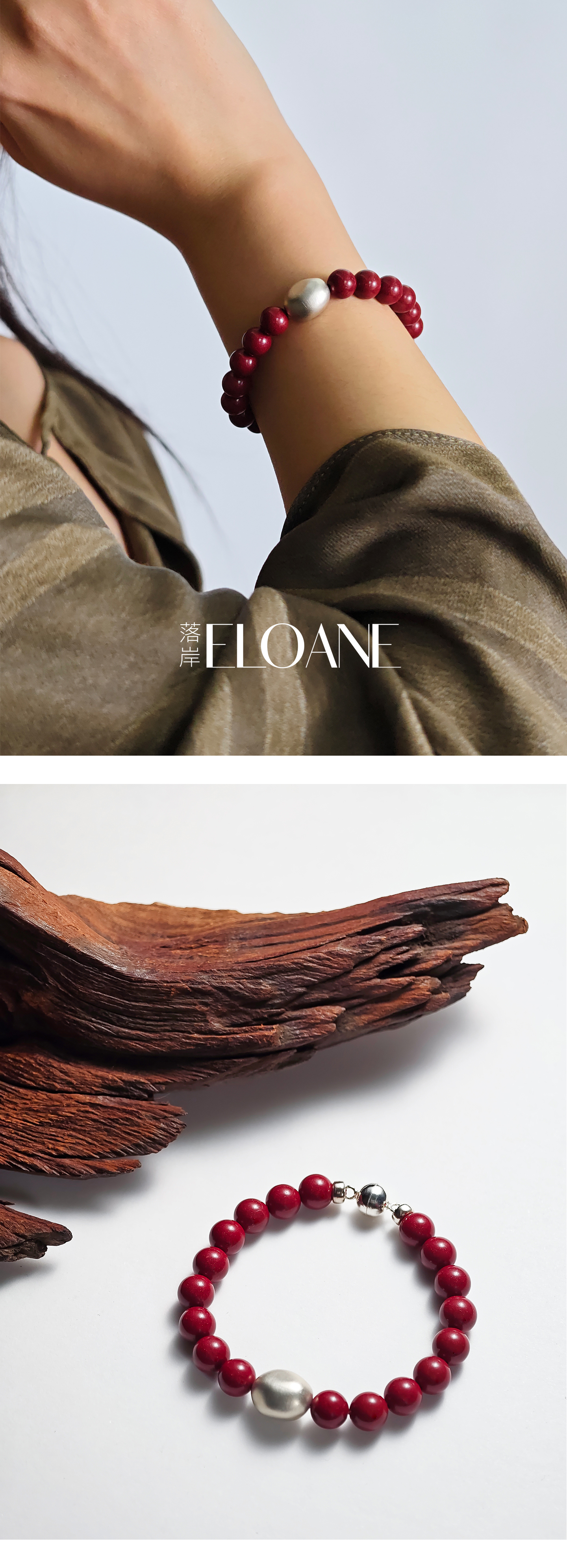 ELOANE GALLERY落岸 天然紫金朱砂足银珠磁吸扣手链ORIENT红韵系列