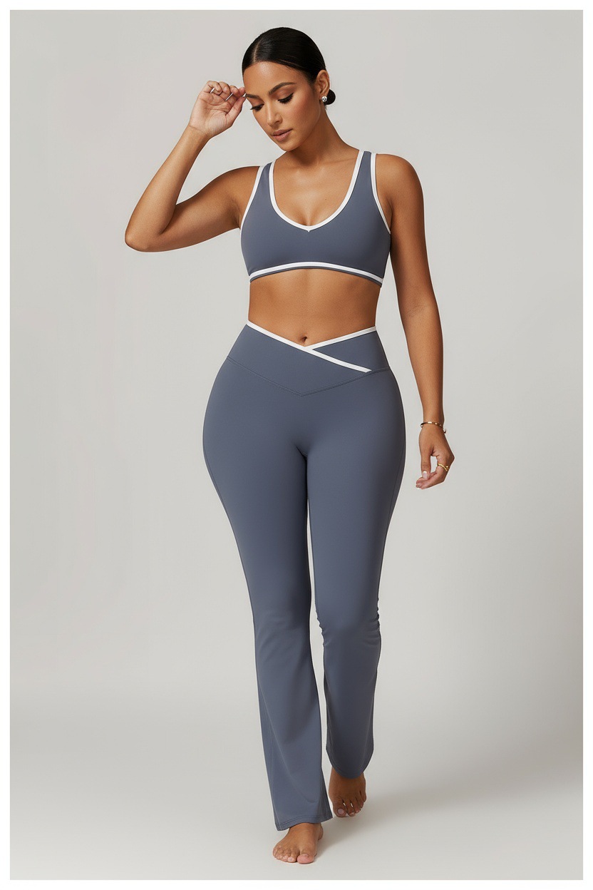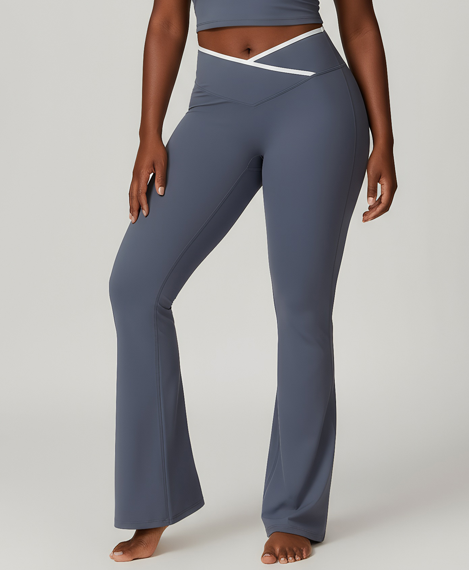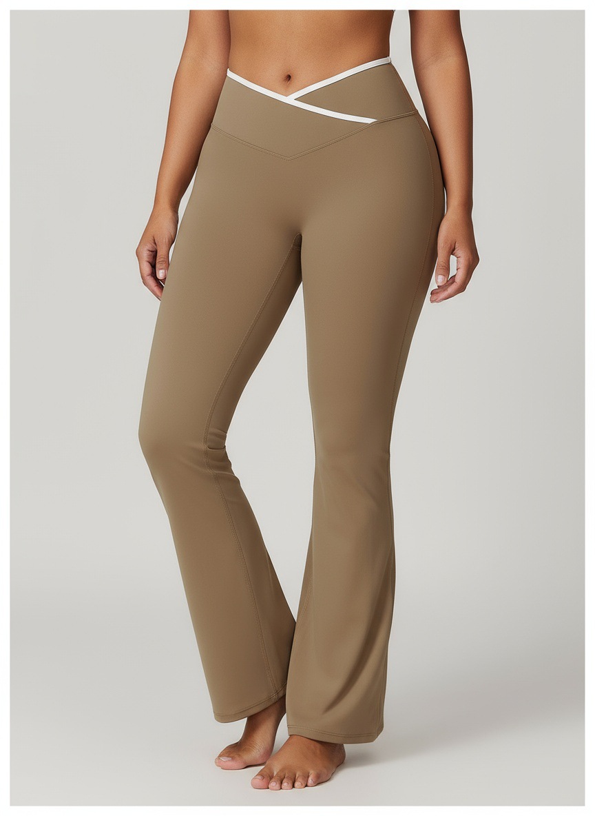 跃牌【安琪拉系列】裸感微喇运动紧身提臀瑜伽健身速干长裤交叉高腰阔腿喇叭裤女CK5502