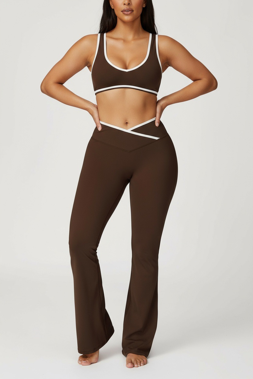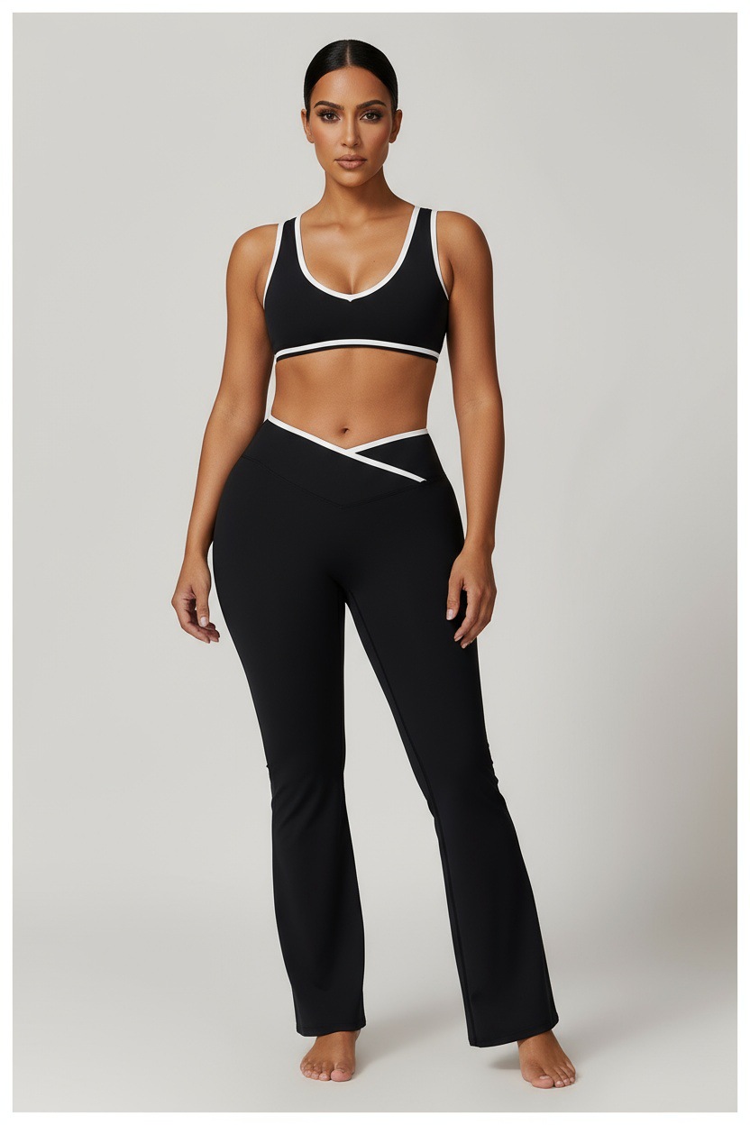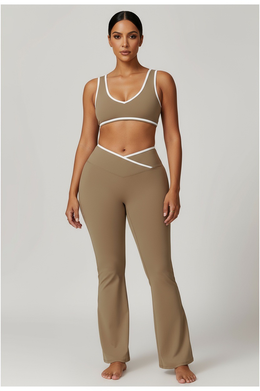 跃牌【安琪拉系列】裸感微喇运动紧身提臀瑜伽健身速干长裤交叉高腰阔腿喇叭裤女CK5502