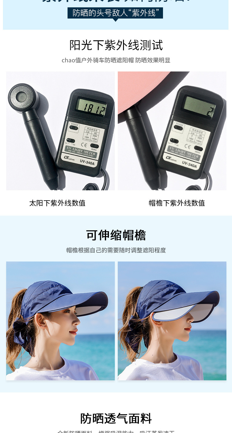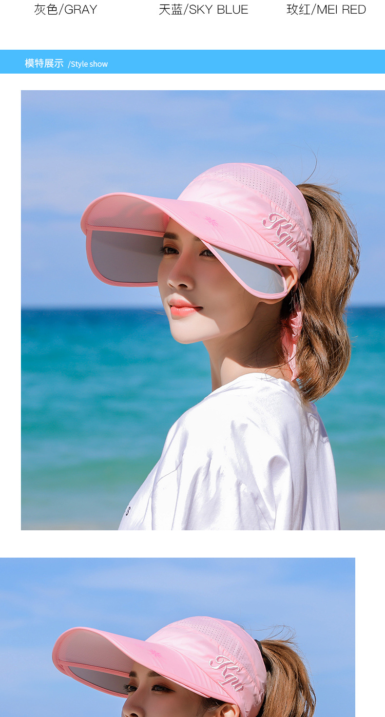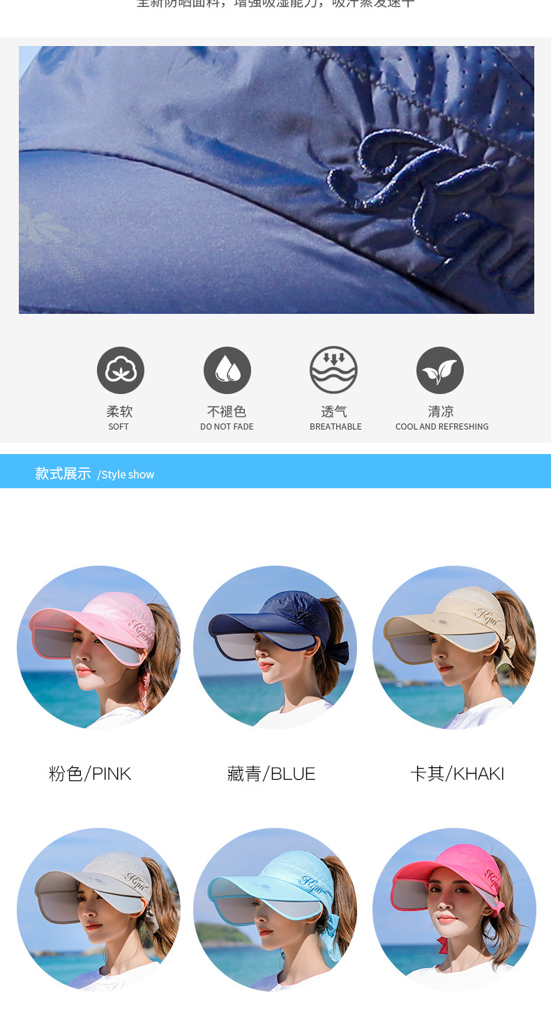 福利款~雀说太阳帽女韩版潮夏季骑车遮脸百搭遮阳帽子防紫外线大沿空顶防晒帽AL MZ-492
